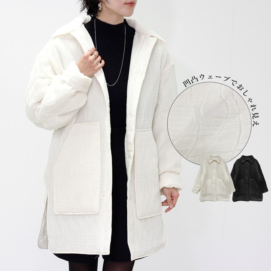 ※ご覧になっているモニターや環境などにより実際の商品と多少色味が異なって見える場合がございます。予めご了承をお願いいたします。 【コート レディース 秋 冬 ウェーブ ジャガード 襟付き 中綿 ミディ丈 アウター 大人 体型カバー ゆったり 20代 30代 40代 50代】 メーカー希望小売価格はメーカーサイトに基づいて掲載しています