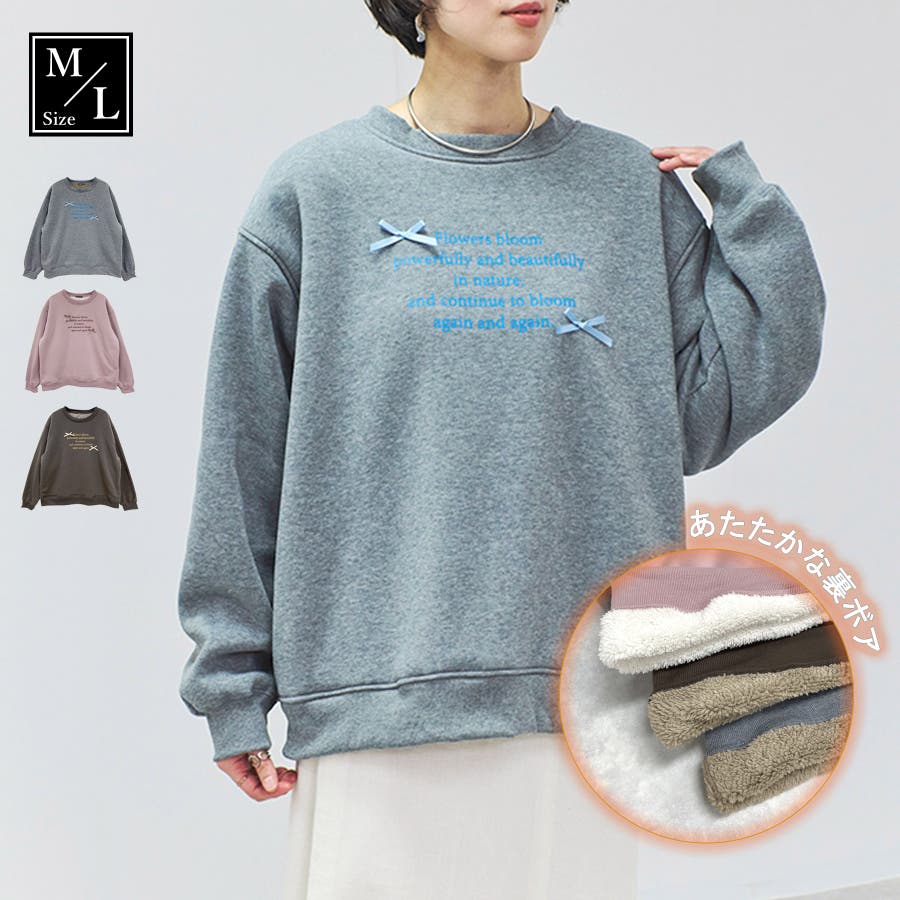 ※ご覧になっているモニターや環境などにより実際の商品と多少色味が異なって見える場合がございます。予めご了承をお願いいたします。 【プルオーバー レディース 秋 冬 長袖 裏起毛 裏ボア プリント リボン アップリケ 大人 体型カバー ゆったり 20代 30代 40代 50代】 メーカー希望小売価格はメーカーサイトに基づいて掲載しています