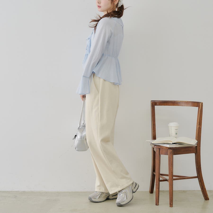 軽やかな素材感とウエストゴムで着心地も抜群。