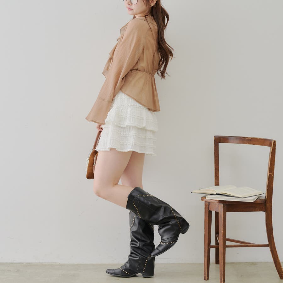 ミニスカとロングブーツで合わせた韓国らしいスタイリングもおすすめです。