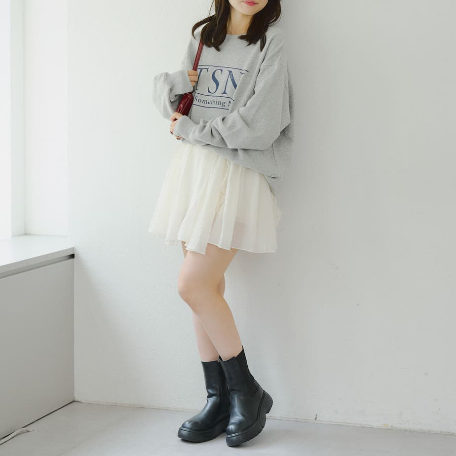 ・スウェットトップスに合わせてカジュアルガーリーなコーデに♪