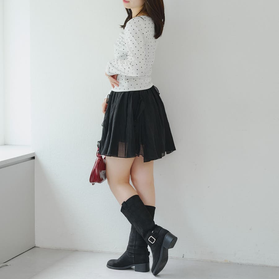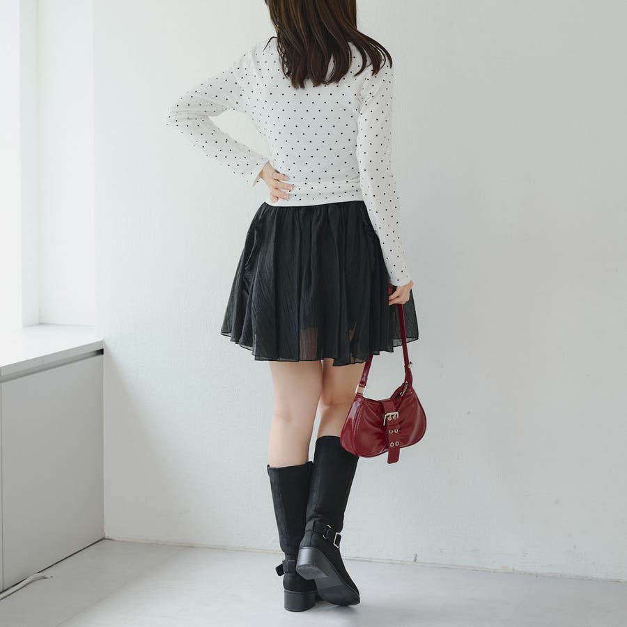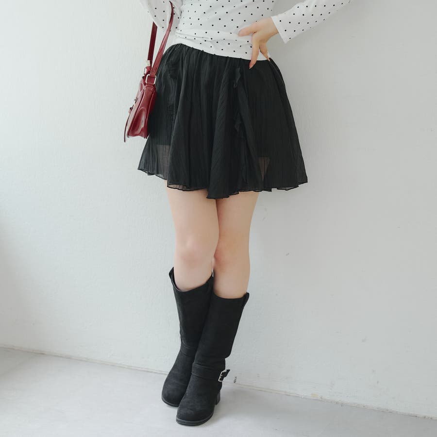 ・ふわっと揺れるフレア楊柳ミニスカート。