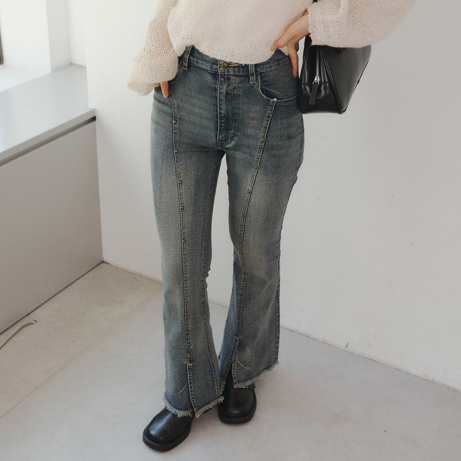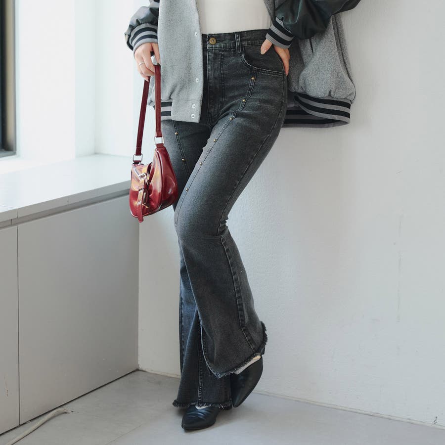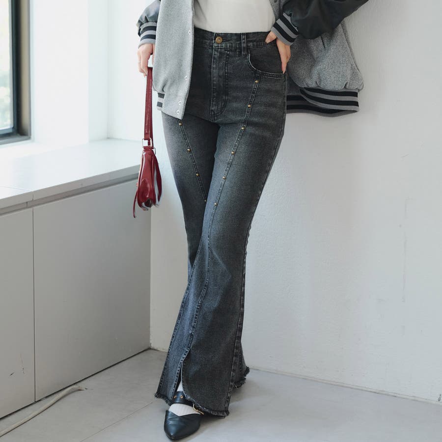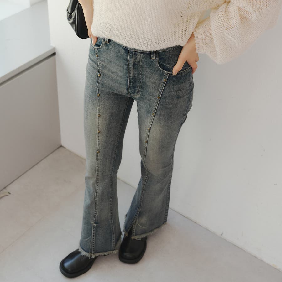 RMAF Remindmeandforever olivedesolive niceclaup 秋 秋服 秋物 冬 冬服 冬物 韓国 韓国系 韓国風 韓国ファッション 10代 20代 30代 大人 人気 大人かわいい 大人カジュアル トレンド 新作 プチプラ パンツ ボトム ズボン デニム デニムパンツ フレアデニム フレアデニムパンツ スタッズデニム スタッズ スリットパンツ スリットデニムパンツ 0852020310