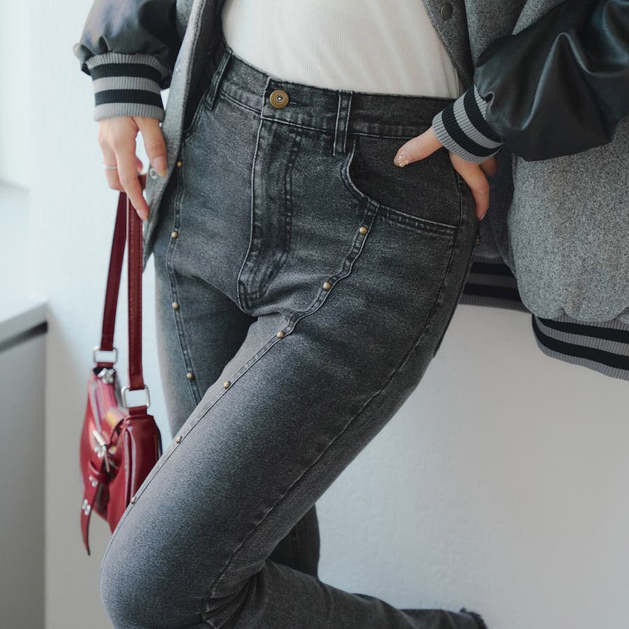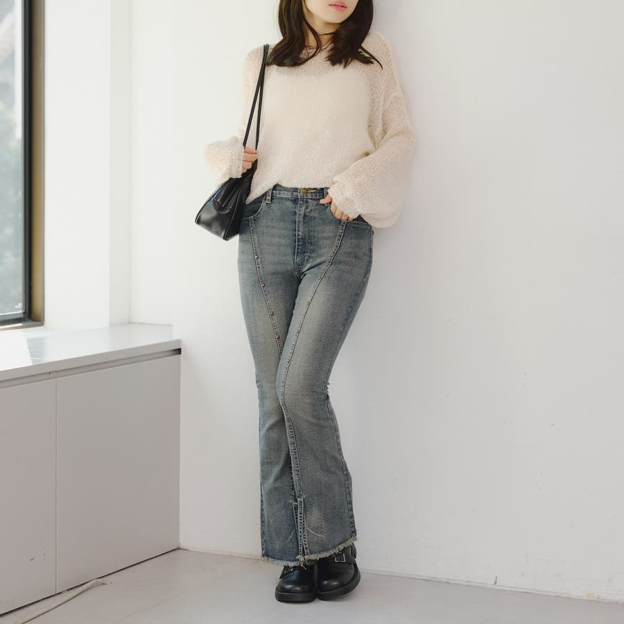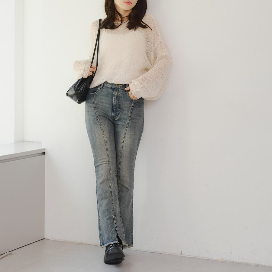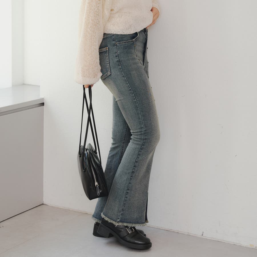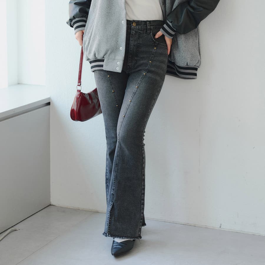 RMAF Remindmeandforever olivedesolive niceclaup 秋 秋服 秋物 冬 冬服 冬物 韓国 韓国系 韓国風 韓国ファッション 10代 20代 30代 大人 人気 大人かわいい 大人カジュアル トレンド 新作 プチプラ パンツ ボトム ズボン デニム デニムパンツ フレアデニム フレアデニムパンツ スタッズデニム スタッズ スリットパンツ スリットデニムパンツ 0852020310