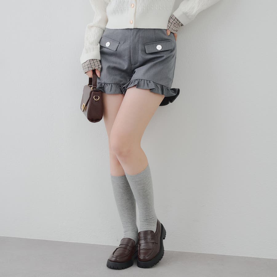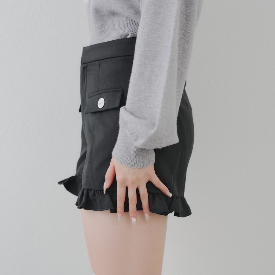 ・コンパクトな丈感で脚長効果がありつつも裾のフリルで太ももカバーも◎
