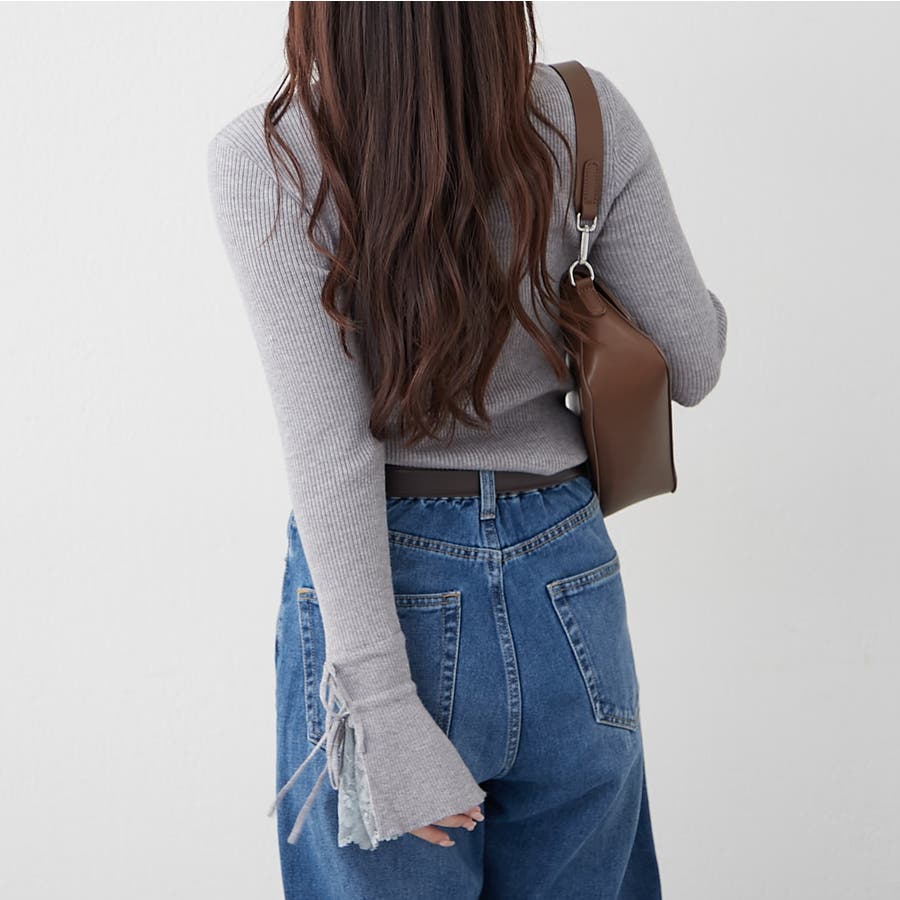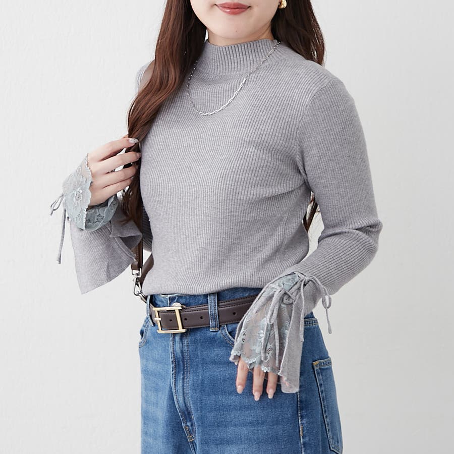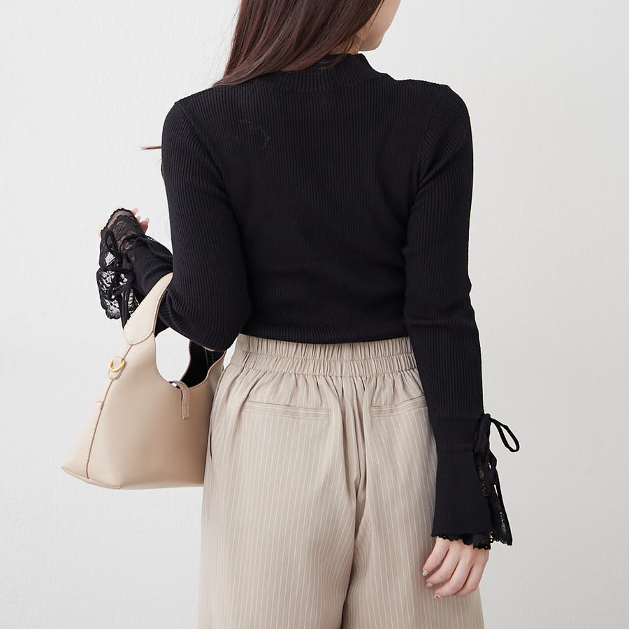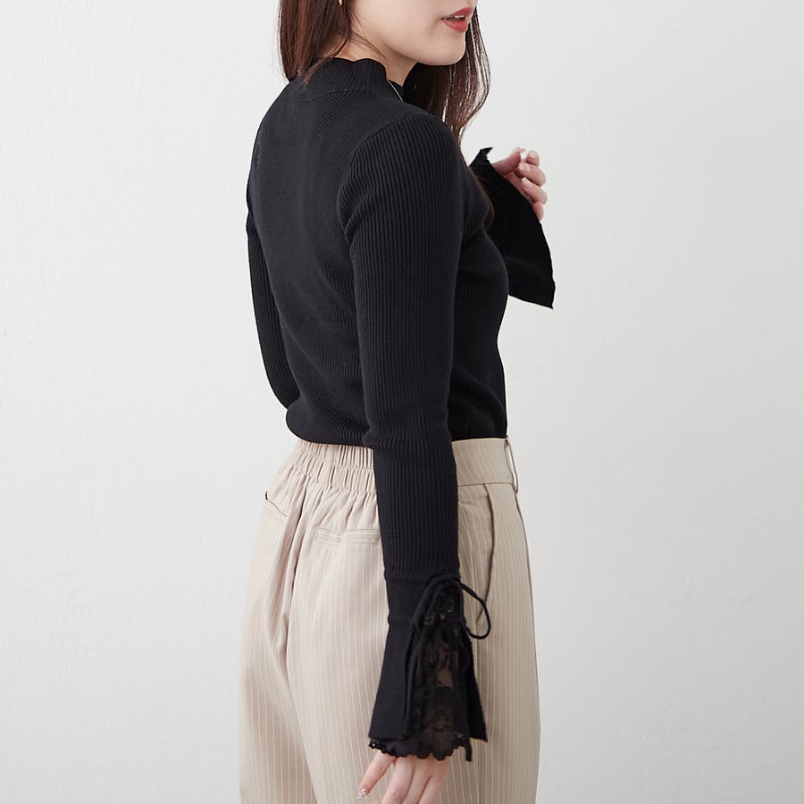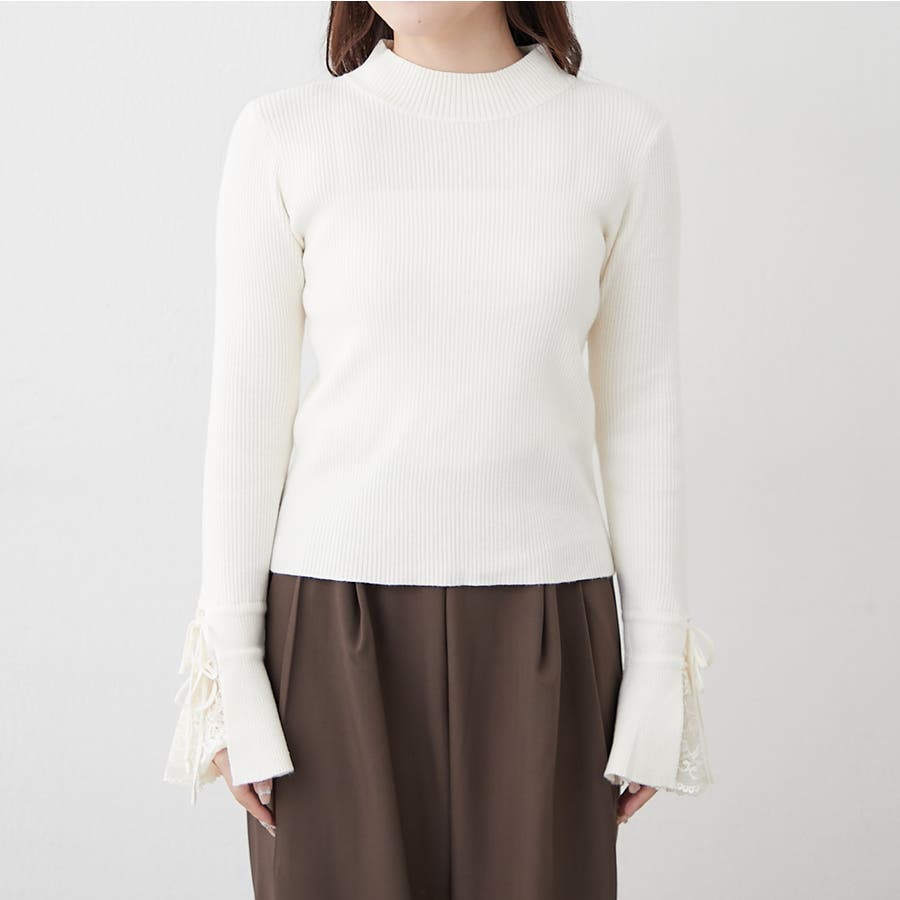 ・袖のレースとリボンが可愛いニットトップス。