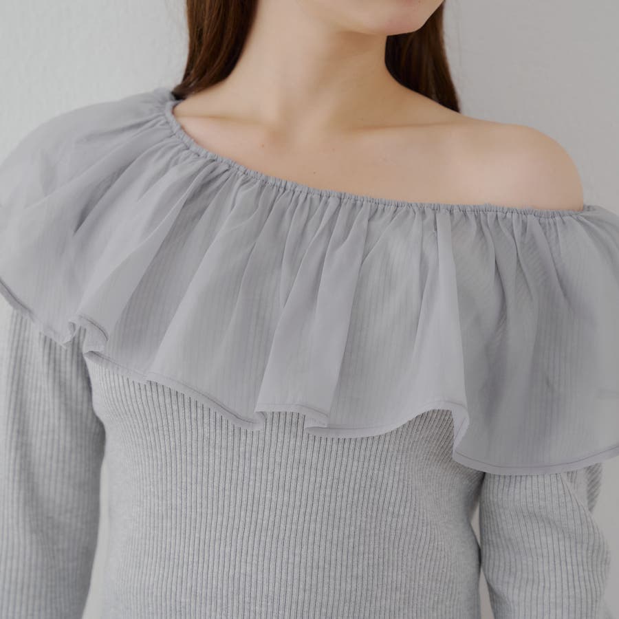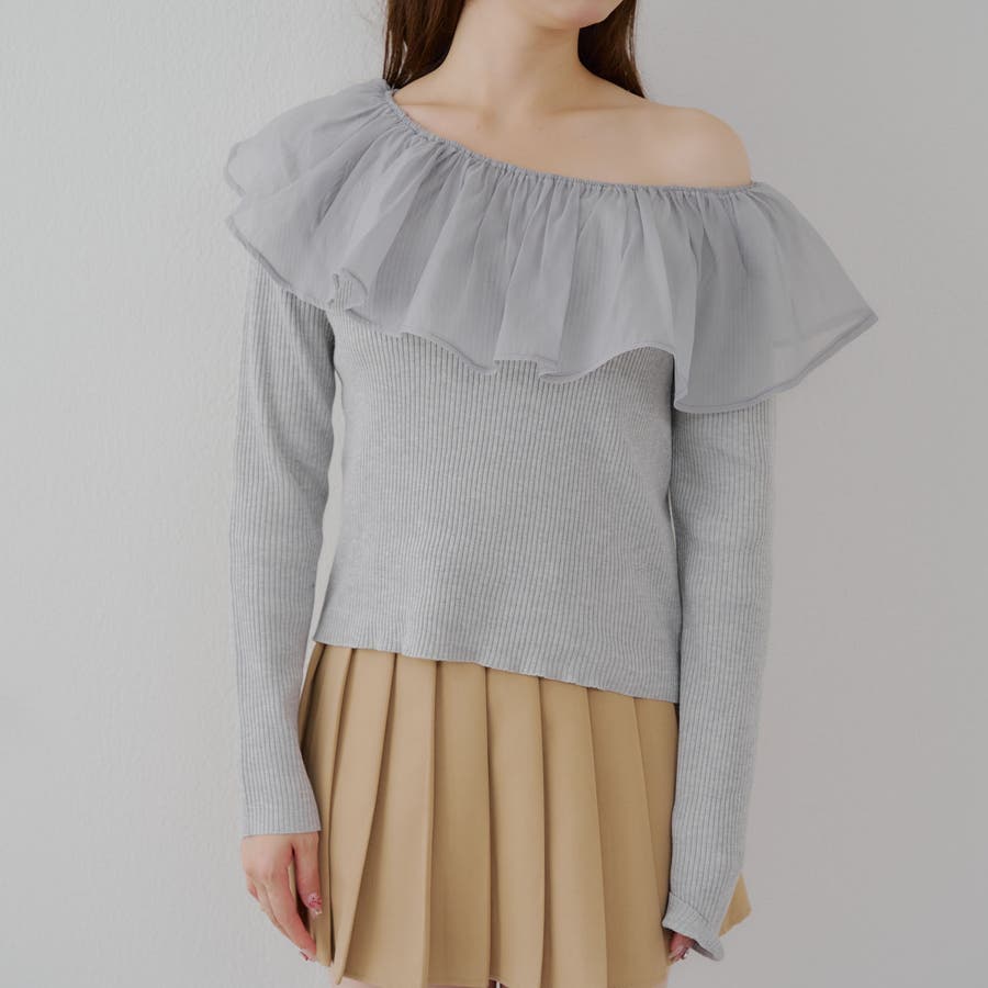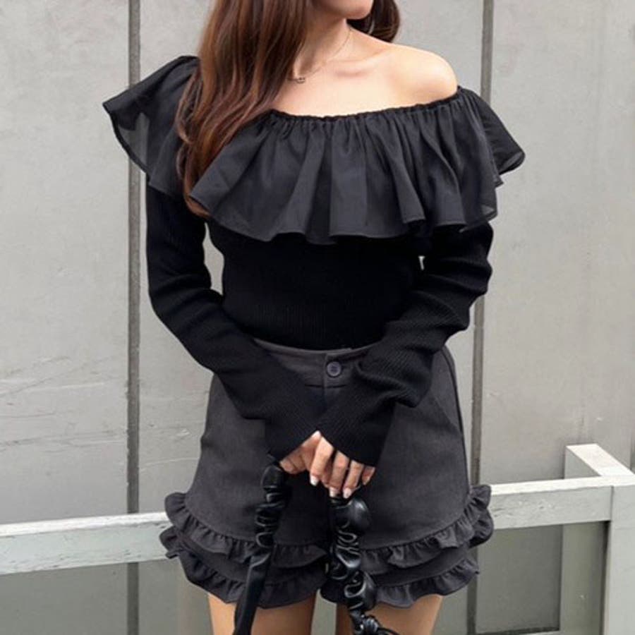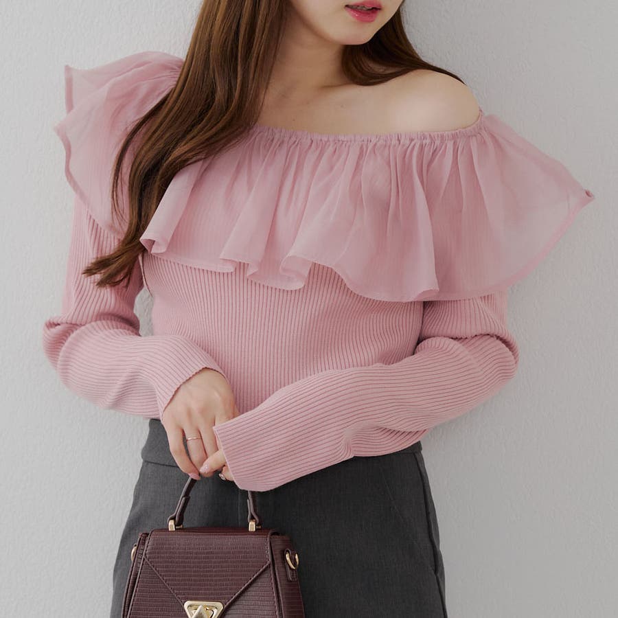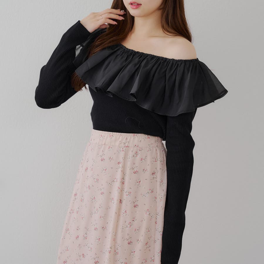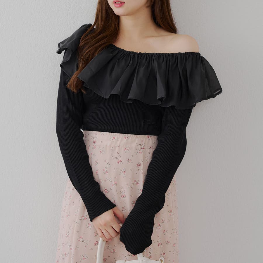RMAF Remindmeandforever olivedesolive niceclaup 秋 秋服 秋物 冬 冬服 冬物 韓国 韓国系 韓国風 韓国ファッション 10代 20代 30代 大人 人気 大人かわいい 大人カジュアル トレンド 新作 プチプラ トップス リブニット ニット 長袖 ワンショル オフショル フリル 0852050340