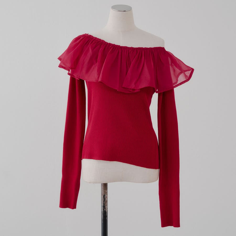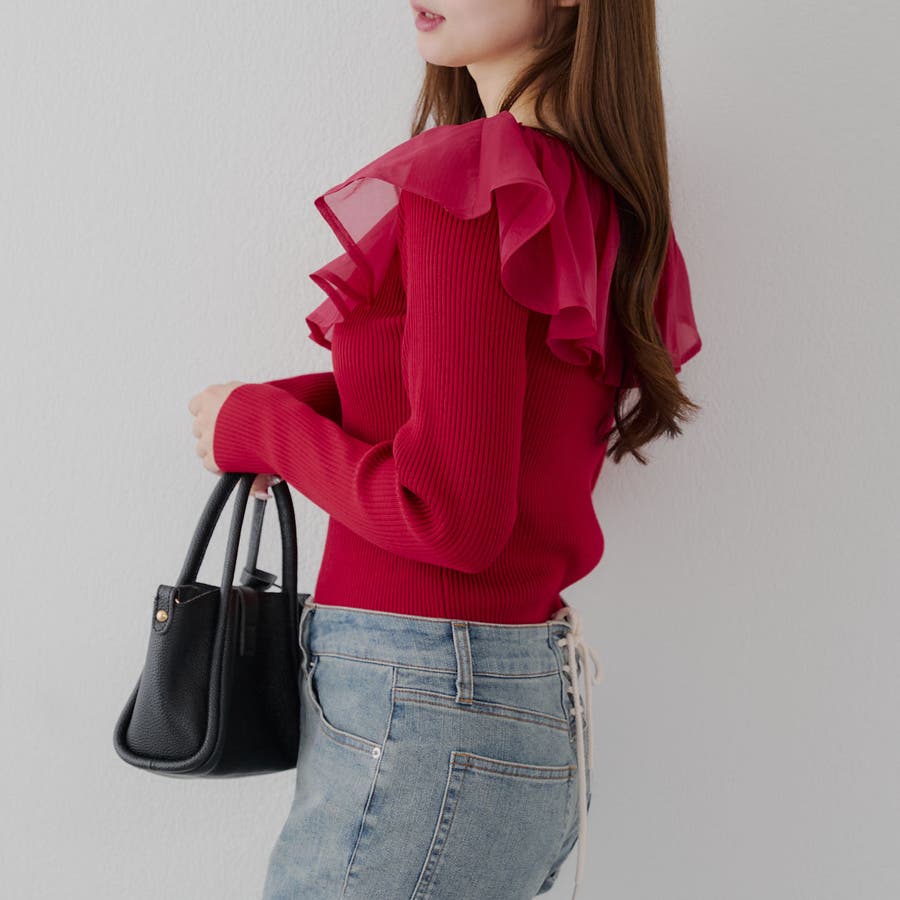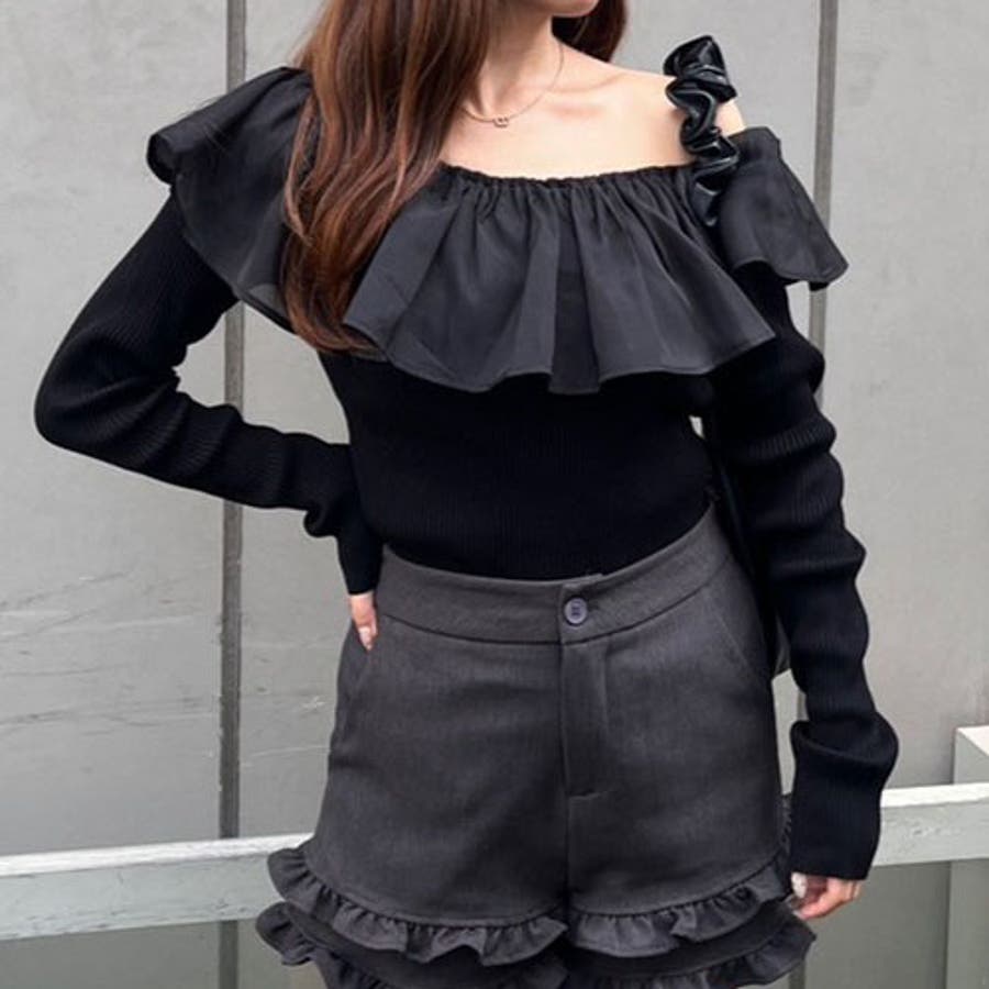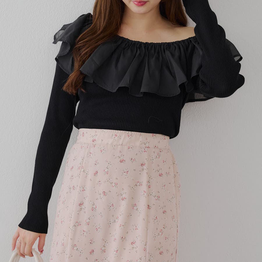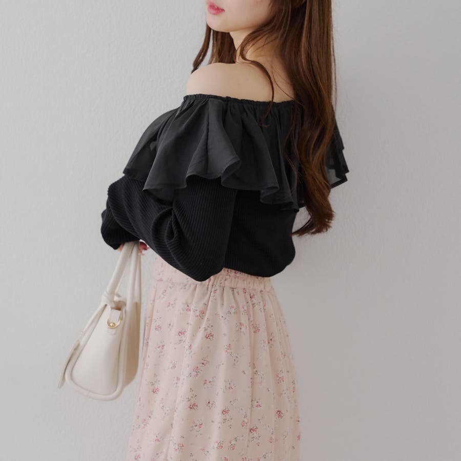 RMAF Remindmeandforever olivedesolive niceclaup 秋 秋服 秋物 冬 冬服 冬物 韓国 韓国系 韓国風 韓国ファッション 10代 20代 30代 大人 人気 大人かわいい 大人カジュアル トレンド 新作 プチプラ トップス リブニット ニット 長袖 ワンショル オフショル フリル 0852050340