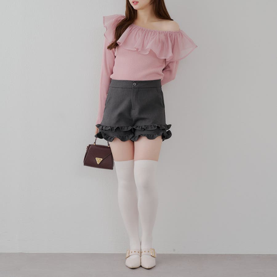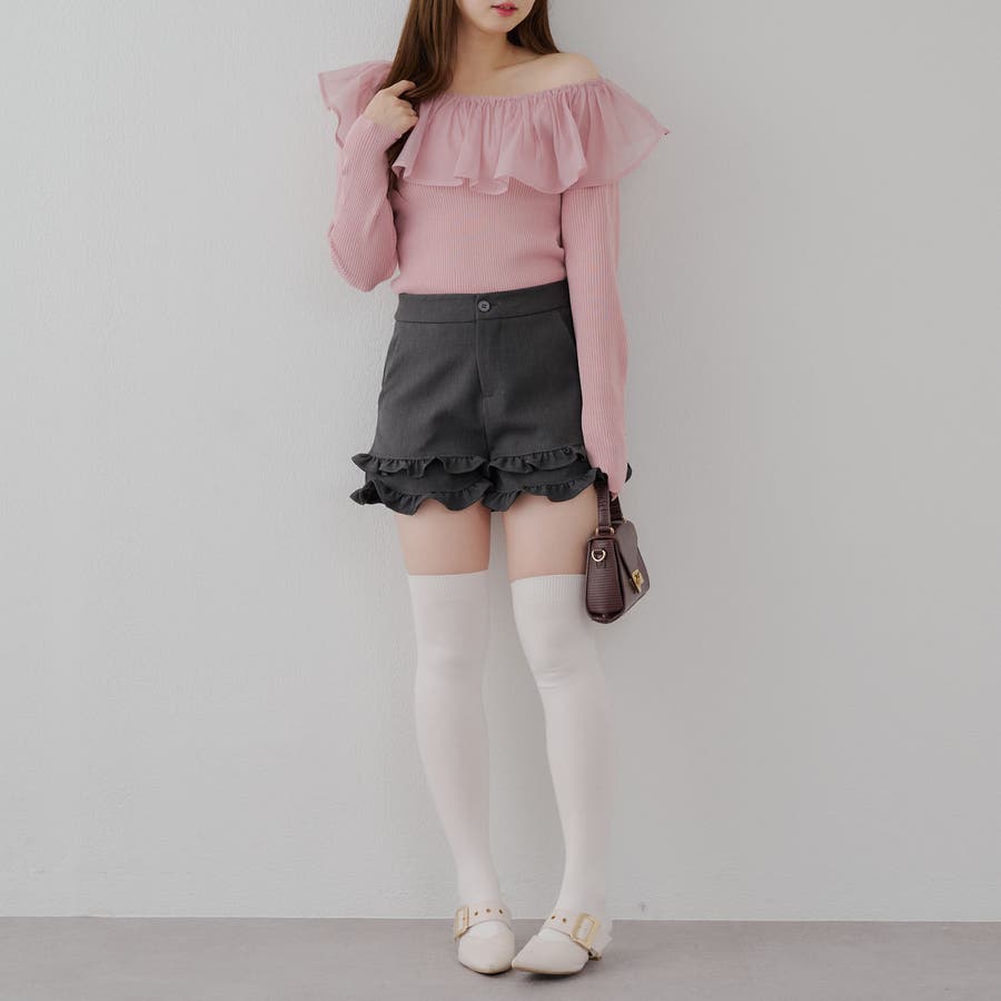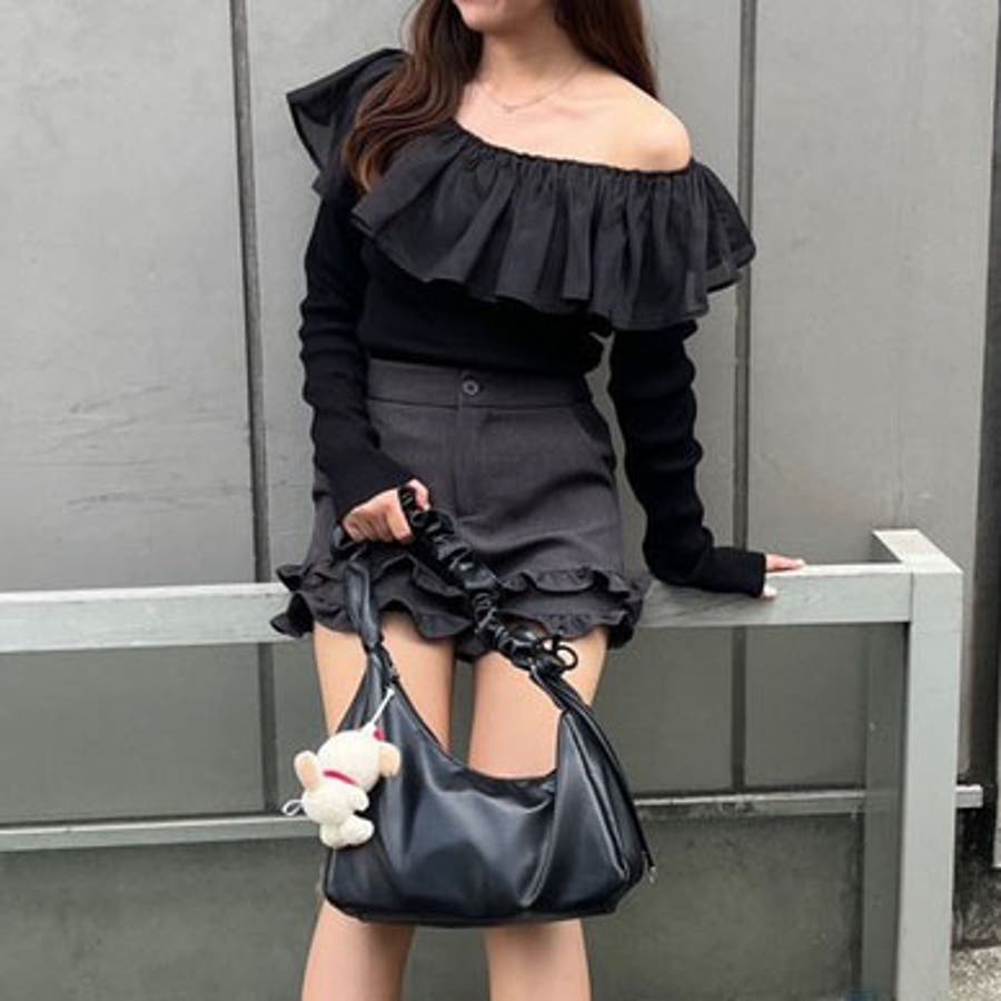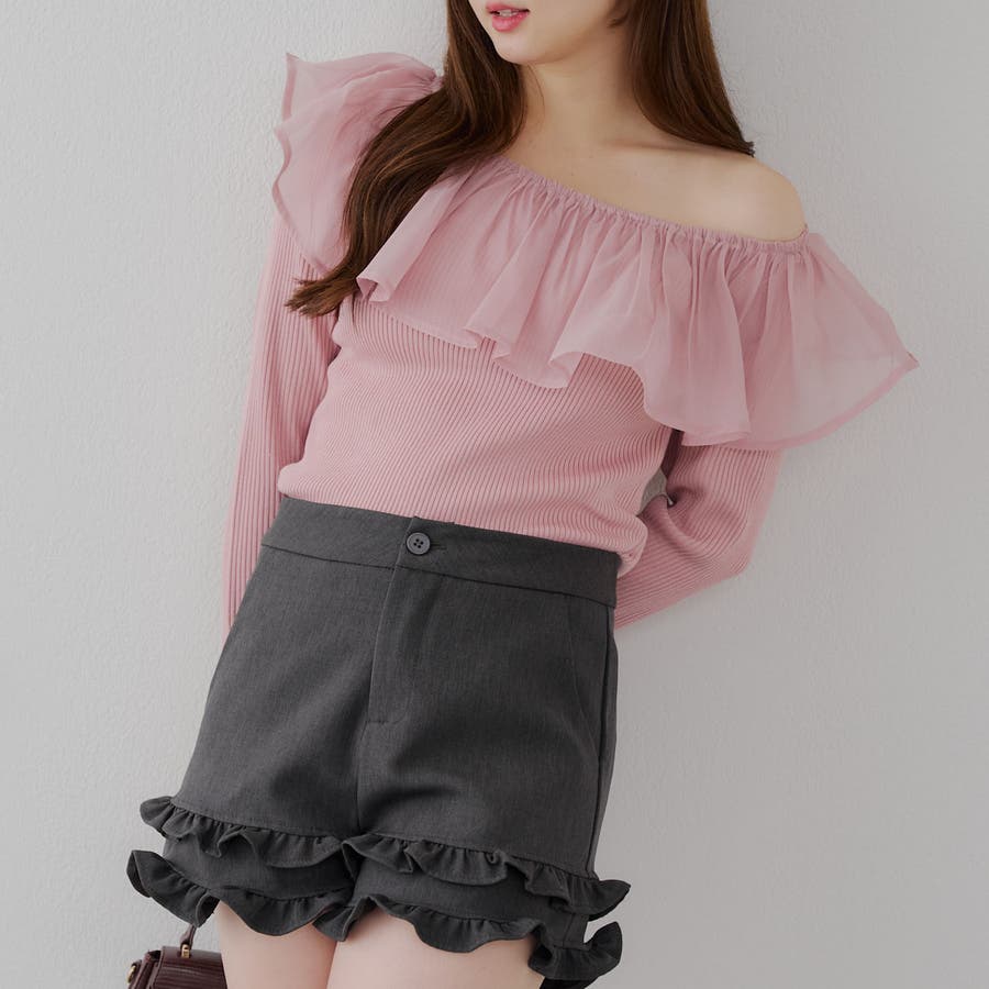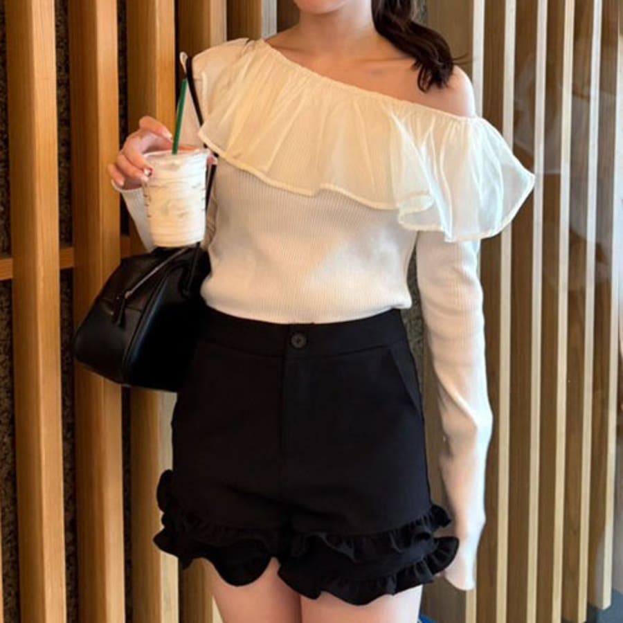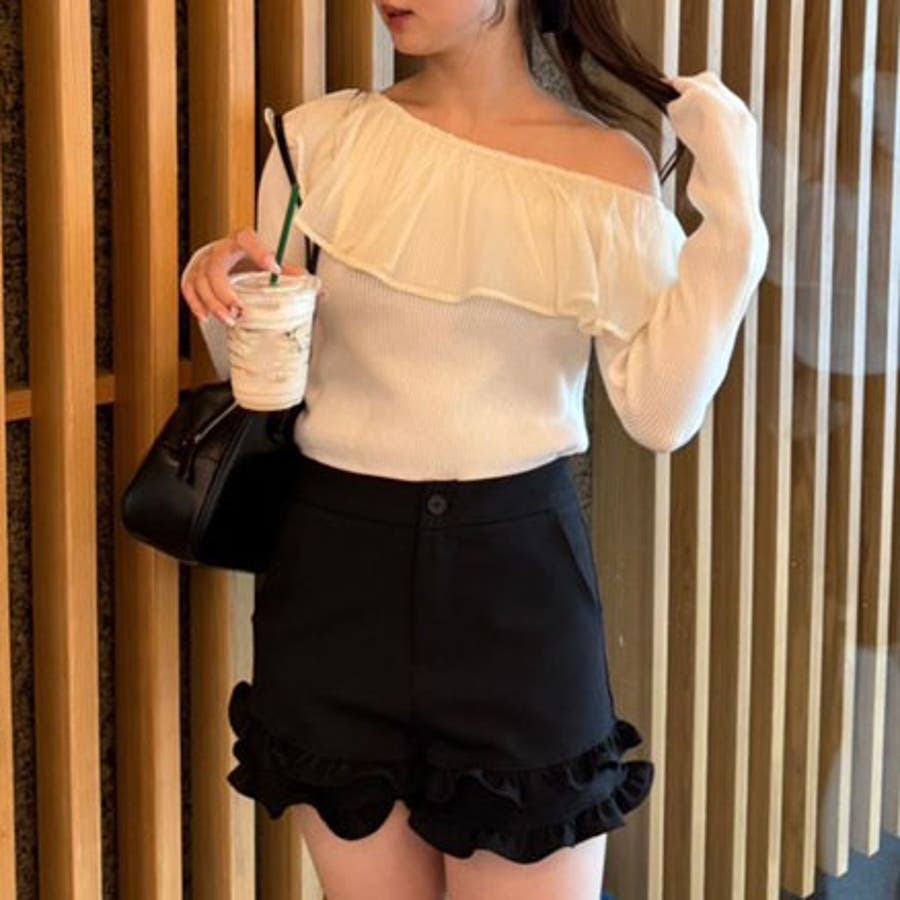 RMAF Remindmeandforever olivedesolive niceclaup 秋 秋服 秋物 冬 冬服 冬物 韓国 韓国系 韓国風 韓国ファッション 10代 20代 30代 大人 人気 大人かわいい 大人カジュアル トレンド 新作 プチプラ トップス リブニット ニット 長袖 ワンショル オフショル フリル 0852050340