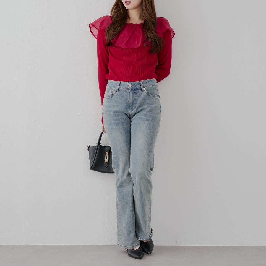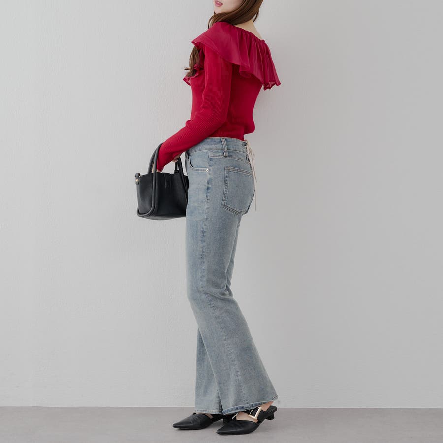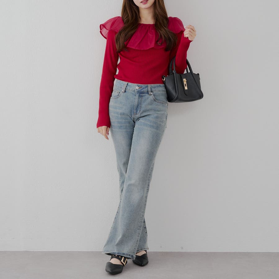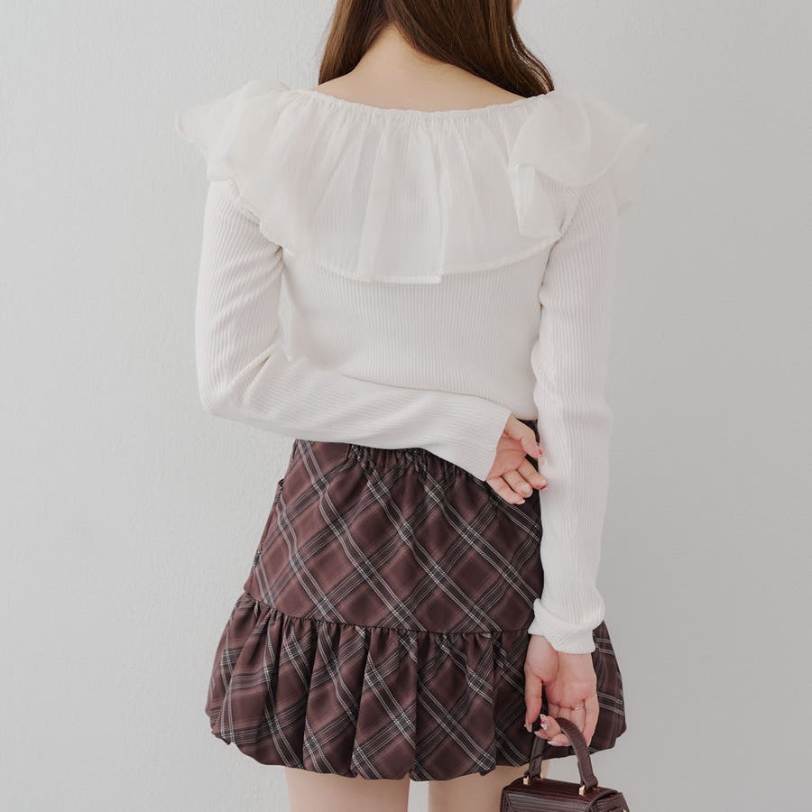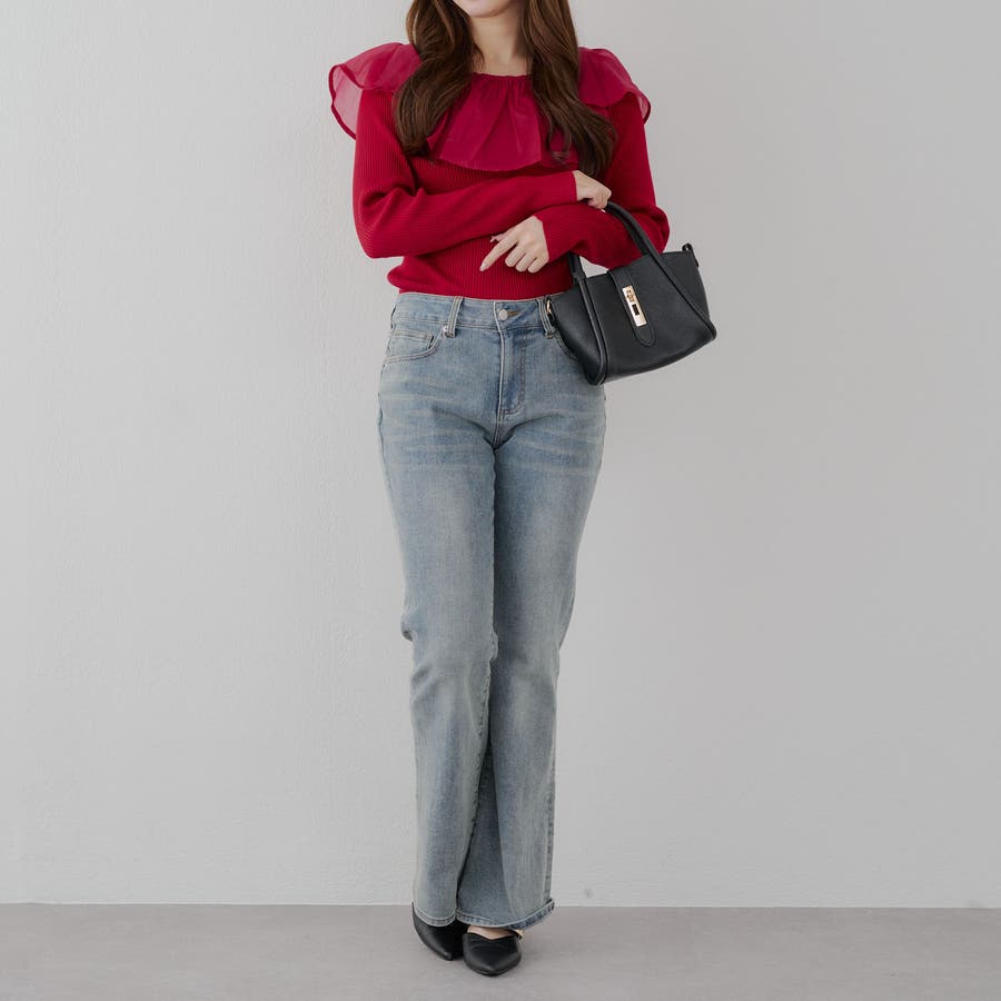 ・ニットとフリルは同色なので程よい存在感でコーデの主役に◎