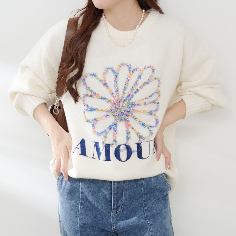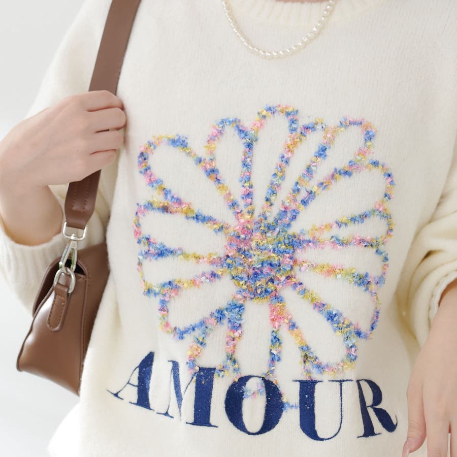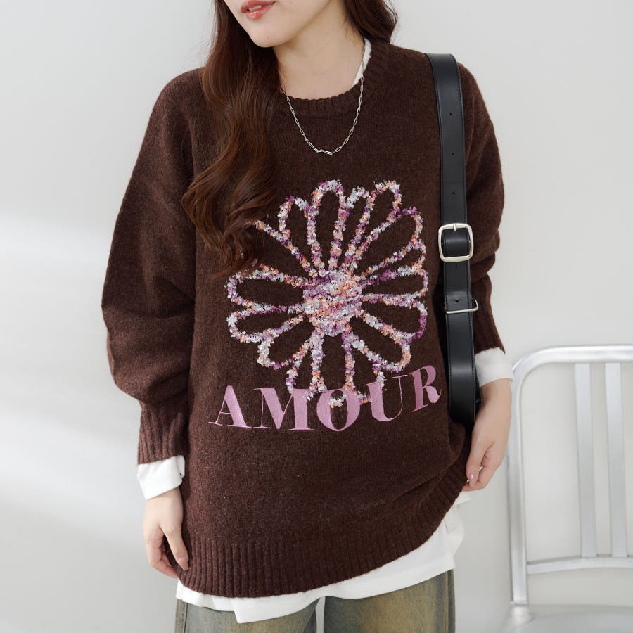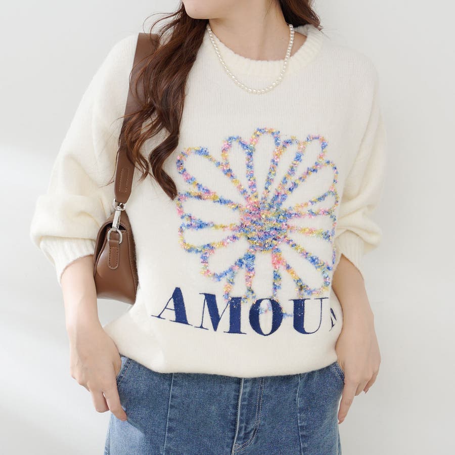 RMAF Remindmeandforever olivedesolive niceclaup 秋 秋服 秋物 冬 冬服 冬物 韓国 韓国系 韓国風 韓国ファッション 10代 20代 30代 大人 人気 大人かわいい 大人カジュアル トレンド 新作 プチプラ ゆったり トップス ニット ニットトップス ジャガードニット 花柄ニット ロゴニット ロゴ 0852050600