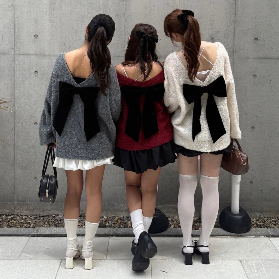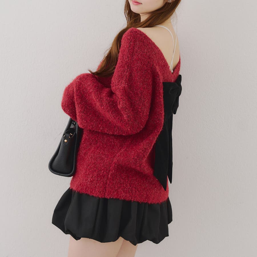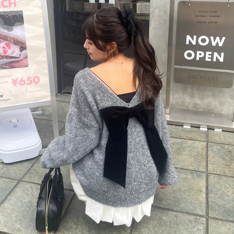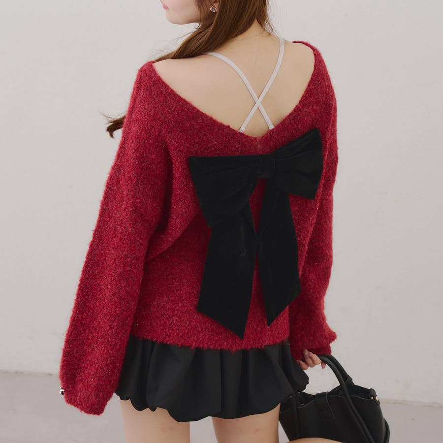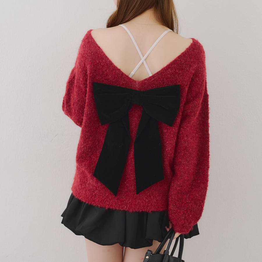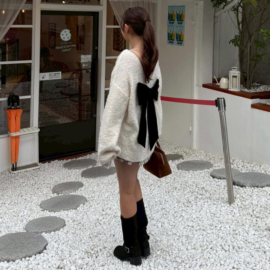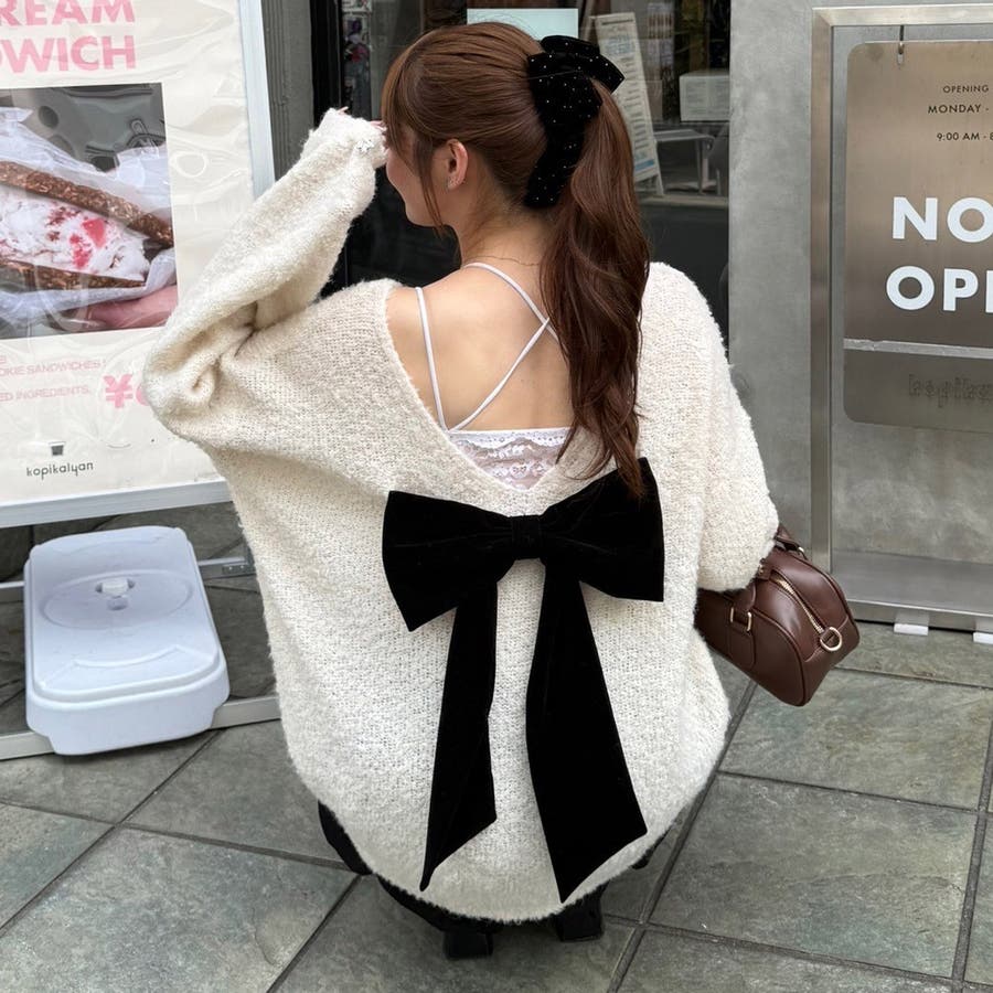 RMAF Remindmeandforever olivedesolive niceclaup 秋 秋服 秋物 冬 冬服 冬物 韓国 韓国系 韓国風 韓国ファッション 10代 20代 30代 大人 人気 大人かわいい 大人カジュアル トレンド 新作 プチプラ ゆったり トップス ニット ニットトップス リボン リボンニット 後ろリボンニット 長袖 0852050620