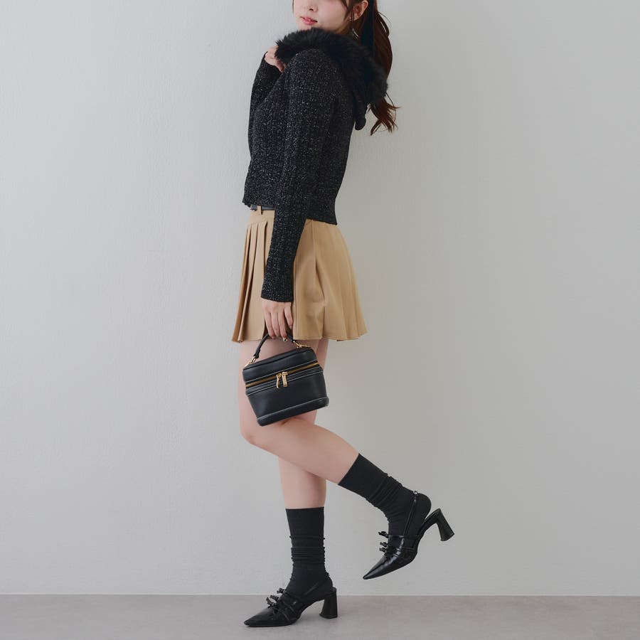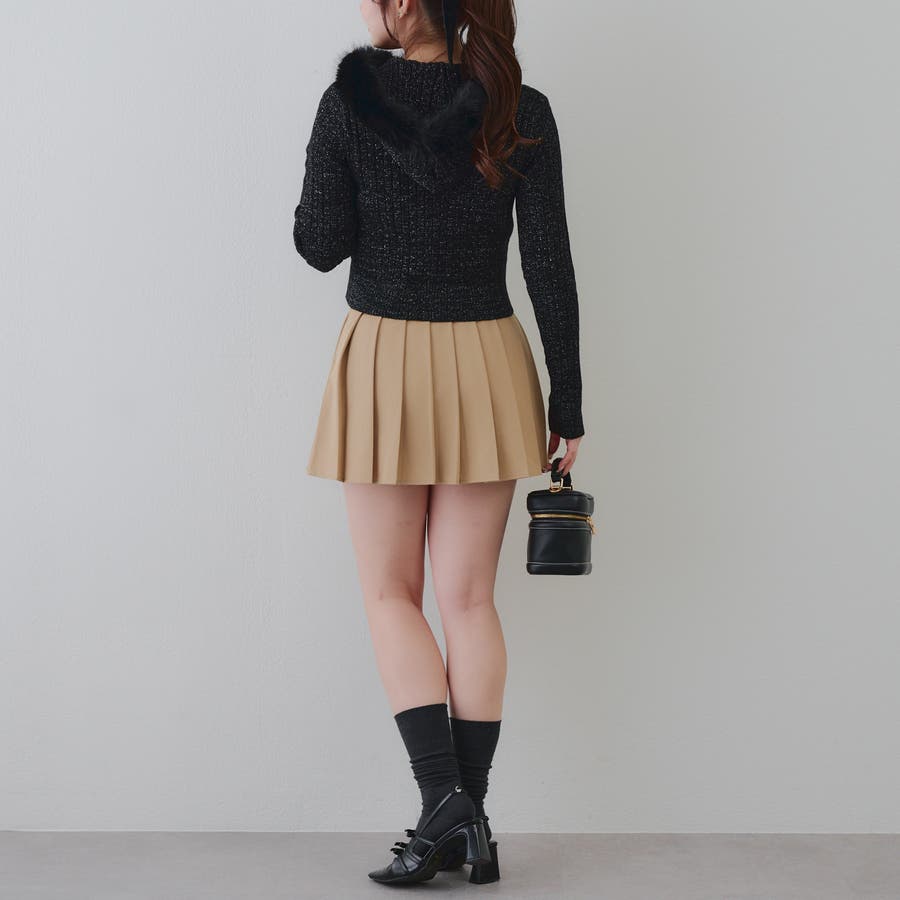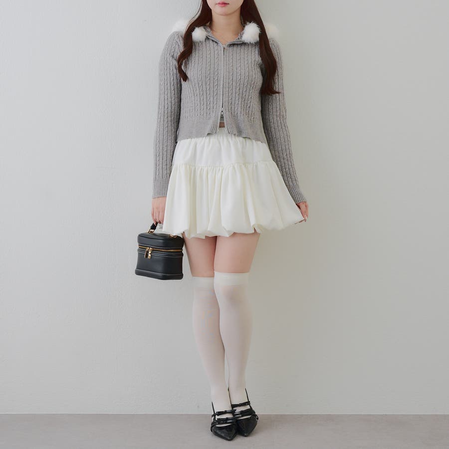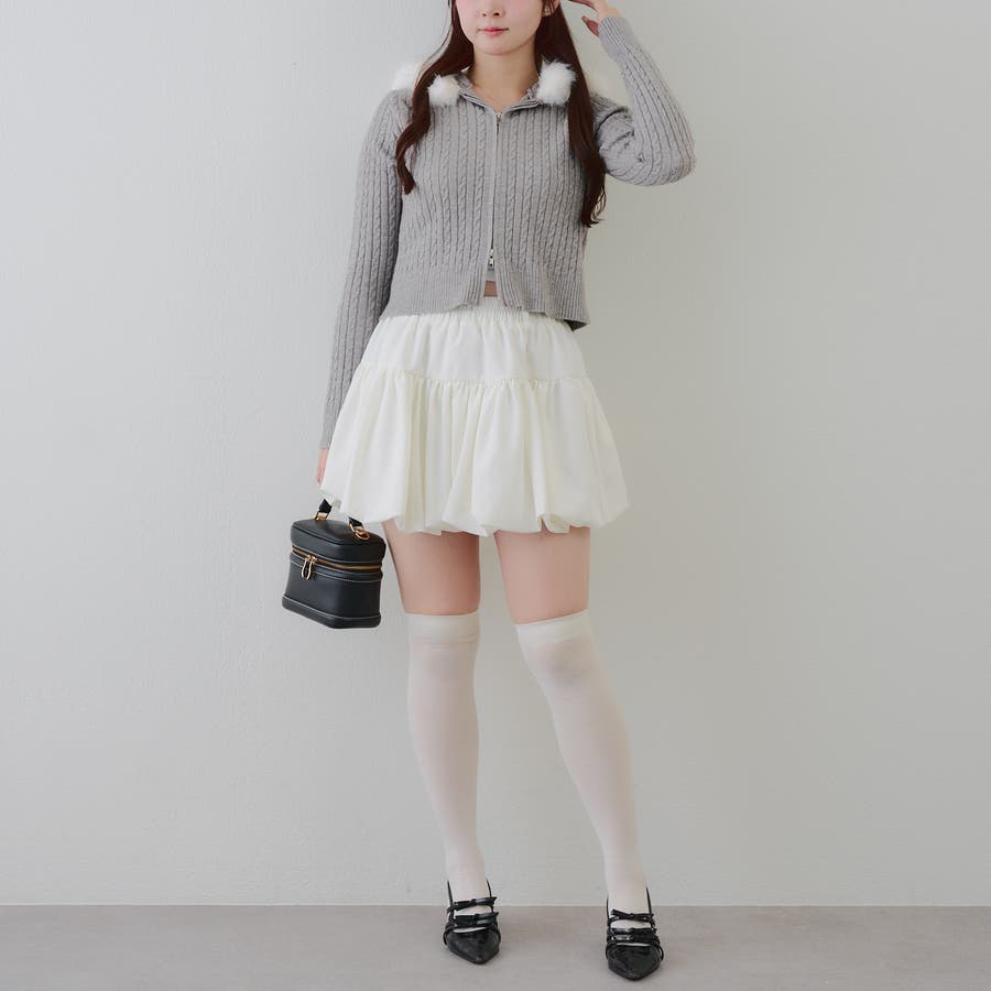 ・ミニボトムと合わせたガーリーな着こなしがおすすめ。