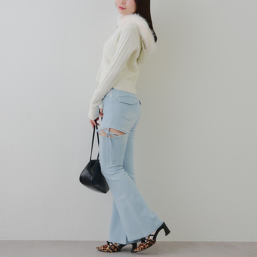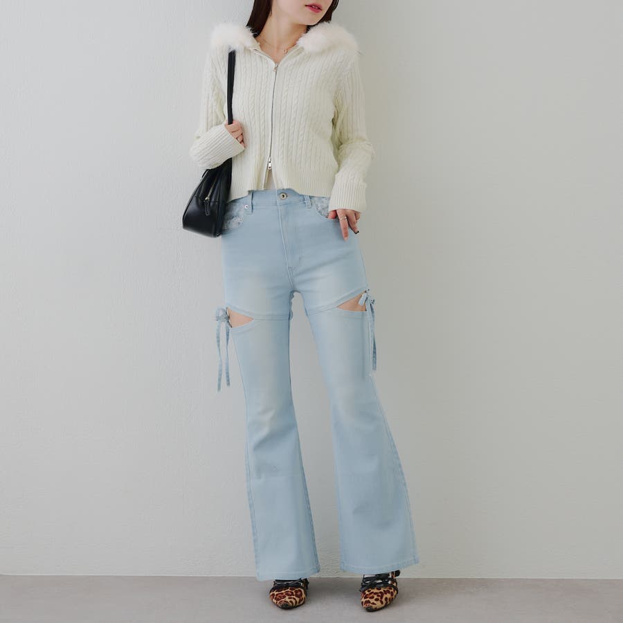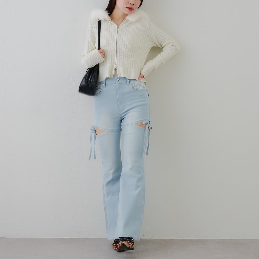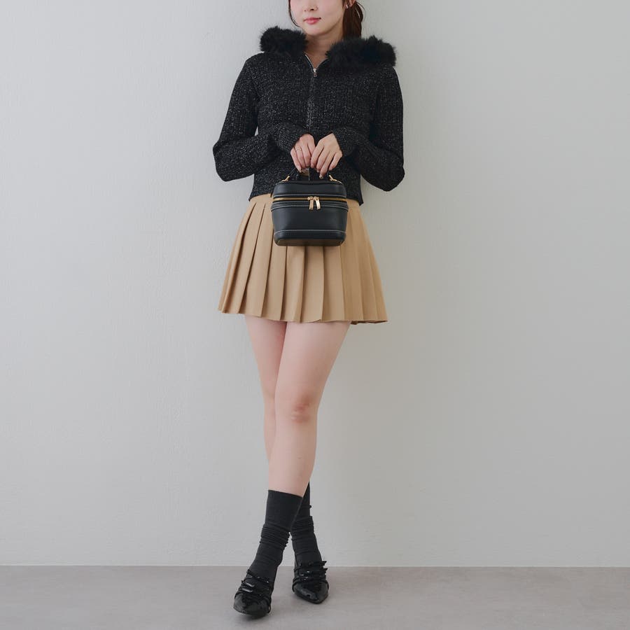 ・ミニボトムと合わせたガーリーな着こなしがおすすめ。