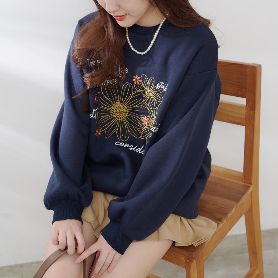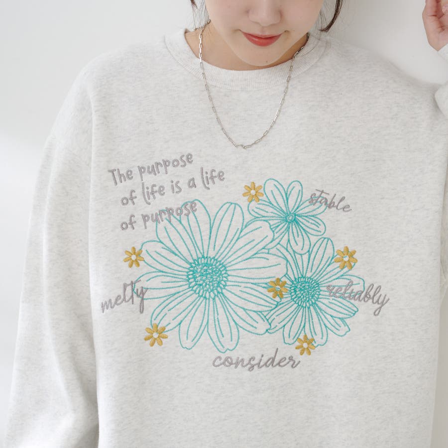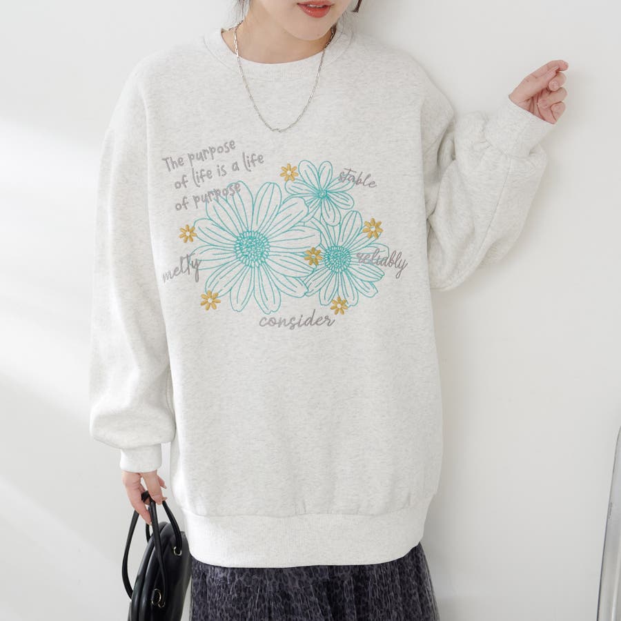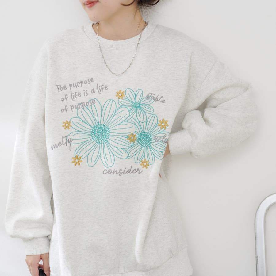 お花とロゴのアソート裏起毛プルオーバー