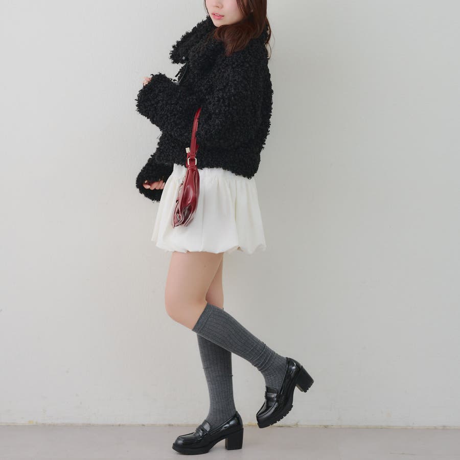 ・ミドルサイズでは、ミニボトムとの相性が◎ブーツと合わせて大人ガーリーコーデに。