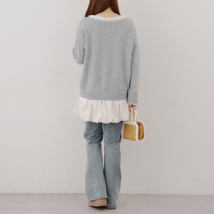 本体ポリエステル58% アクリル15% ナイロン15% ウール8% ポリウレタン4% レース部分ナイロン90% ポリウレタン10% 別地部分ポリエステル100%