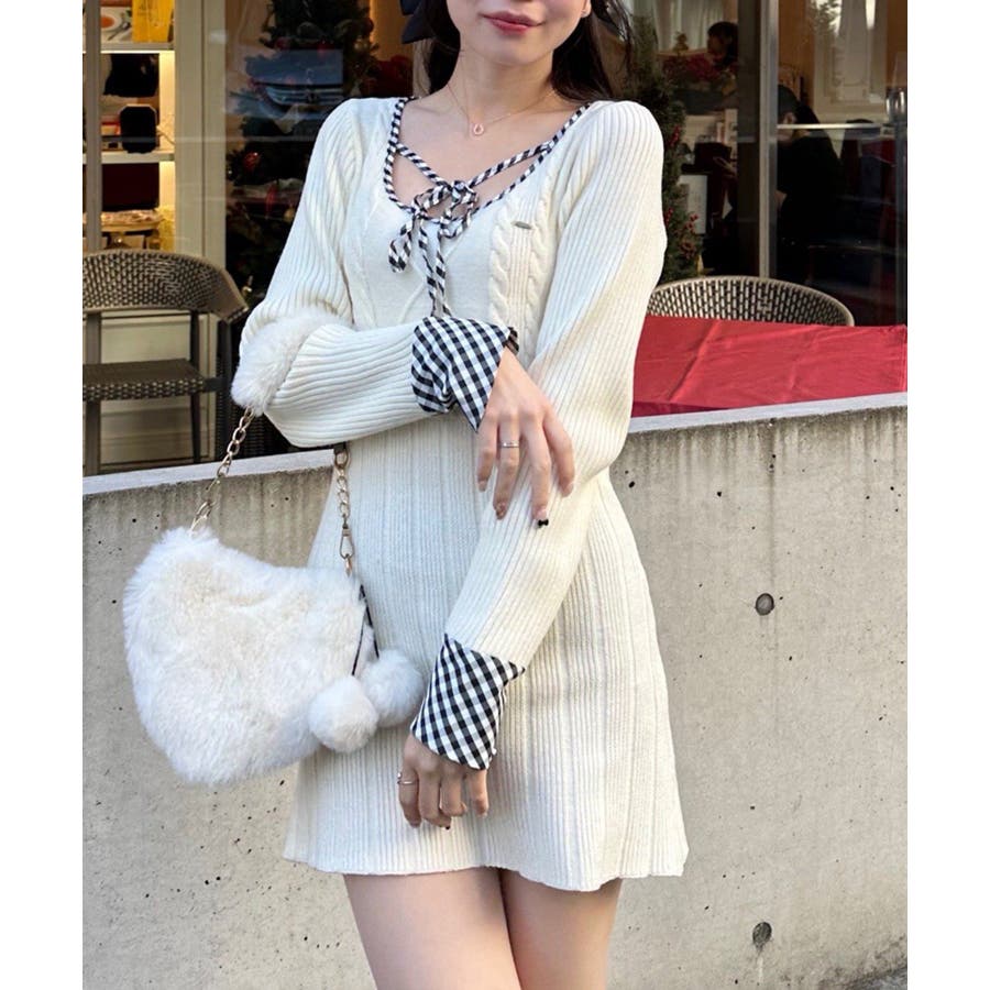 RMAF Remindmeandforever olivedesolive niceclaup 秋 秋服 秋物 冬 冬服 冬物 韓国 韓国系 韓国風 韓国ファッション 10代 20代 30代 大人 人気 大人かわいい 大人カジュアル トレンド 新作 プチプラ ワンピース ワンピ ミニワンピース ミニワンピ ニットワンピース ニットワンピ リボン 0852090450