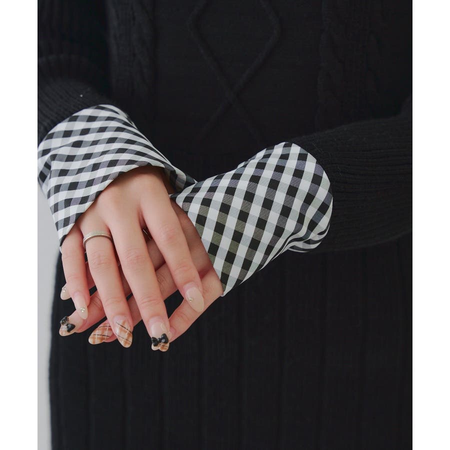 ・首周りと袖部分がチェックの配色になったミニワンピース
