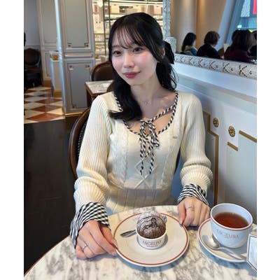 ・ケーブル編みのタイトなシルエットでお姉さんガーリーな印象にしてくれます
