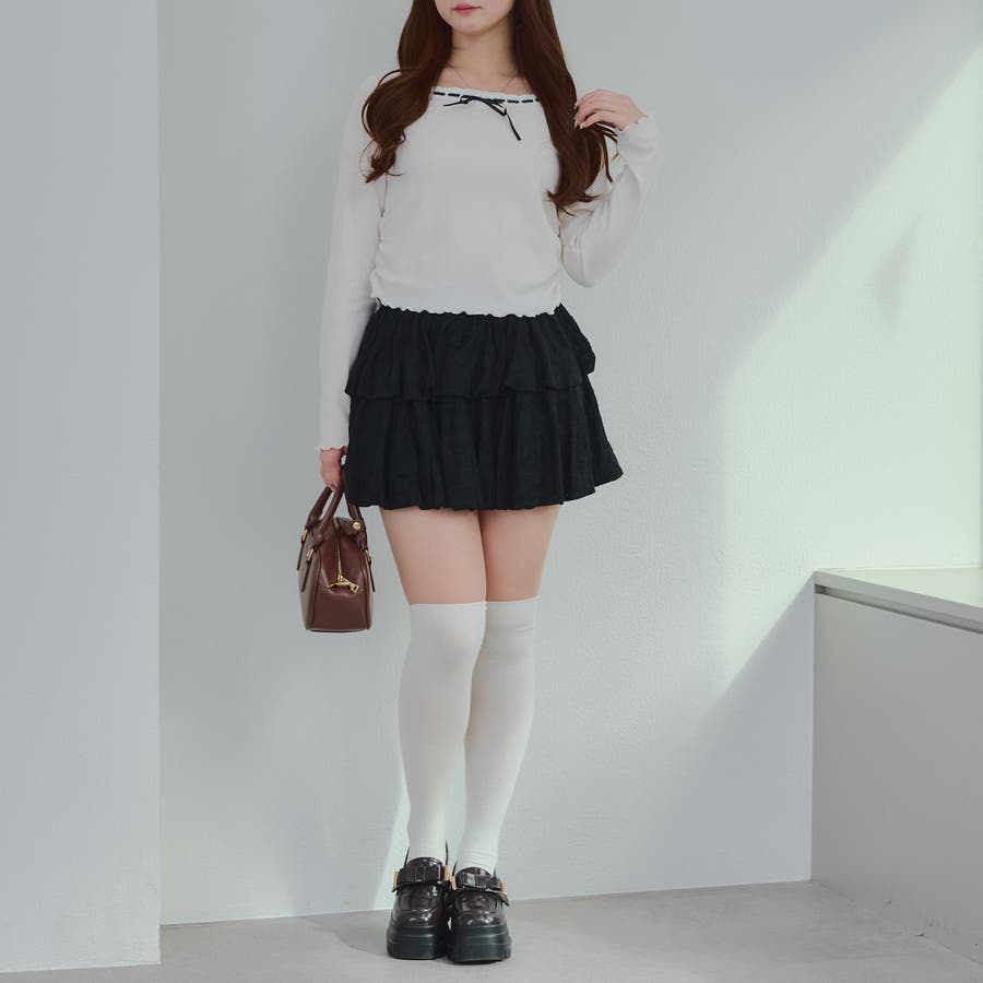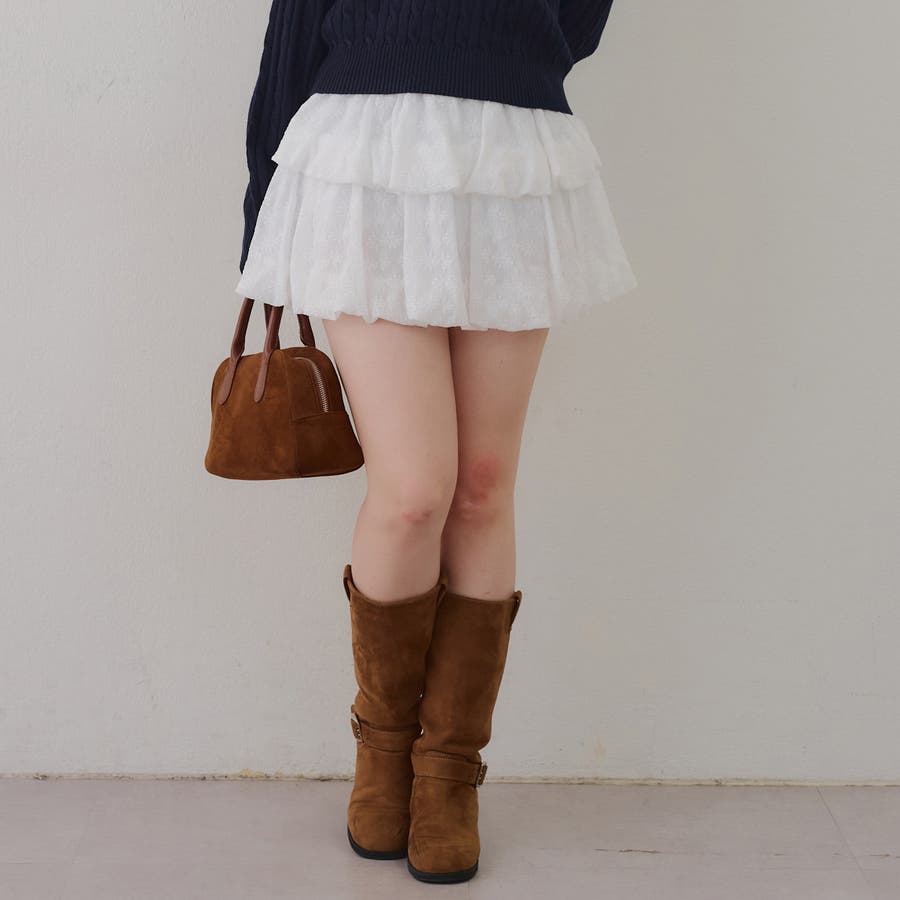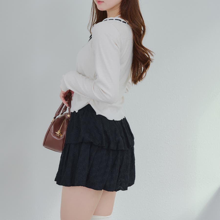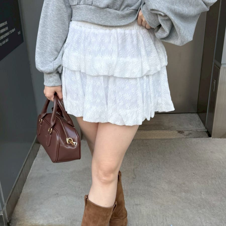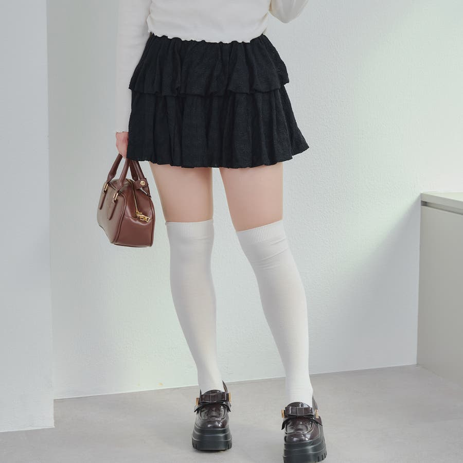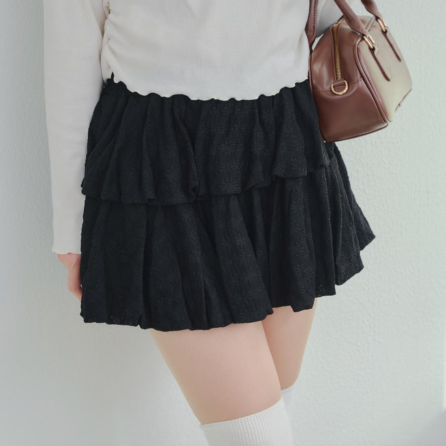 ・広がり過ぎないボリューム感の2段ティアードが脚を華奢に見せてくれるミニスカート