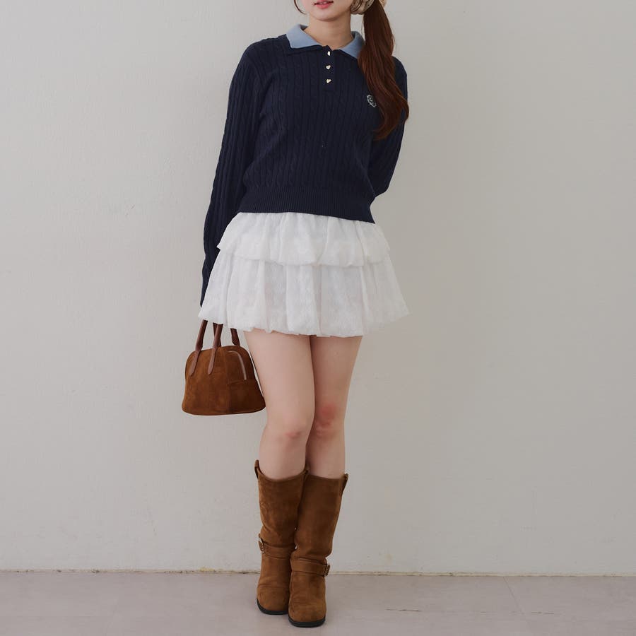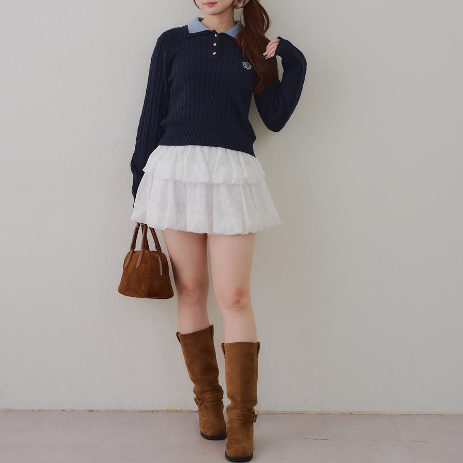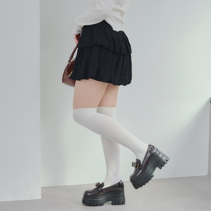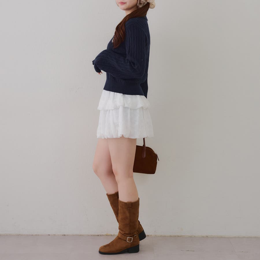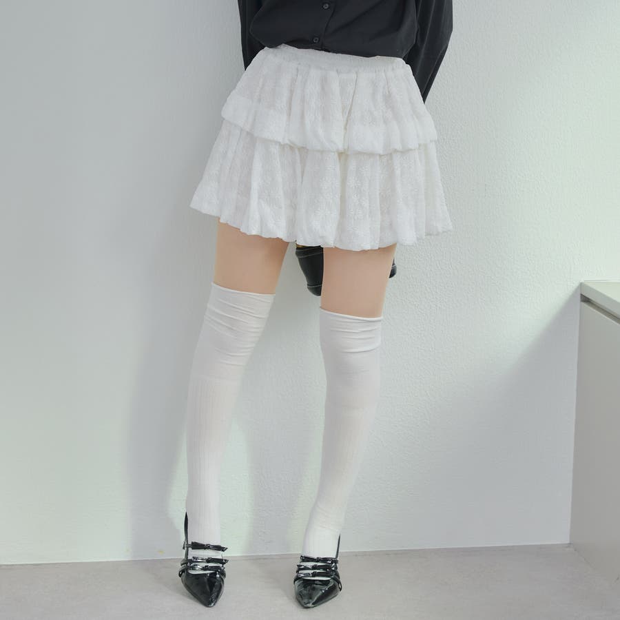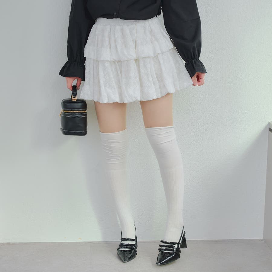 ・広がり過ぎないボリューム感の2段ティアードが脚を華奢に見せてくれるミニスカート