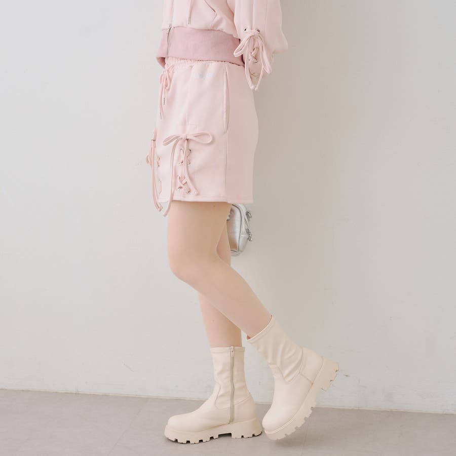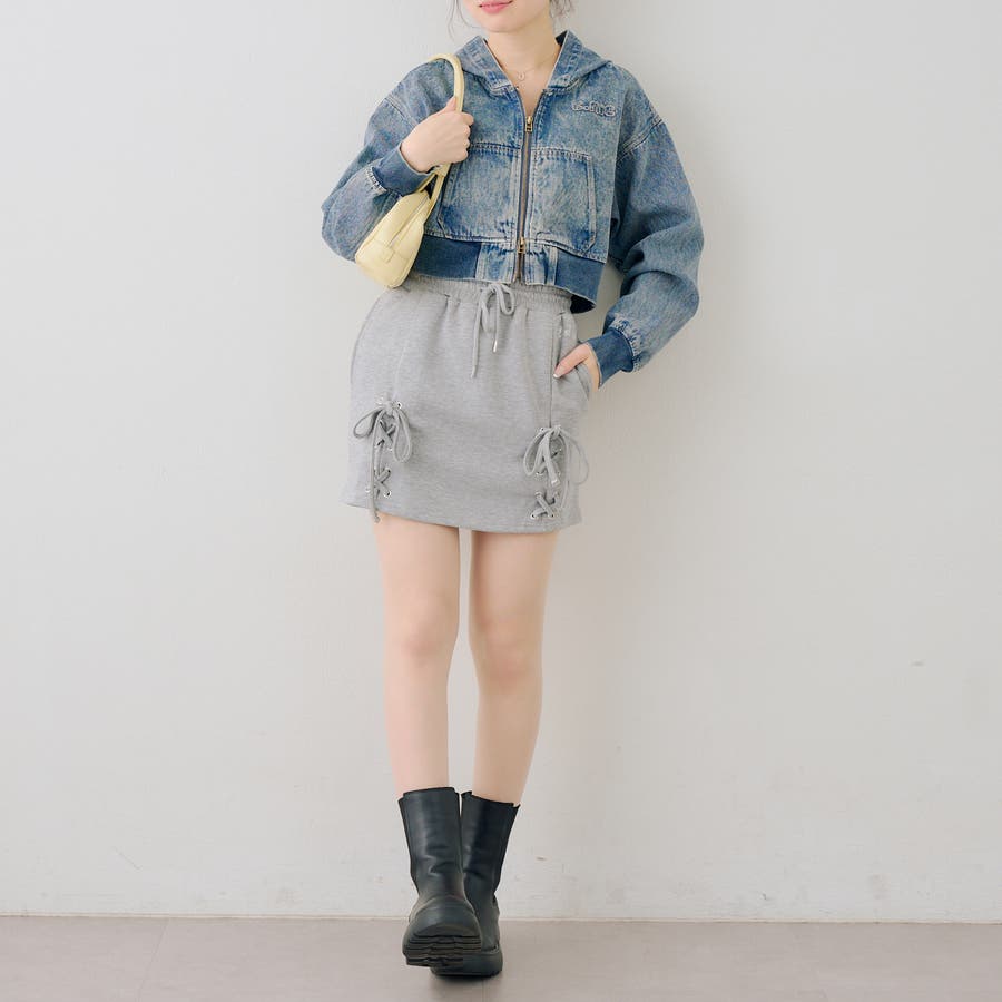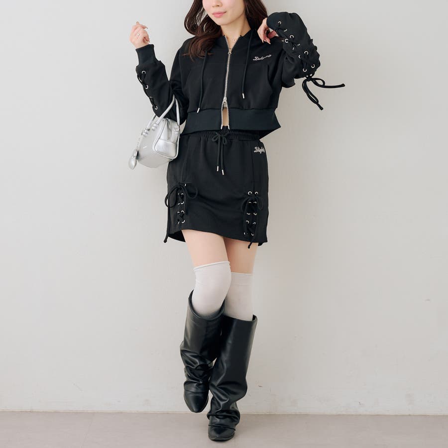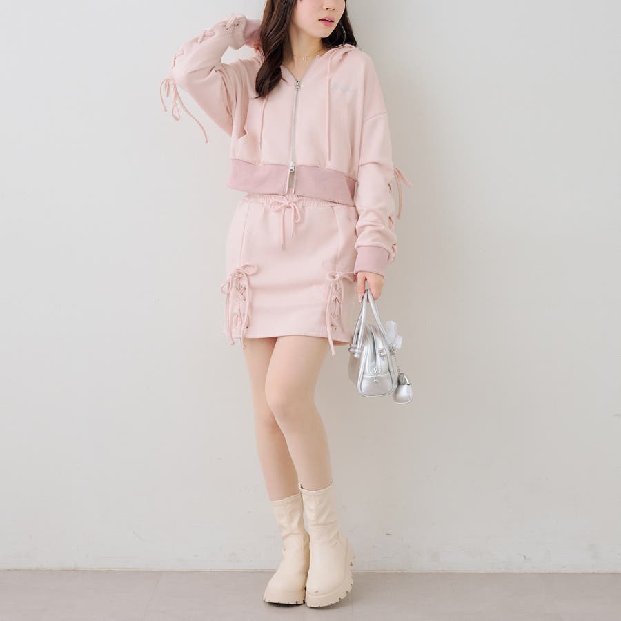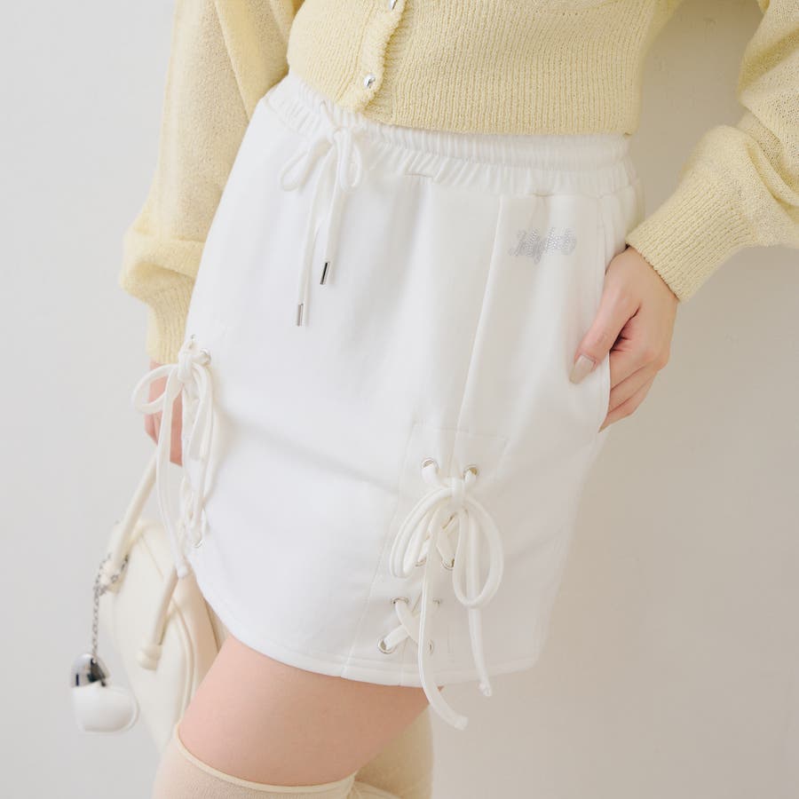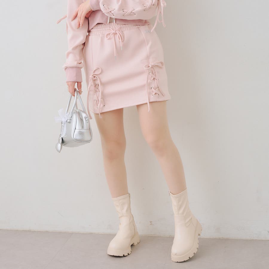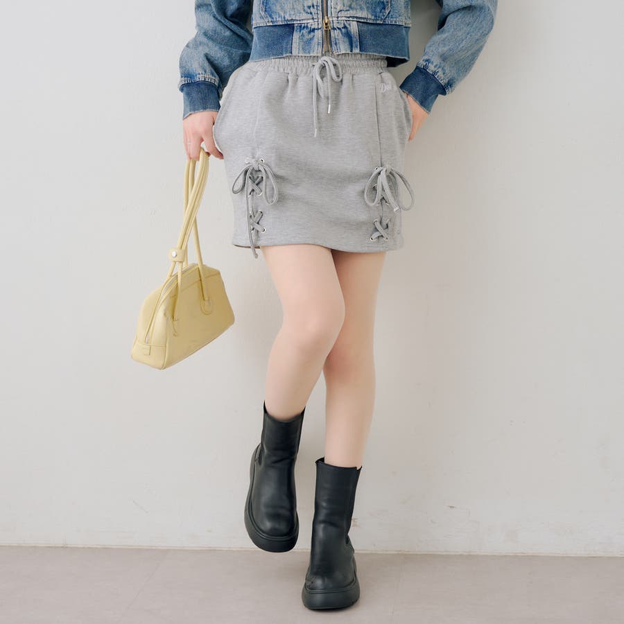 ・レースアップデザインが可愛いスウェット素材のタイトミニスカート
