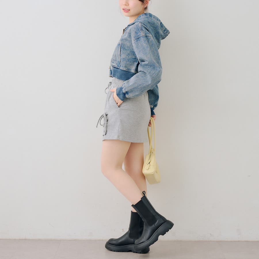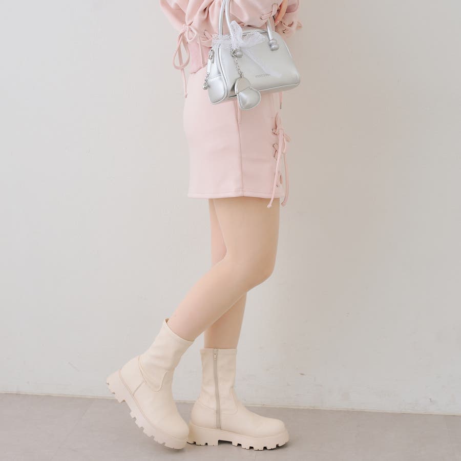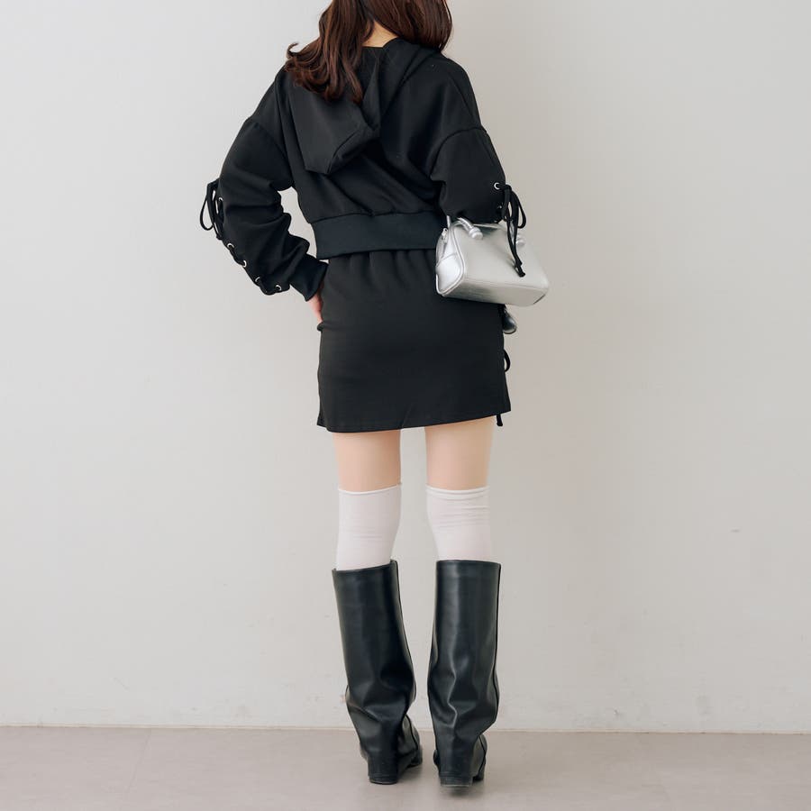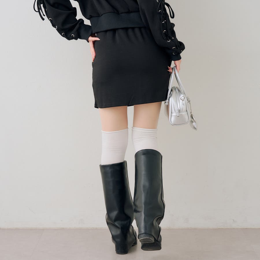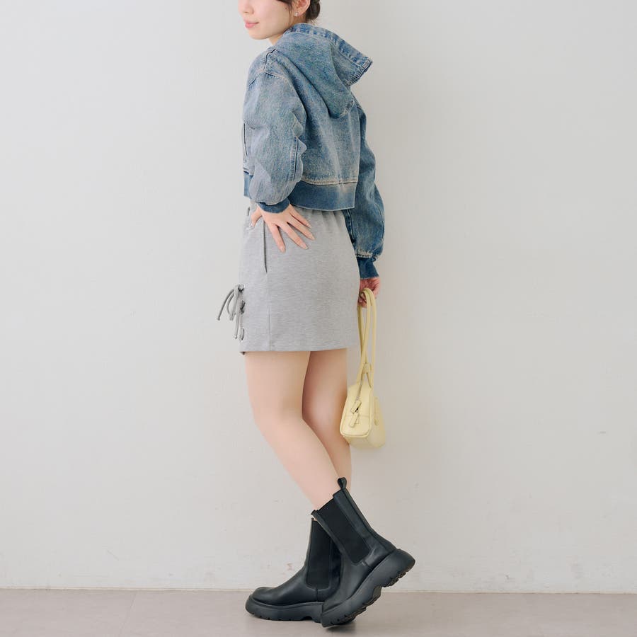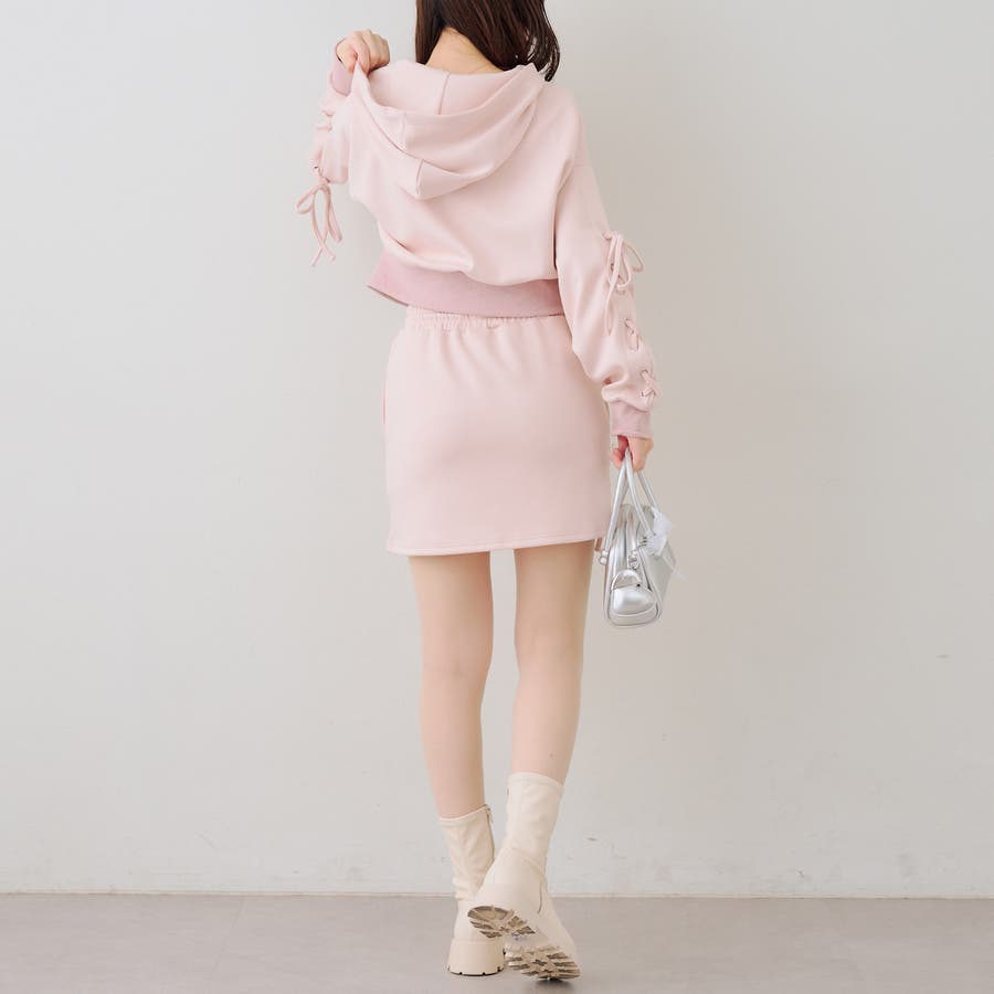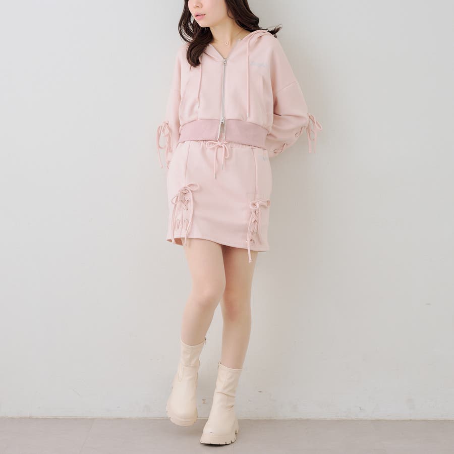 ・レースアップデザインが可愛いスウェット素材のタイトミニスカート