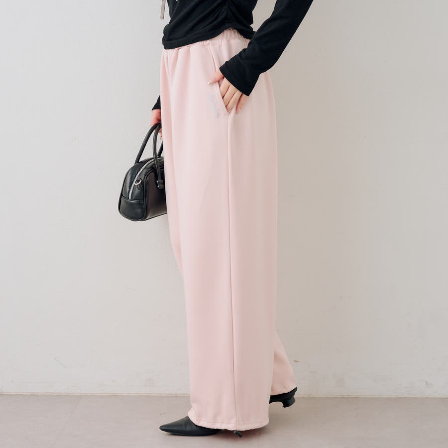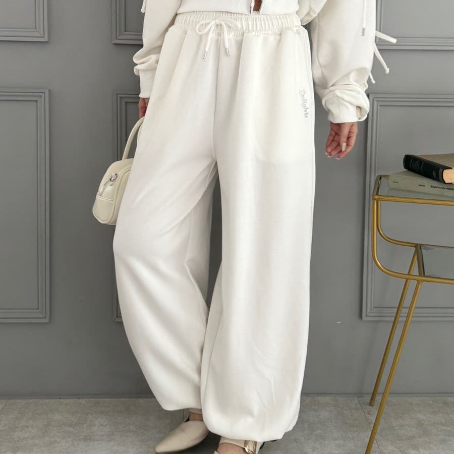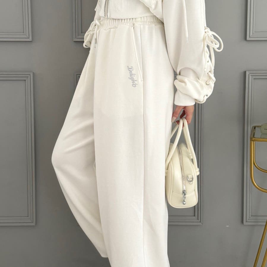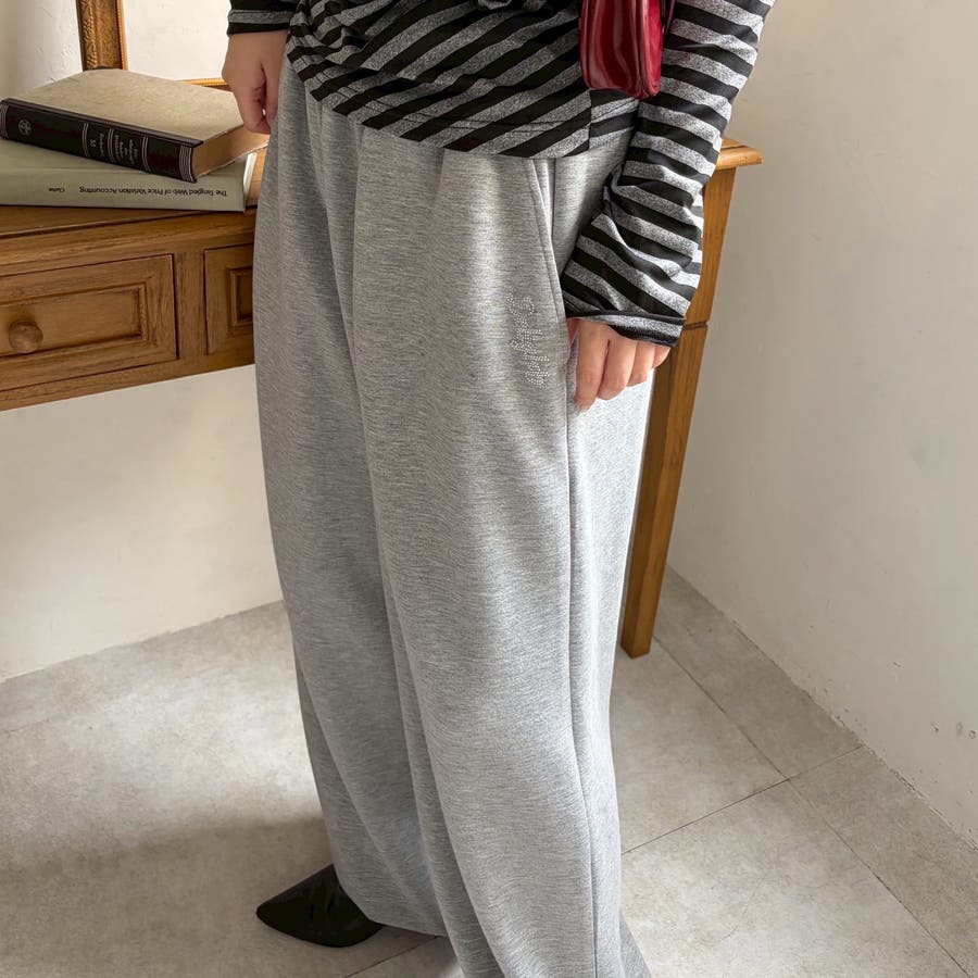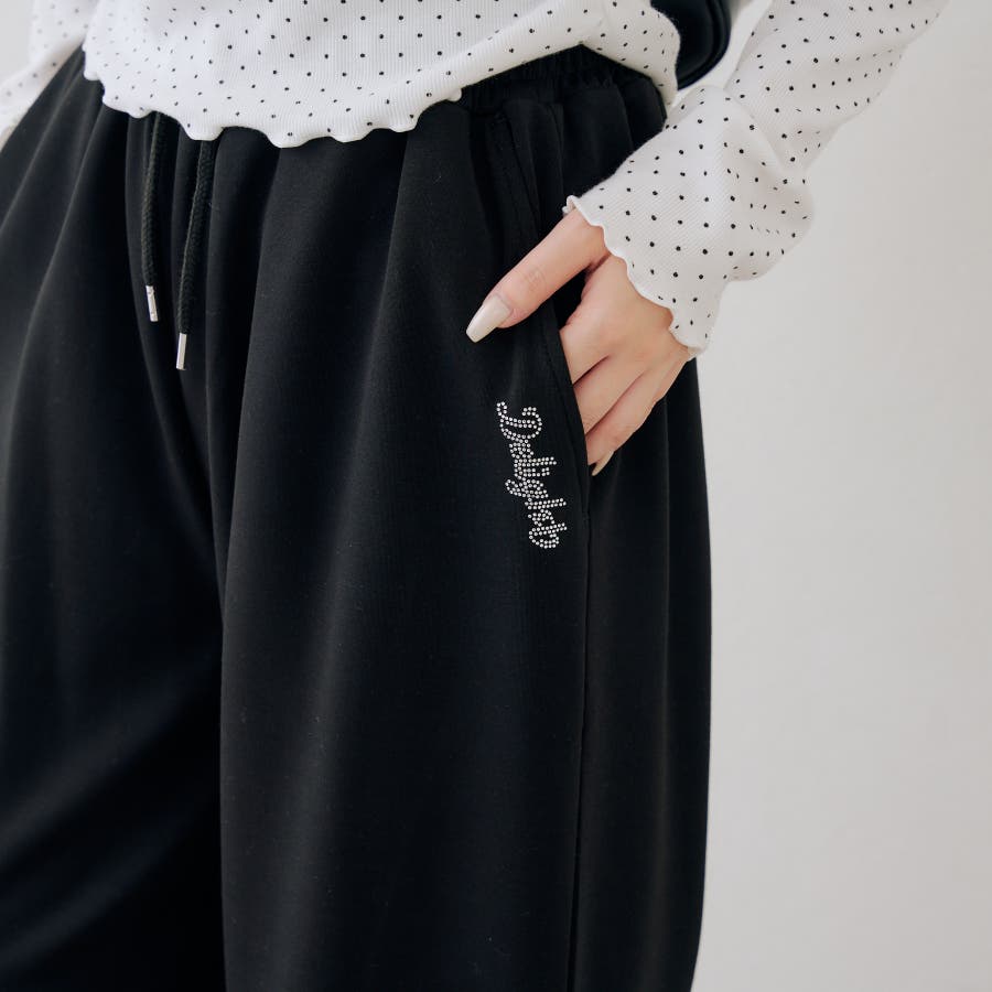 ・ワンポイントのラインストーンがきらめくスウェットパンツ