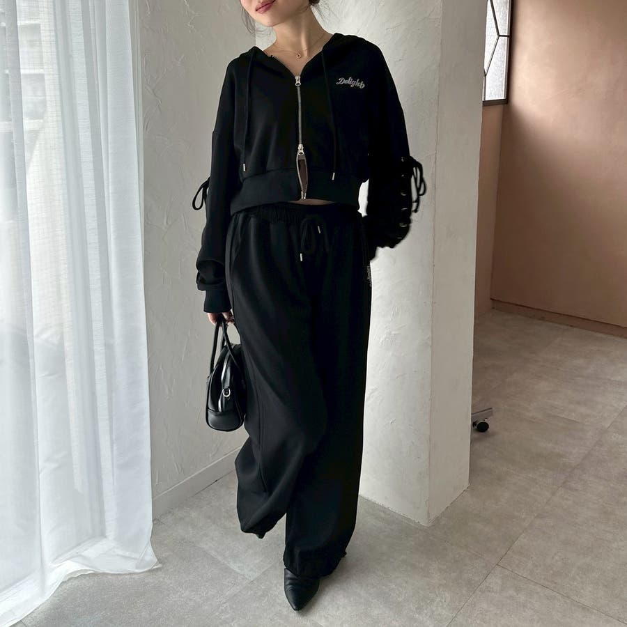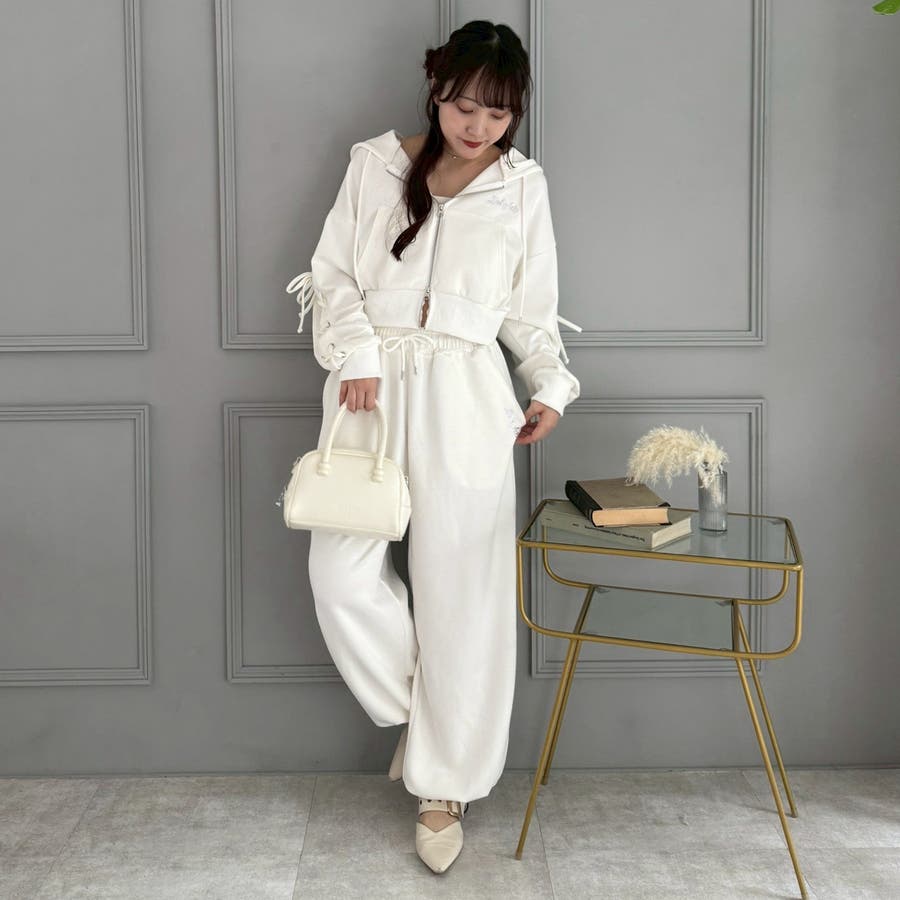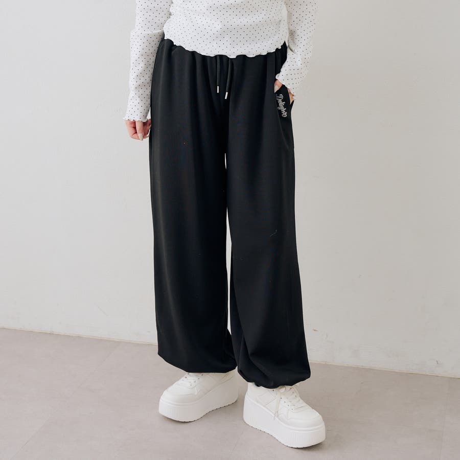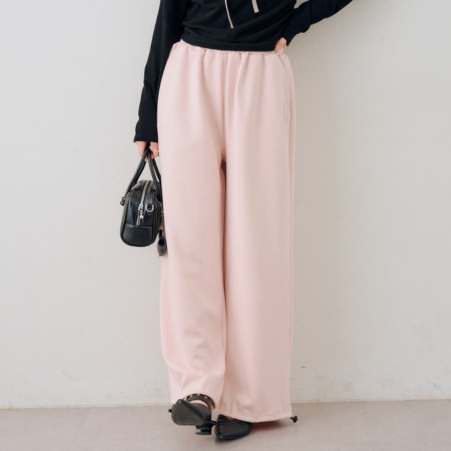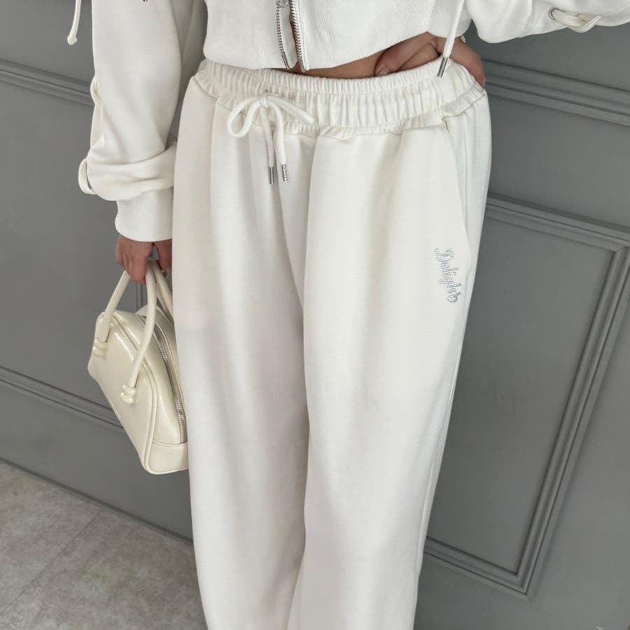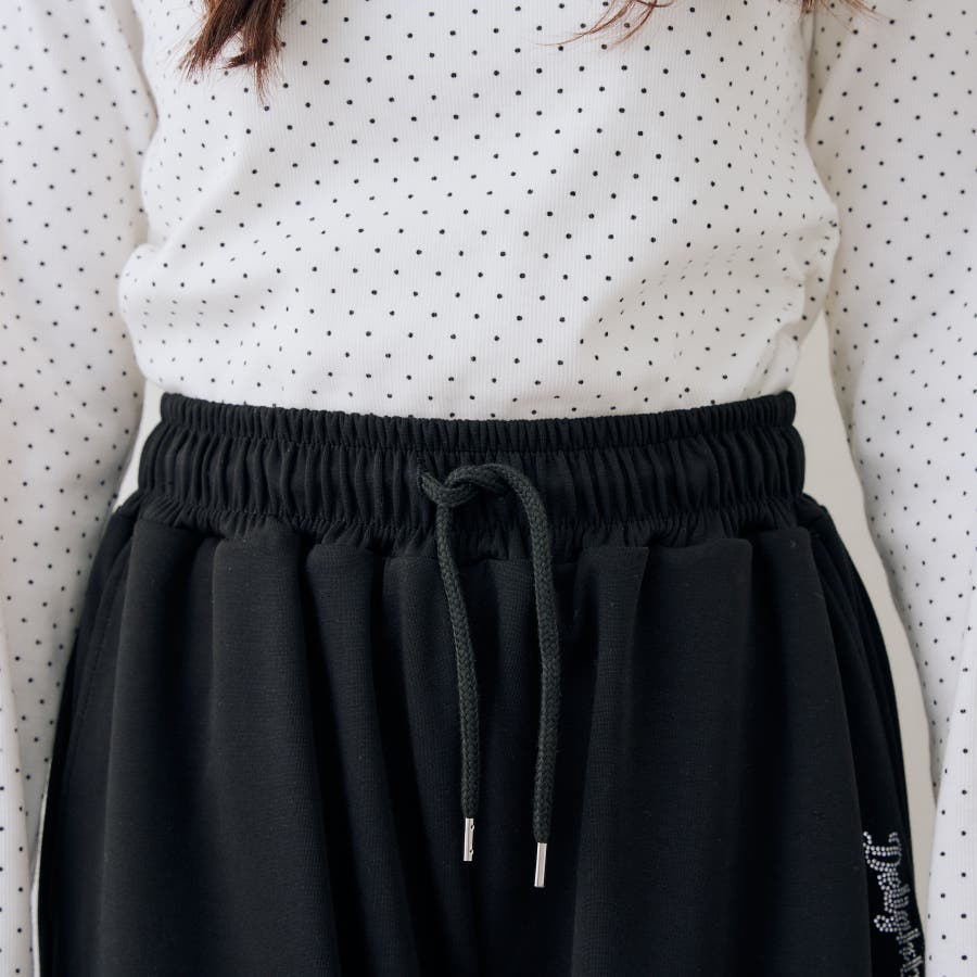 ・ワンポイントのラインストーンがきらめくスウェットパンツ