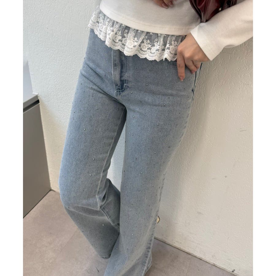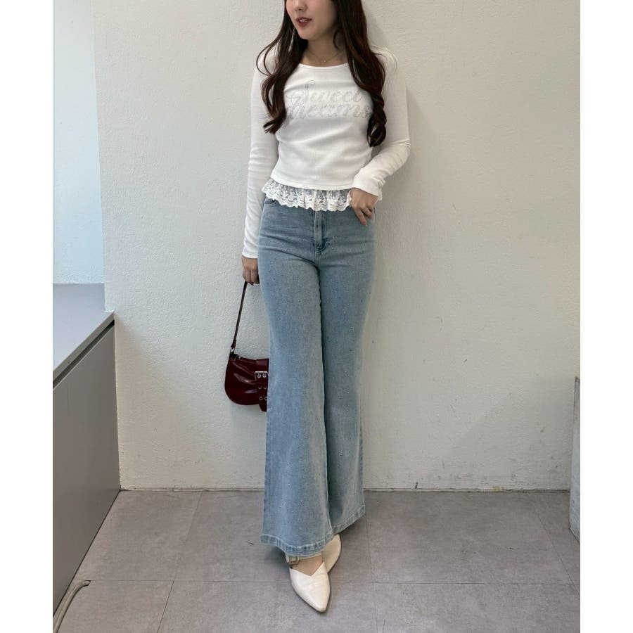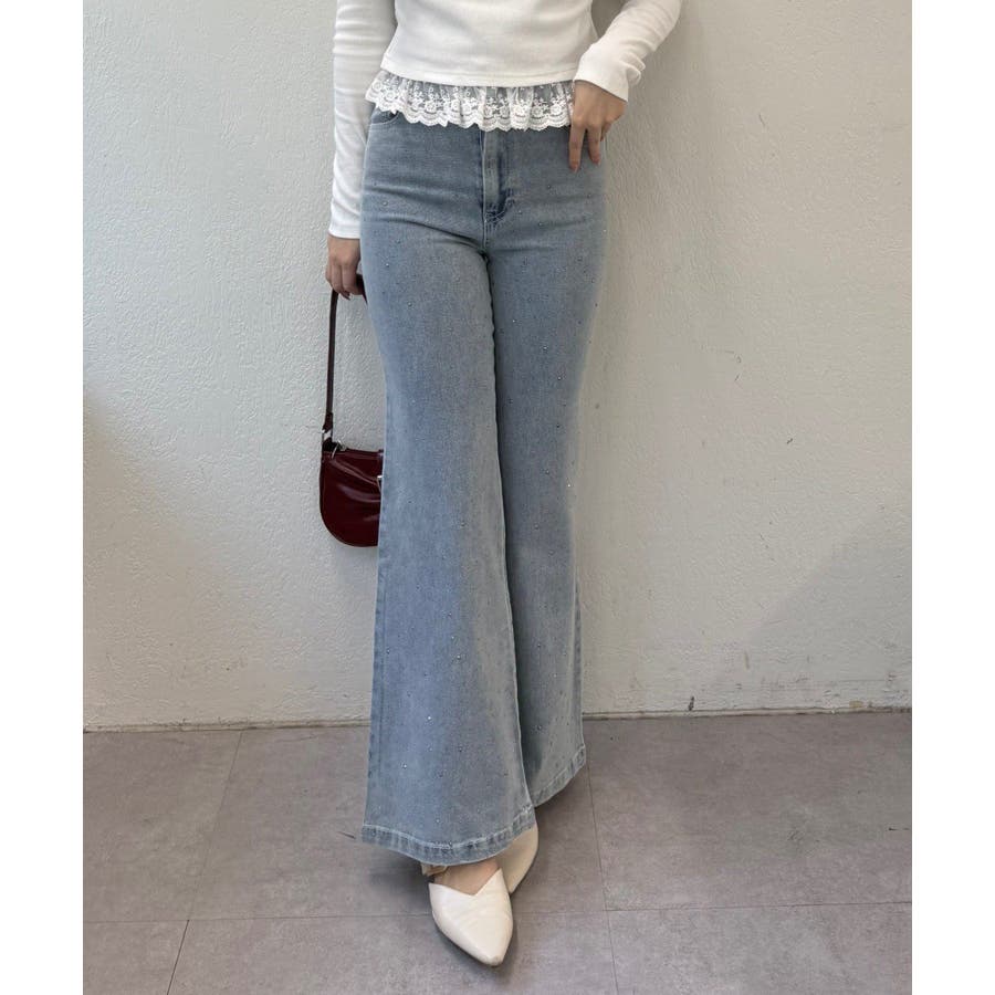 RMAF Remindmeandforever olivedesolive niceclaup 春 春服 春物 夏 夏服 夏物 韓国 韓国系 韓国風 韓国ファッション 10代 20代 30代 大人 人気 大人かわいい 大人カジュアル トレンド 新作 プチプラ パンツ ズボン デニム デニムパンツ ストーンデニム フレアデニム フレアパンツ 0861020080