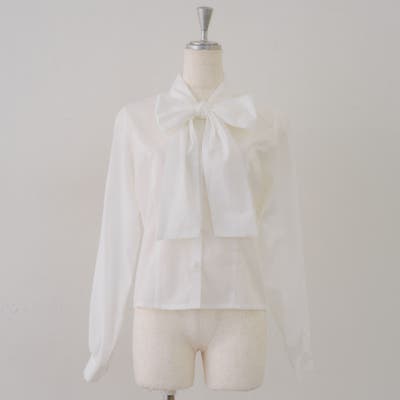 ・デイリーに着まわしやすいボウタイブラウス
