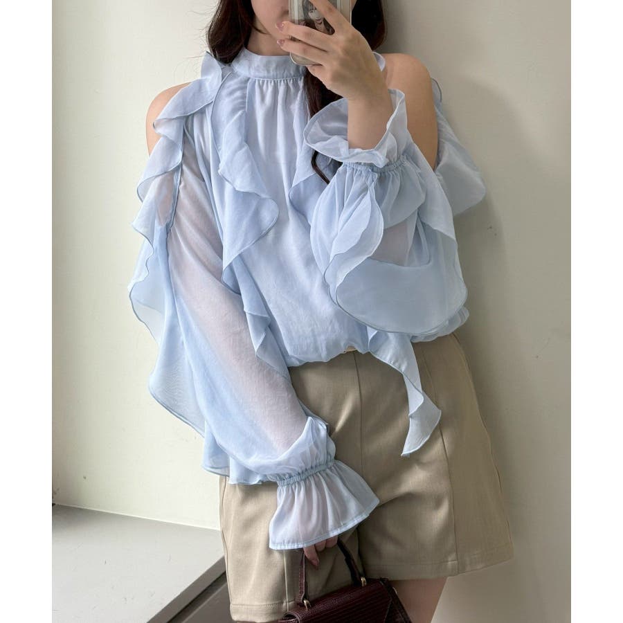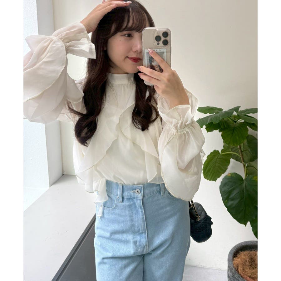 ・ボリューミーなフリルシルエットが目を惹くブラウス。