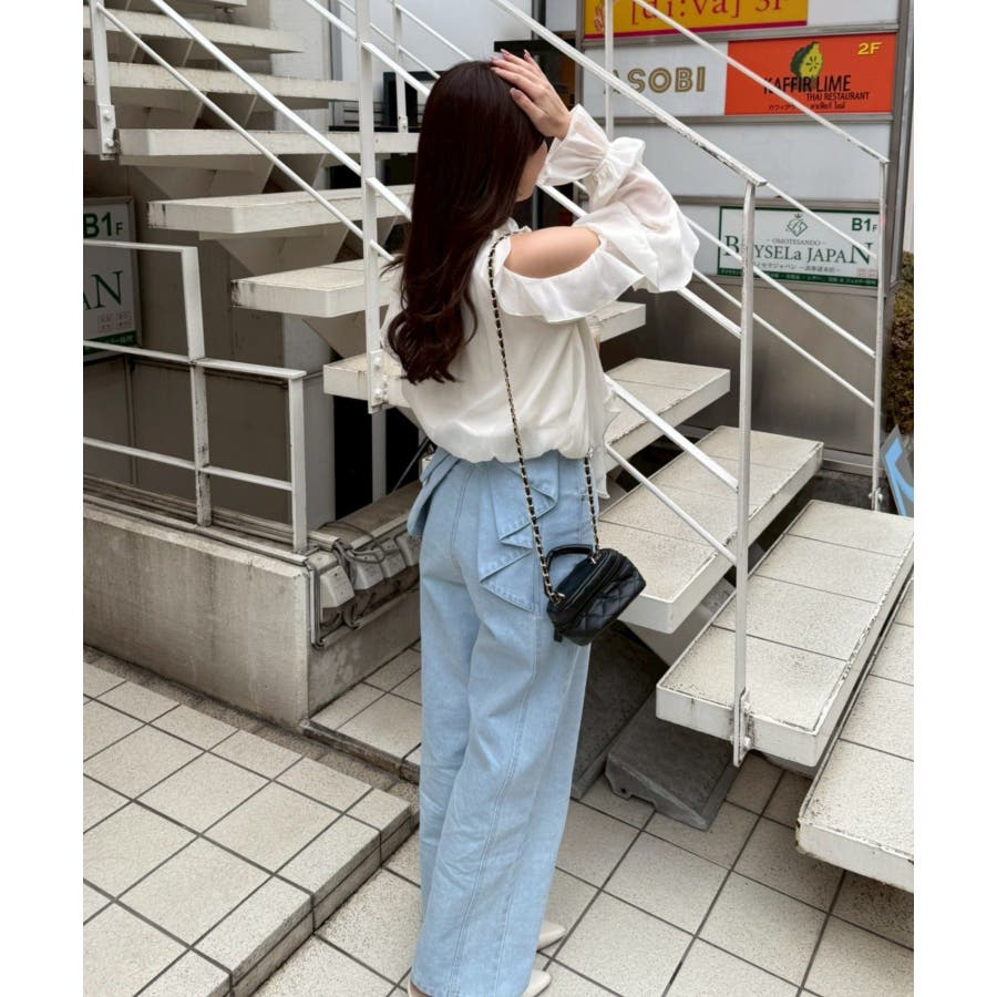 ・トップス自体に存在感があるため、ボトムはミニボトムやデニムなど、すっきりとしたアイテムと好相性。