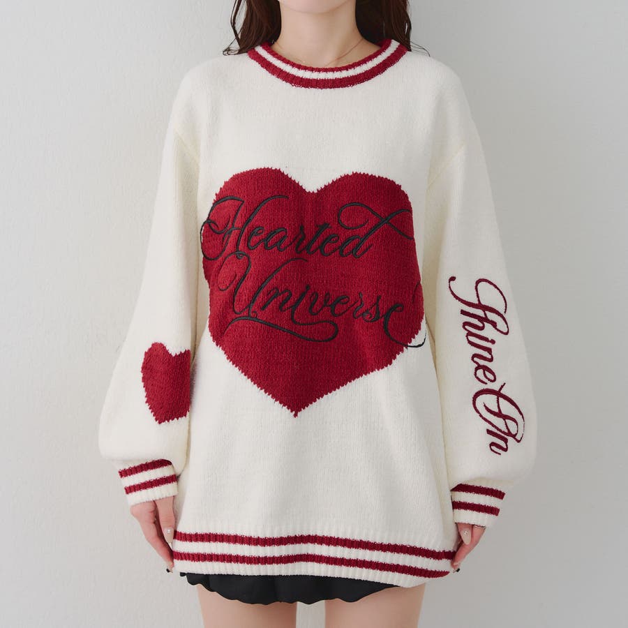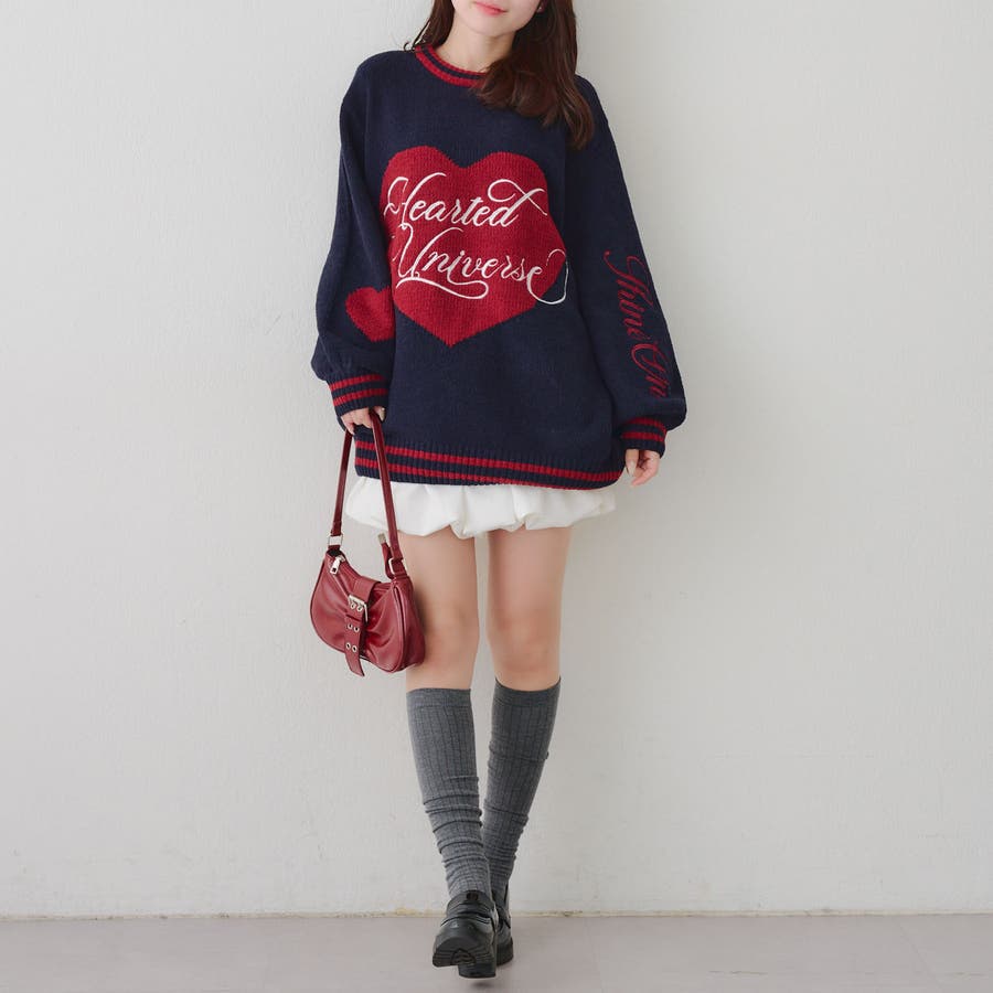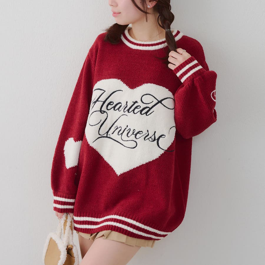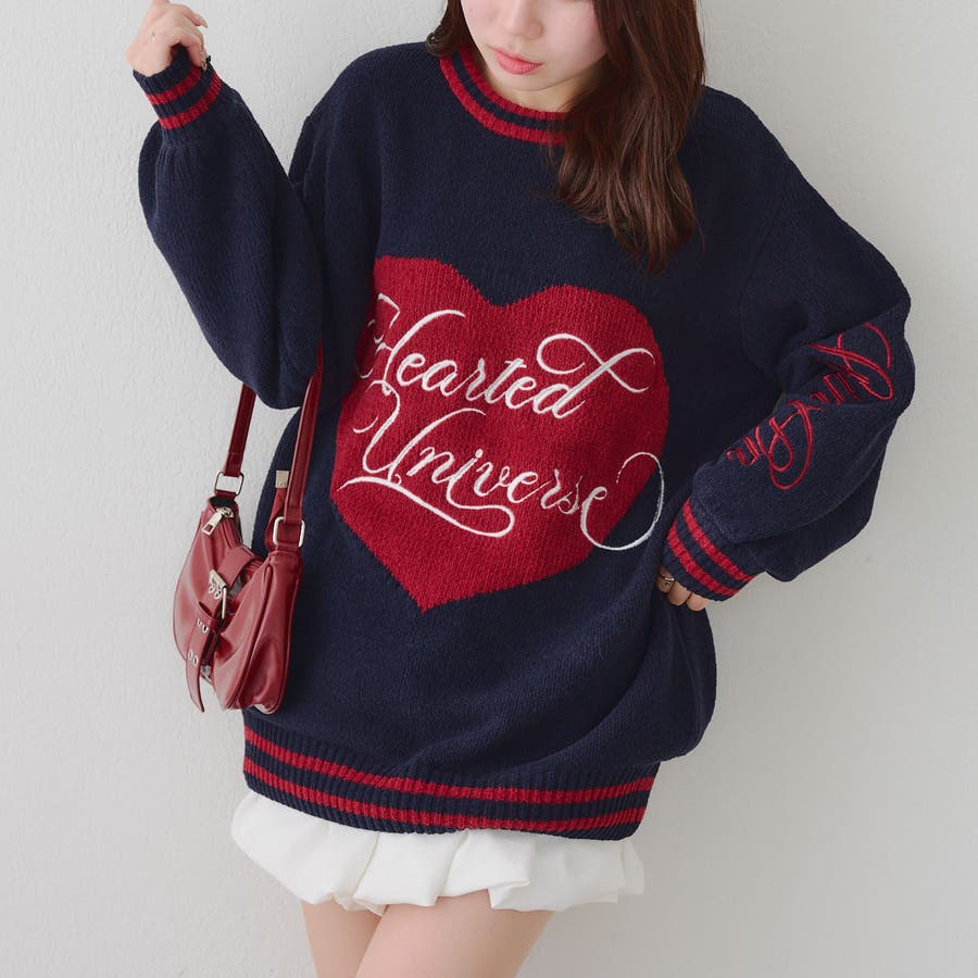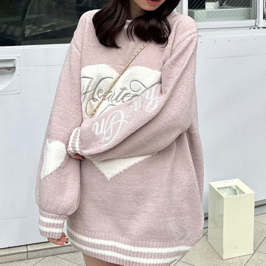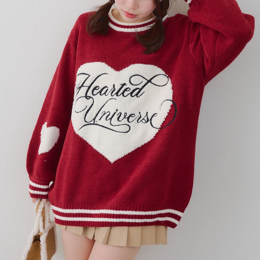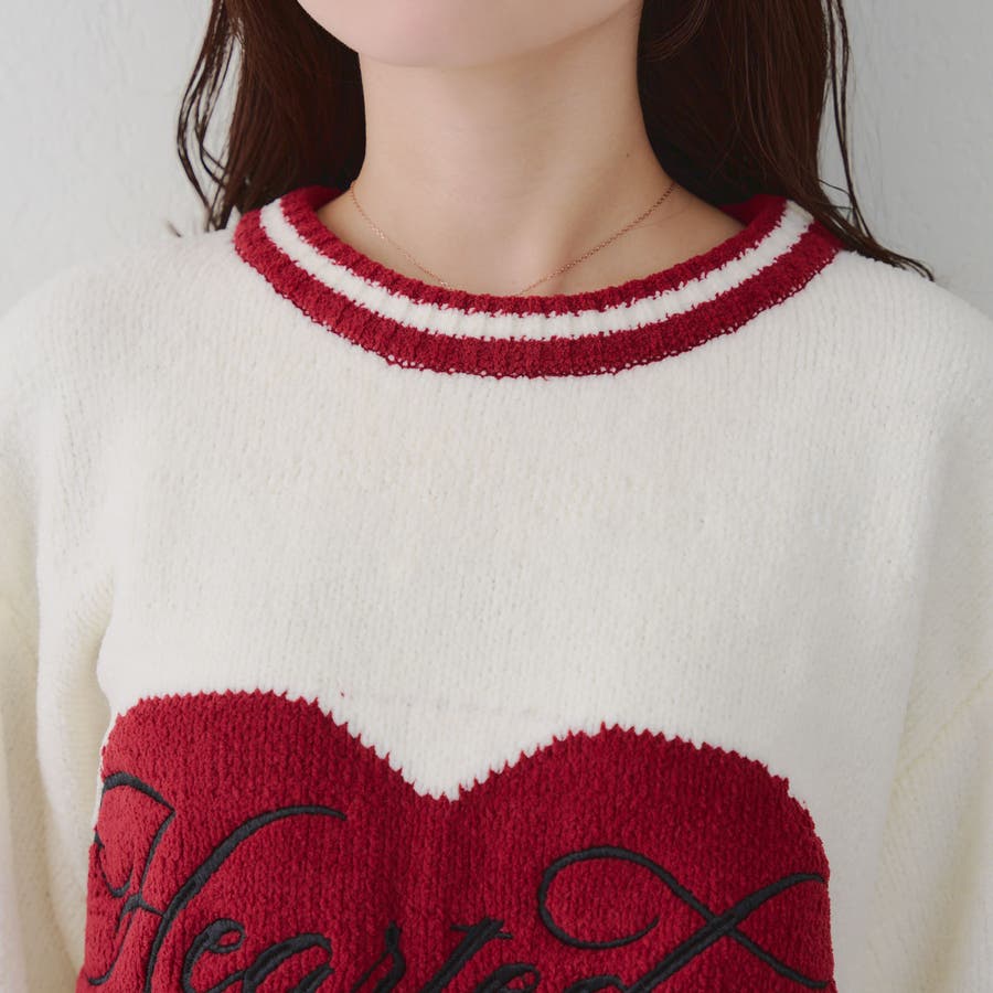 ・胸元に大きなハート柄がデザインされた主役級ニットプルオーバー