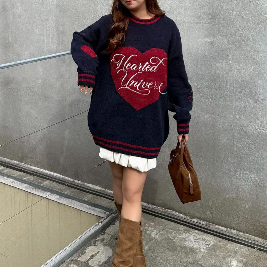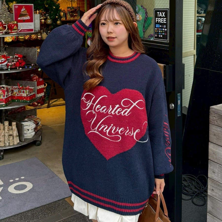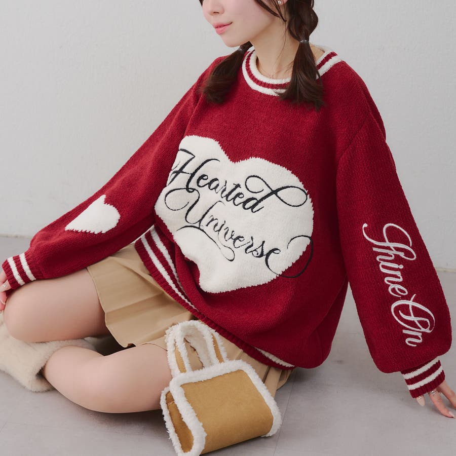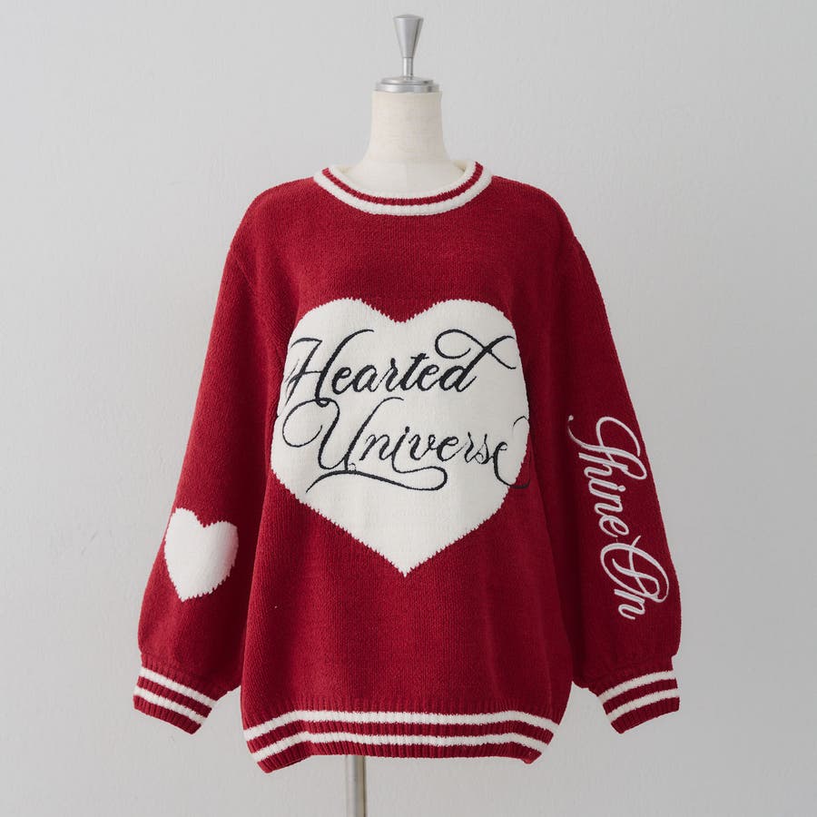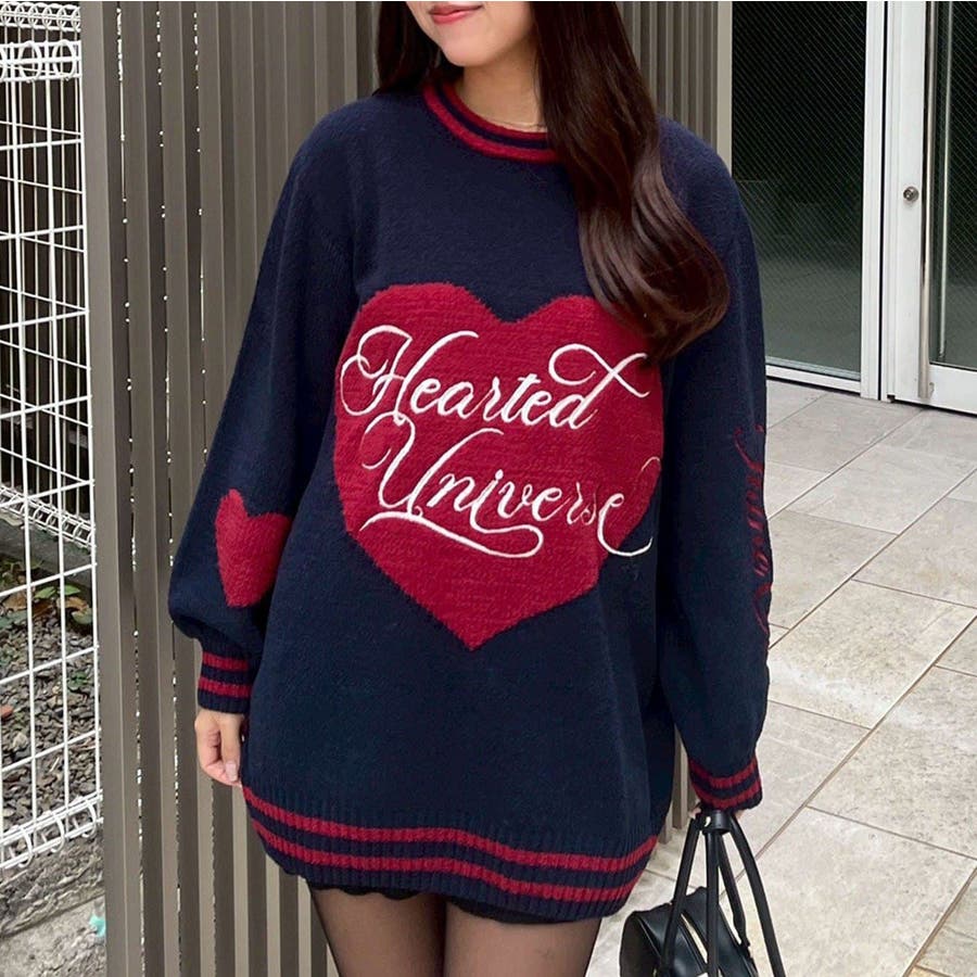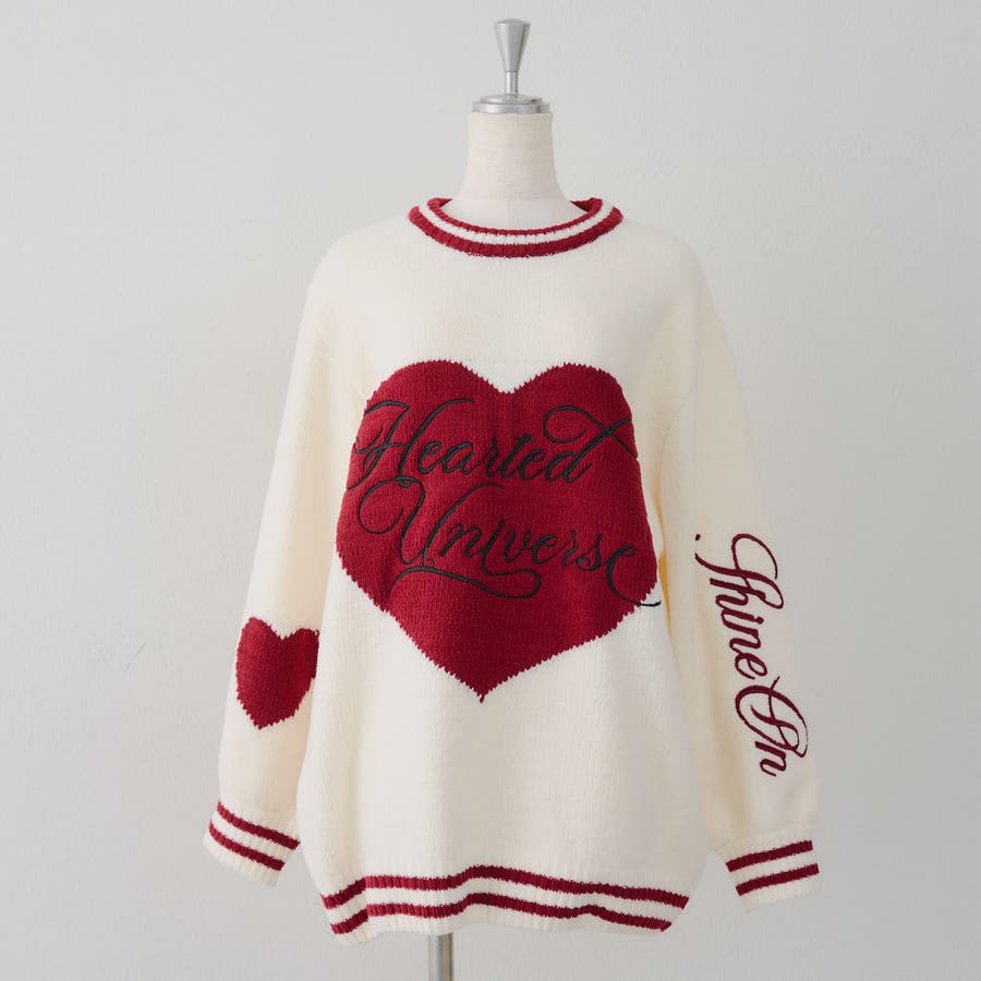 ・胸元に大きなハート柄がデザインされた主役級ニットプルオーバー