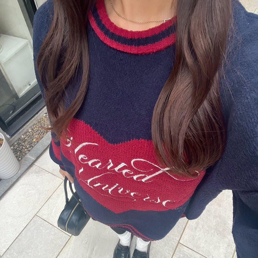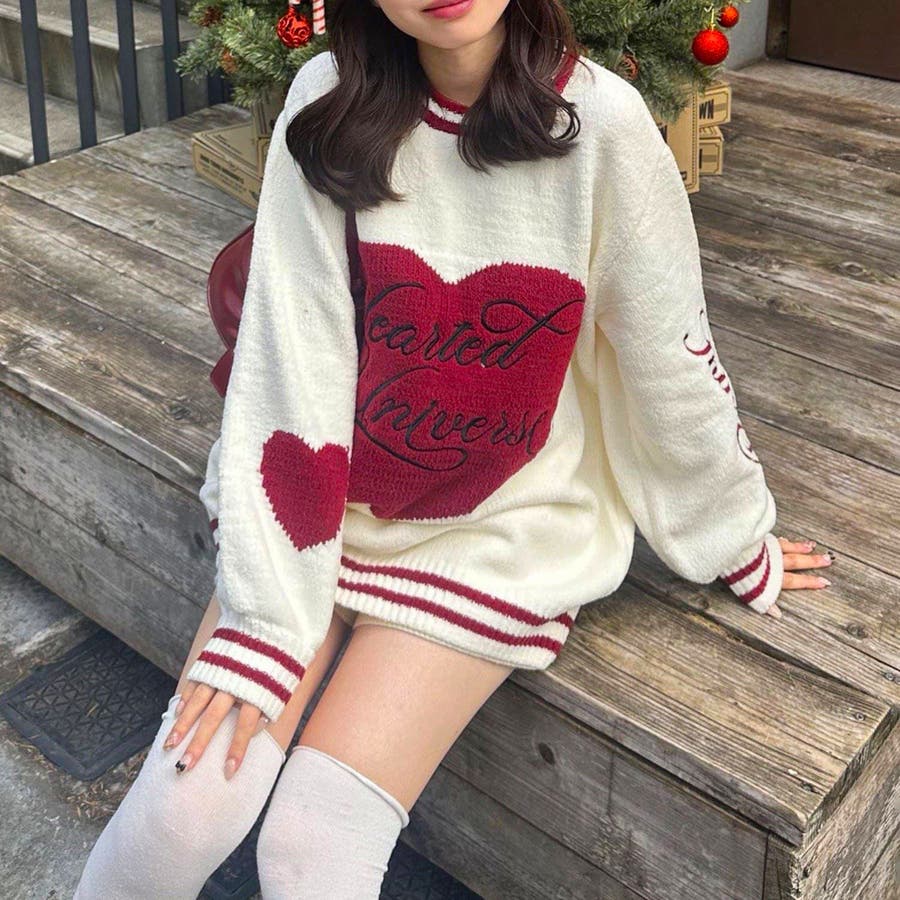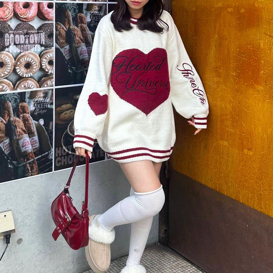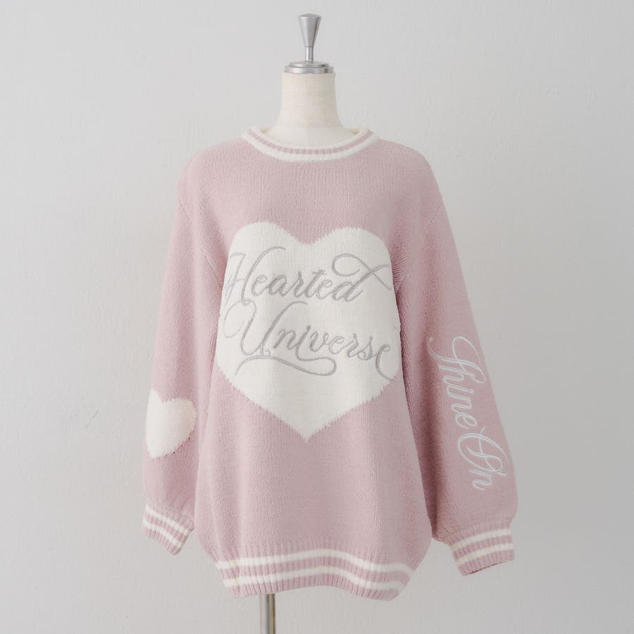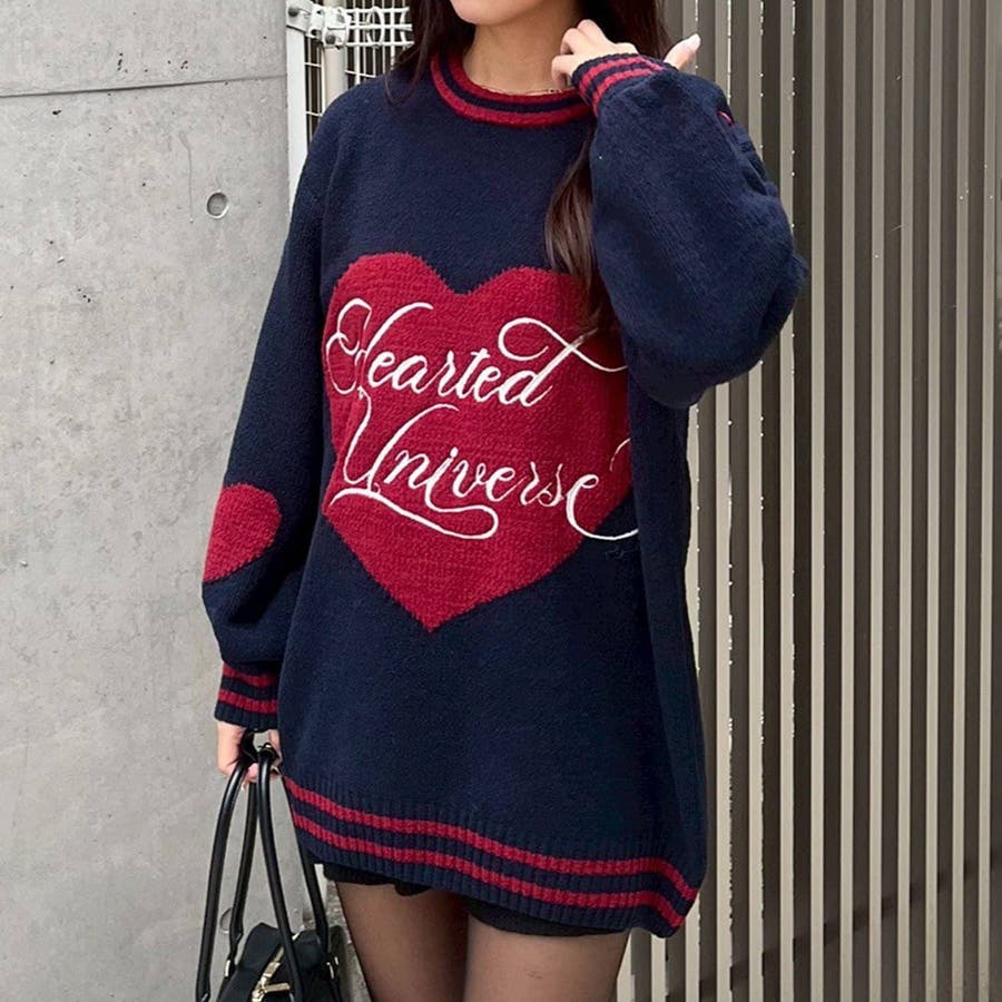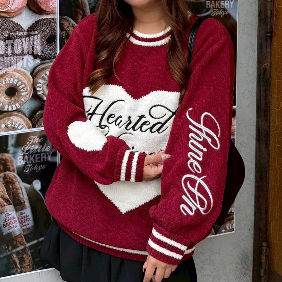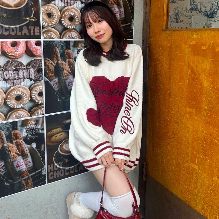 ・胸元に大きなハート柄がデザインされた主役級ニットプルオーバー