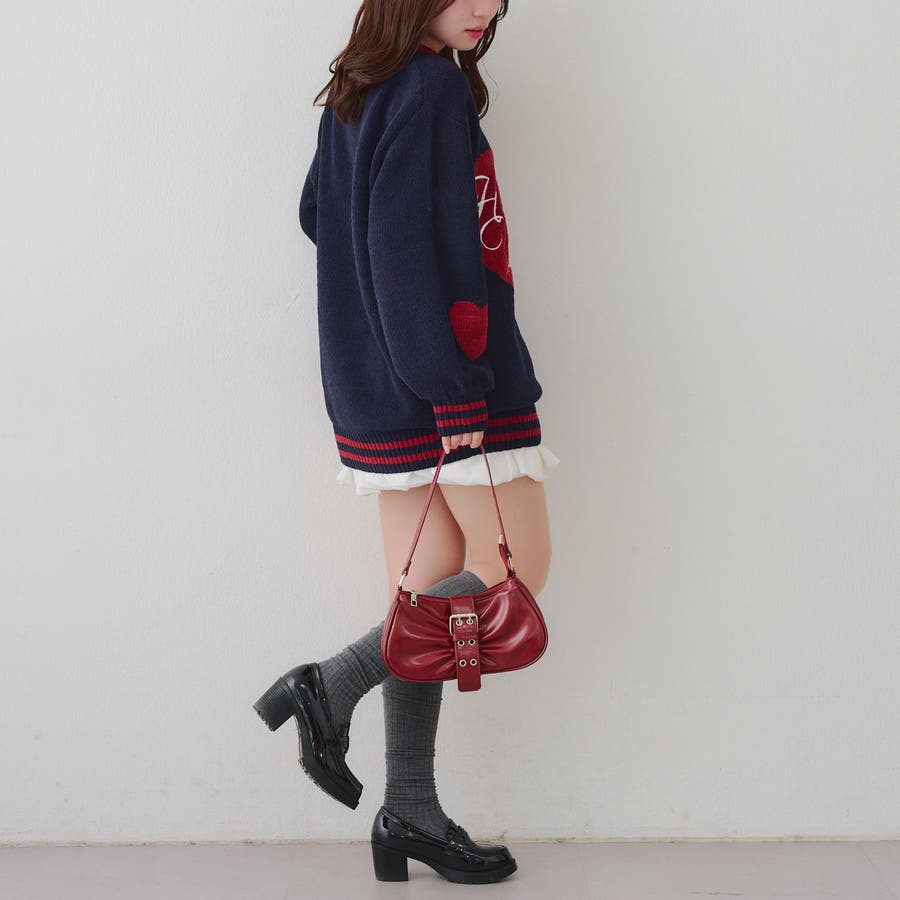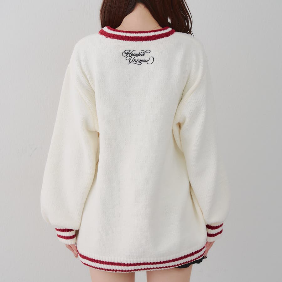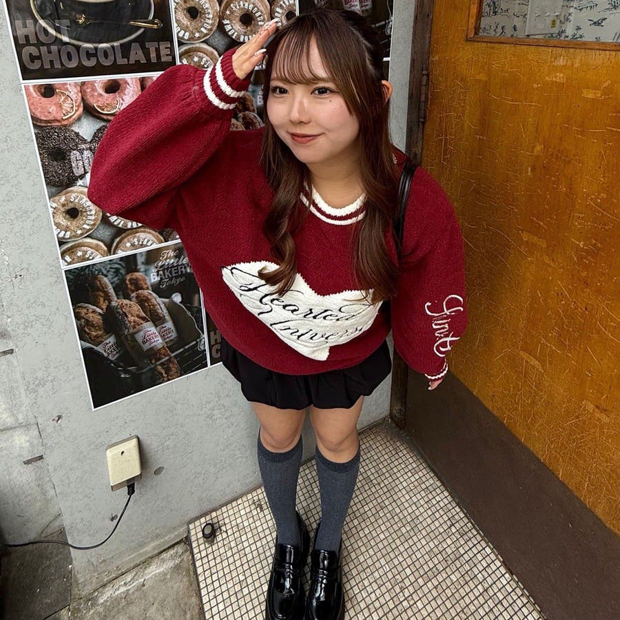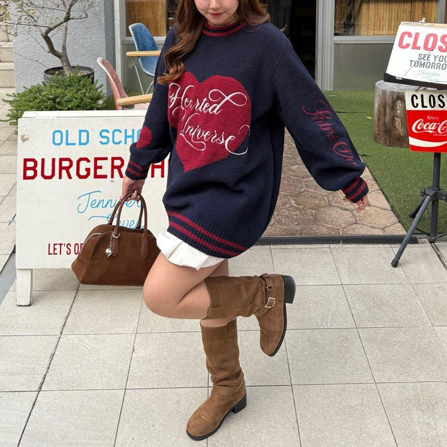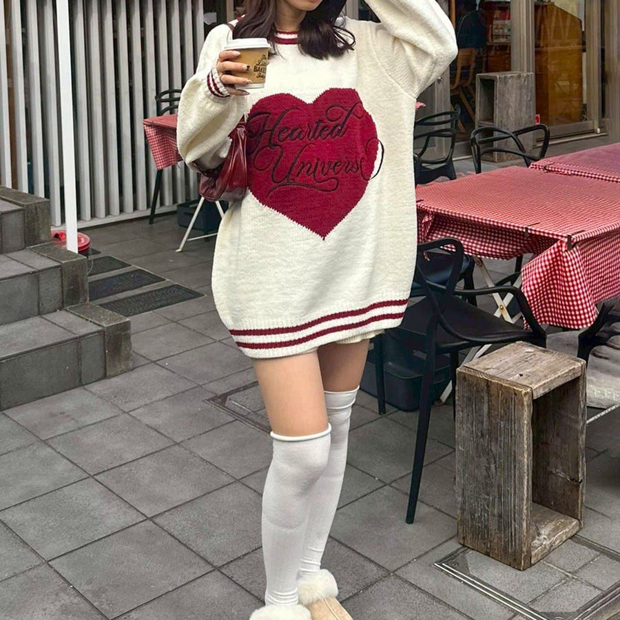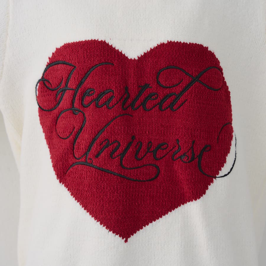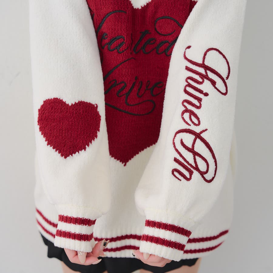 ・胸元に大きなハート柄がデザインされた主役級ニットプルオーバー