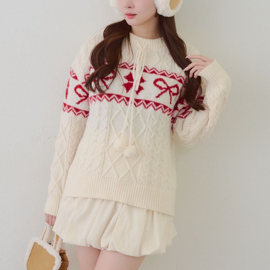RMAF Remindmeandforever olivedesolive niceclaup 秋 秋服 秋物 冬 冬服 冬物 韓国 韓国系 韓国風 韓国ファッション 10代 20代 30代 大人 人気 大人かわいい 大人カジュアル トレンド 新作 プチプラ ゆったり ニット ニットトップス カウチンニット カウチン ポンポンニット ポンポン リボン リボンニット ホリデー クリスマス 0861050040