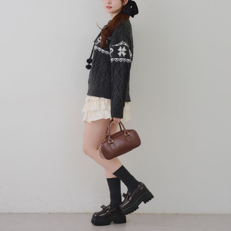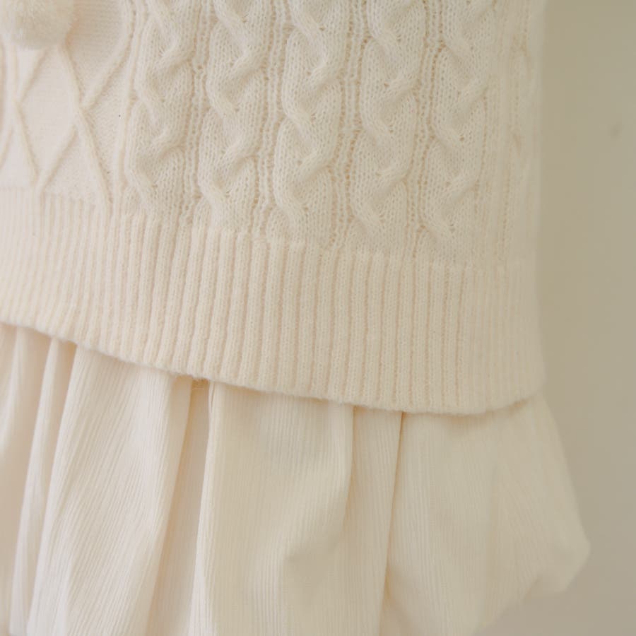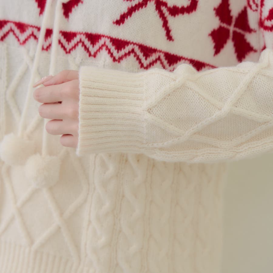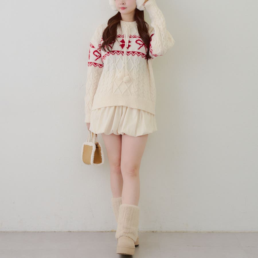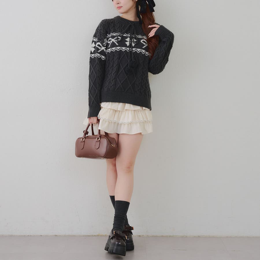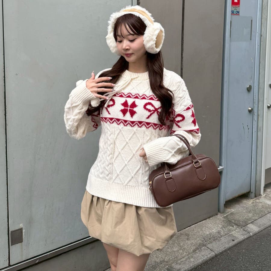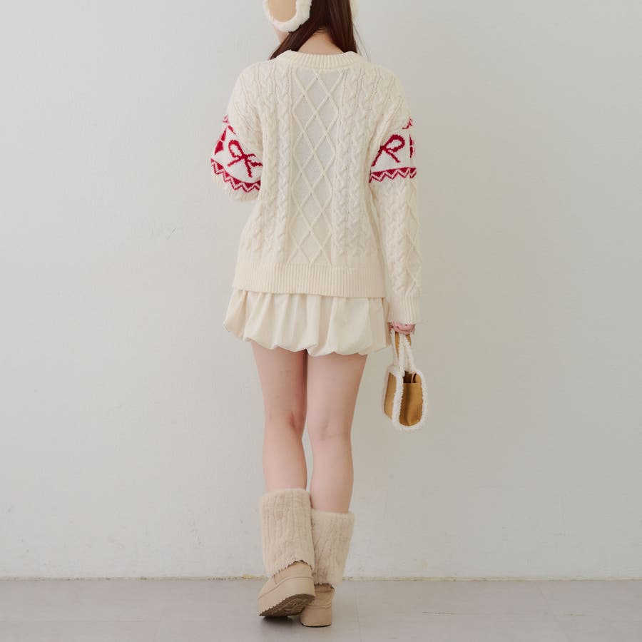 ・ケーブル編みとリボン柄が主役級のニットプルオーバー