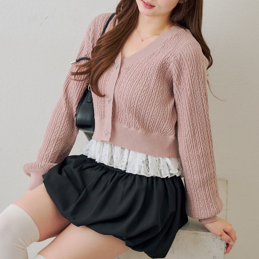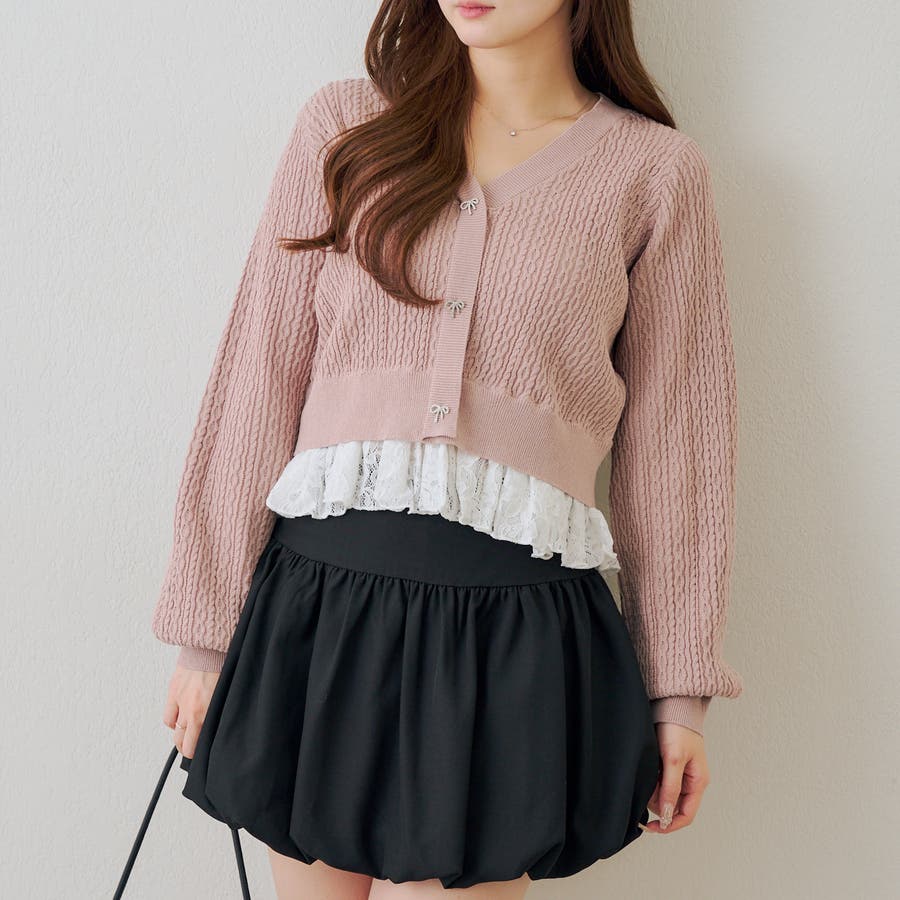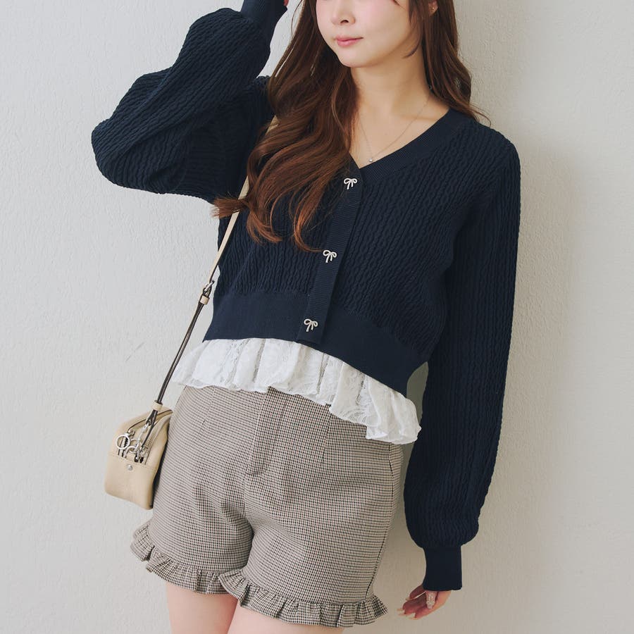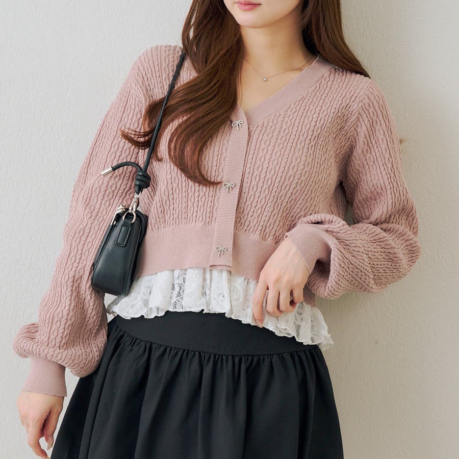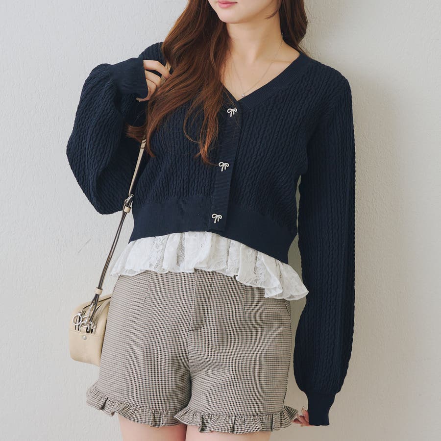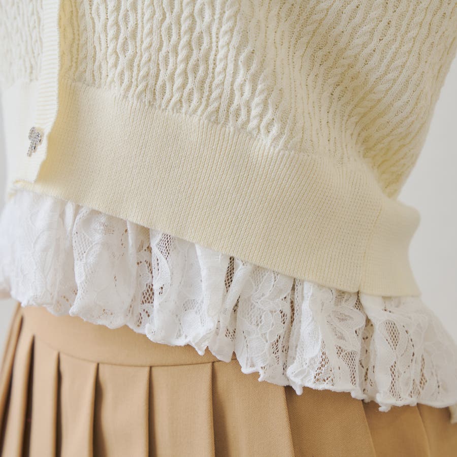 ・レースドッキングでガーリーな印象になるショート丈カーディガン