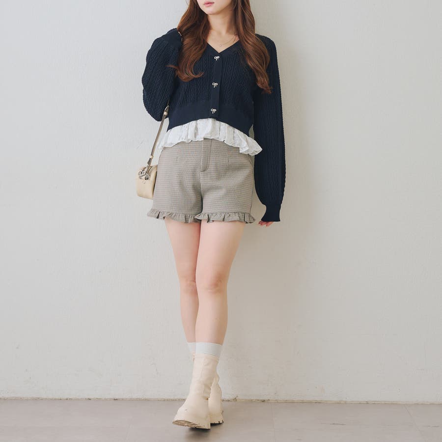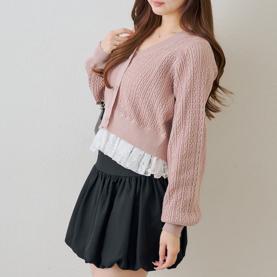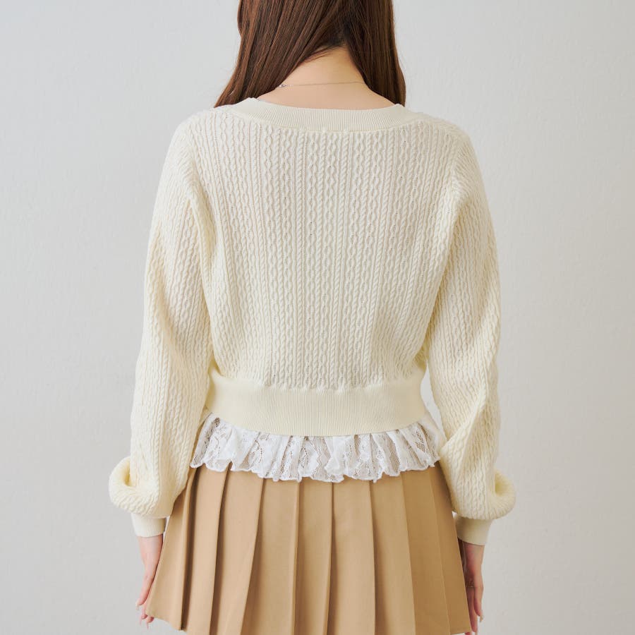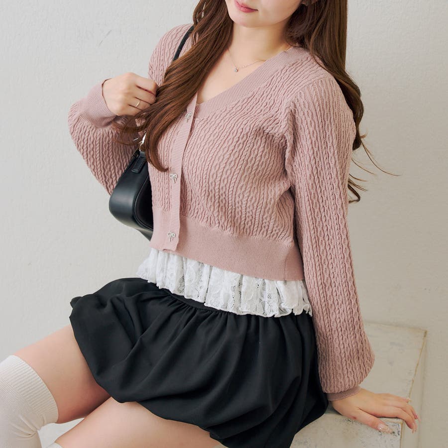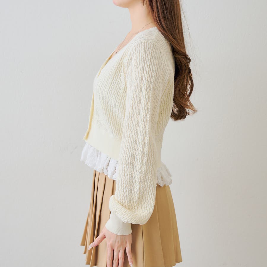 ・レースドッキングでガーリーな印象になるショート丈カーディガン