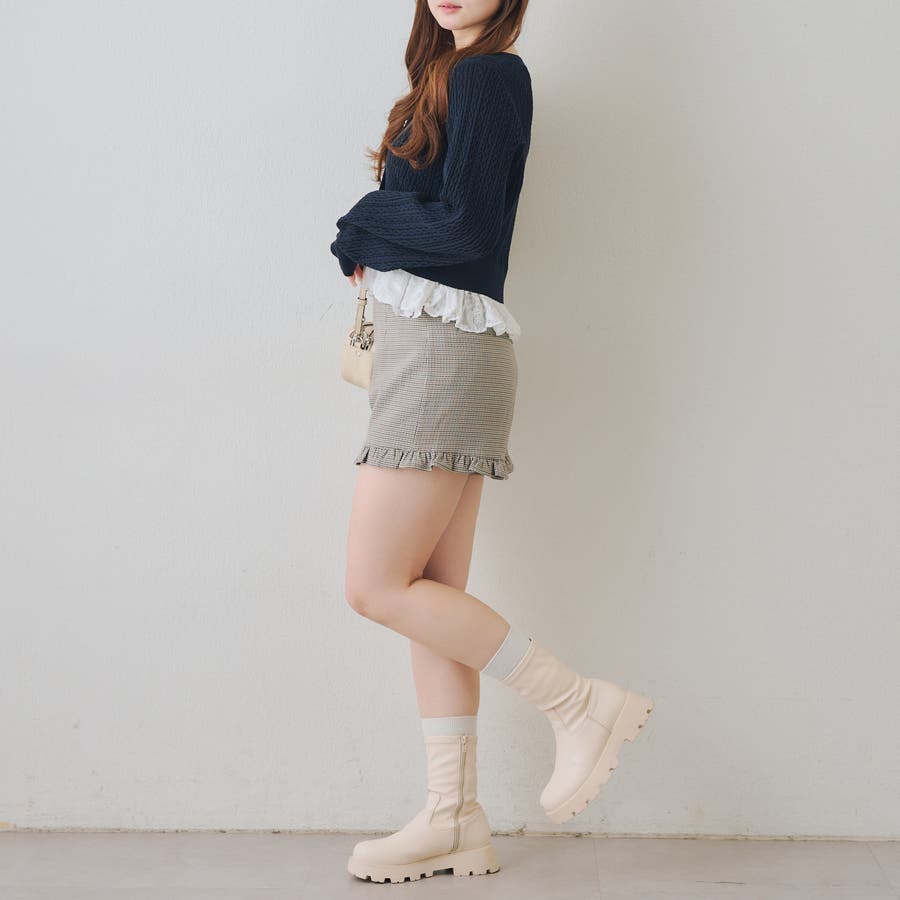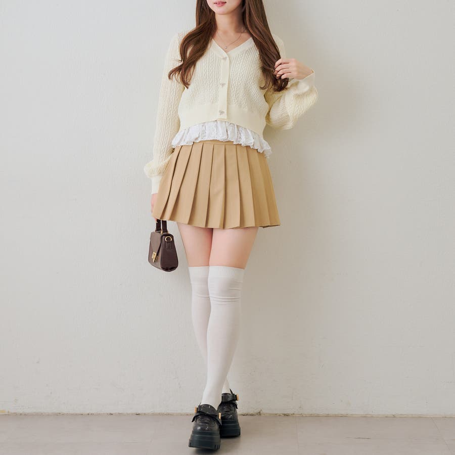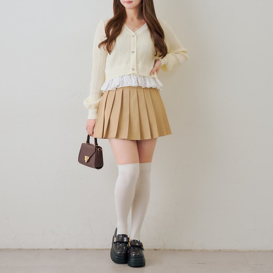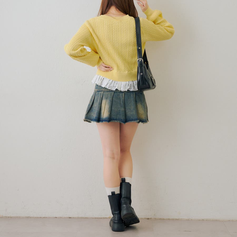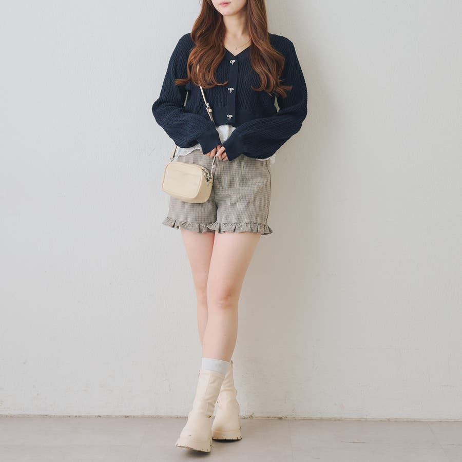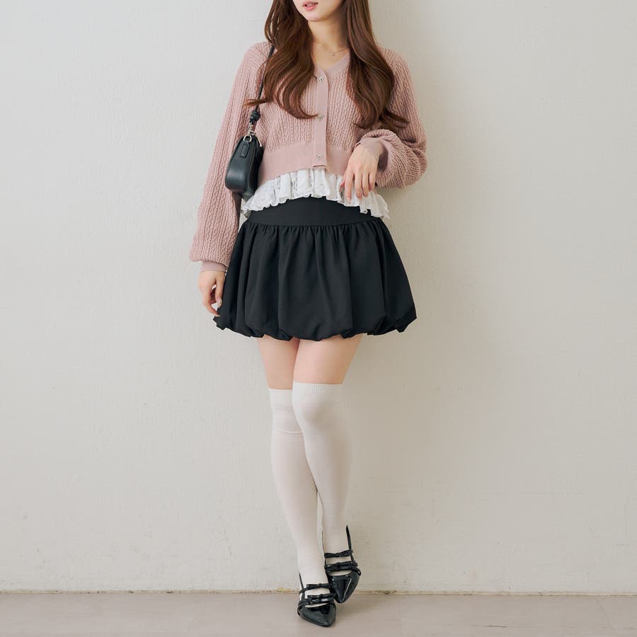 ・レースドッキングでガーリーな印象になるショート丈カーディガン