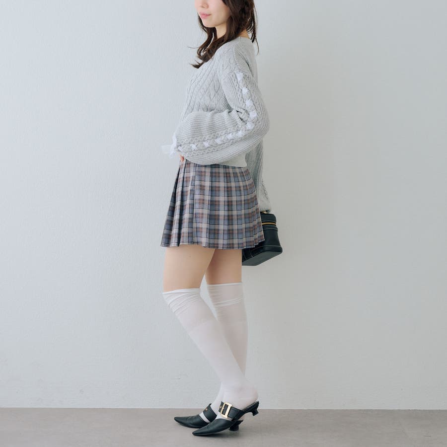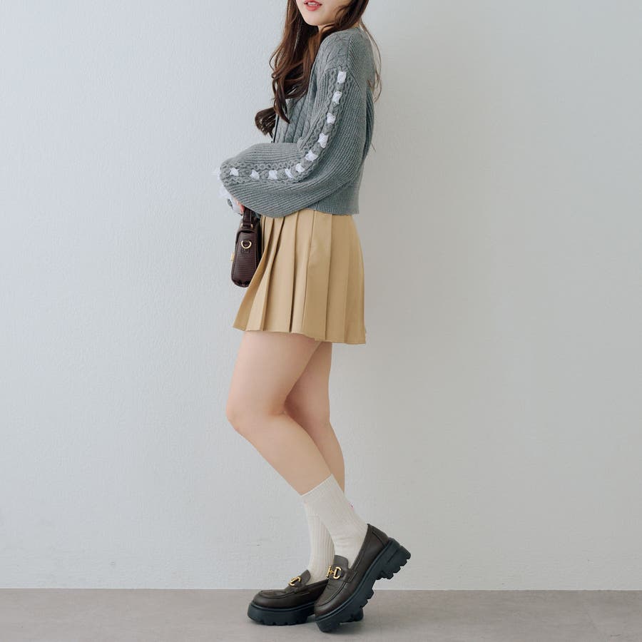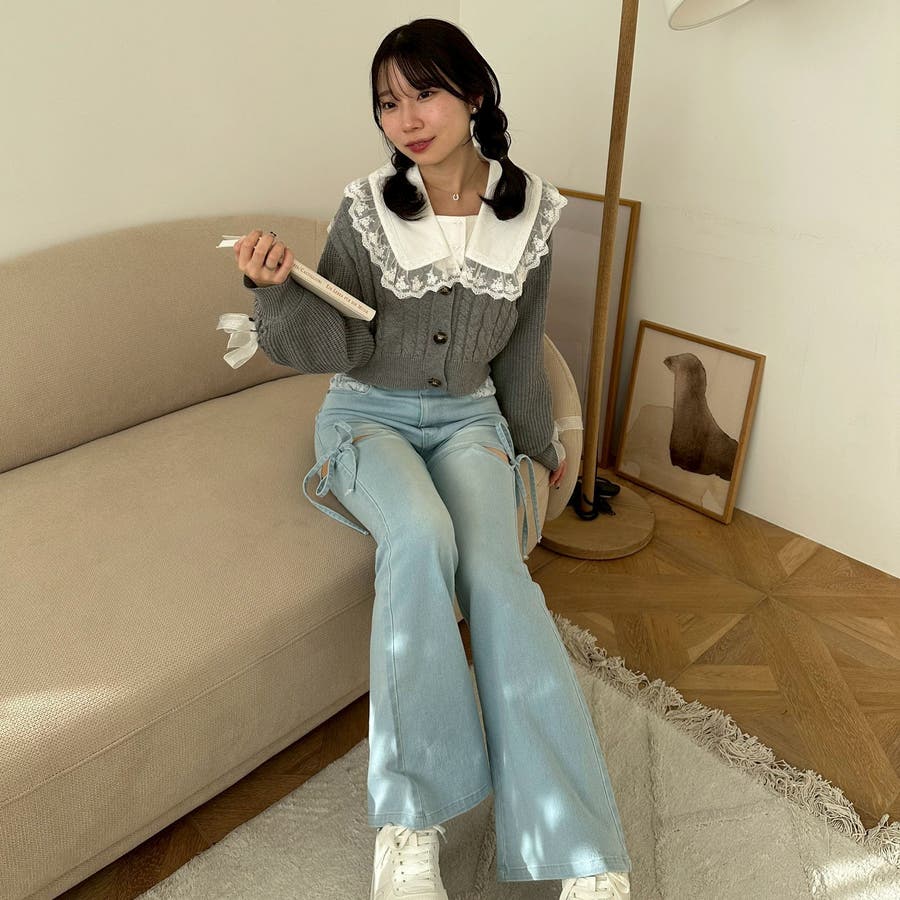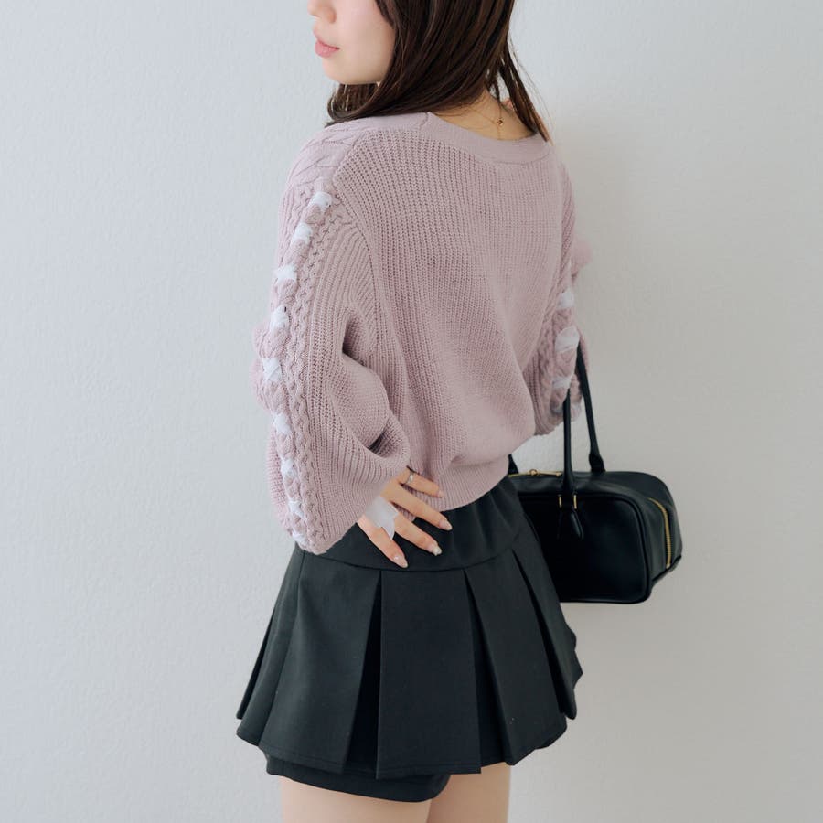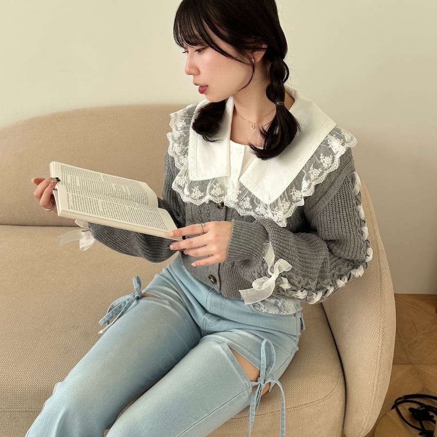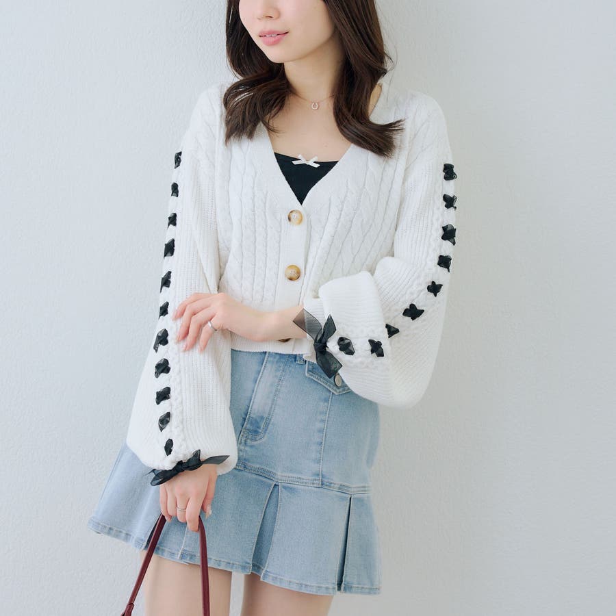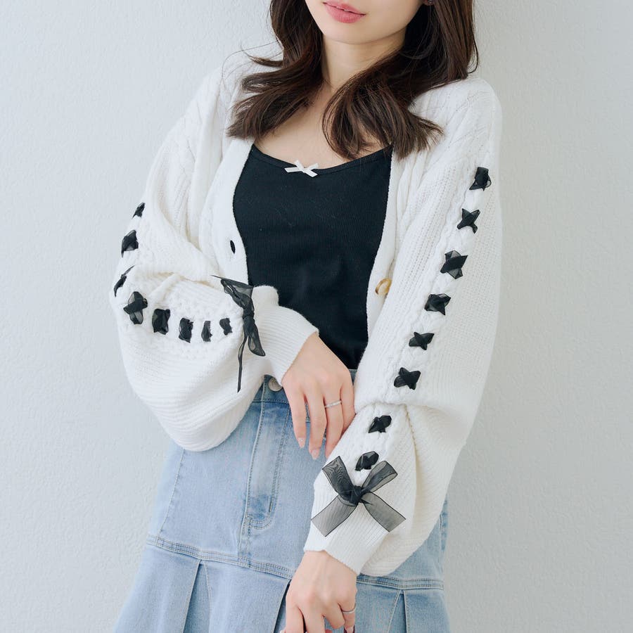 ・お袖のレースアップがポイントのカーディガン