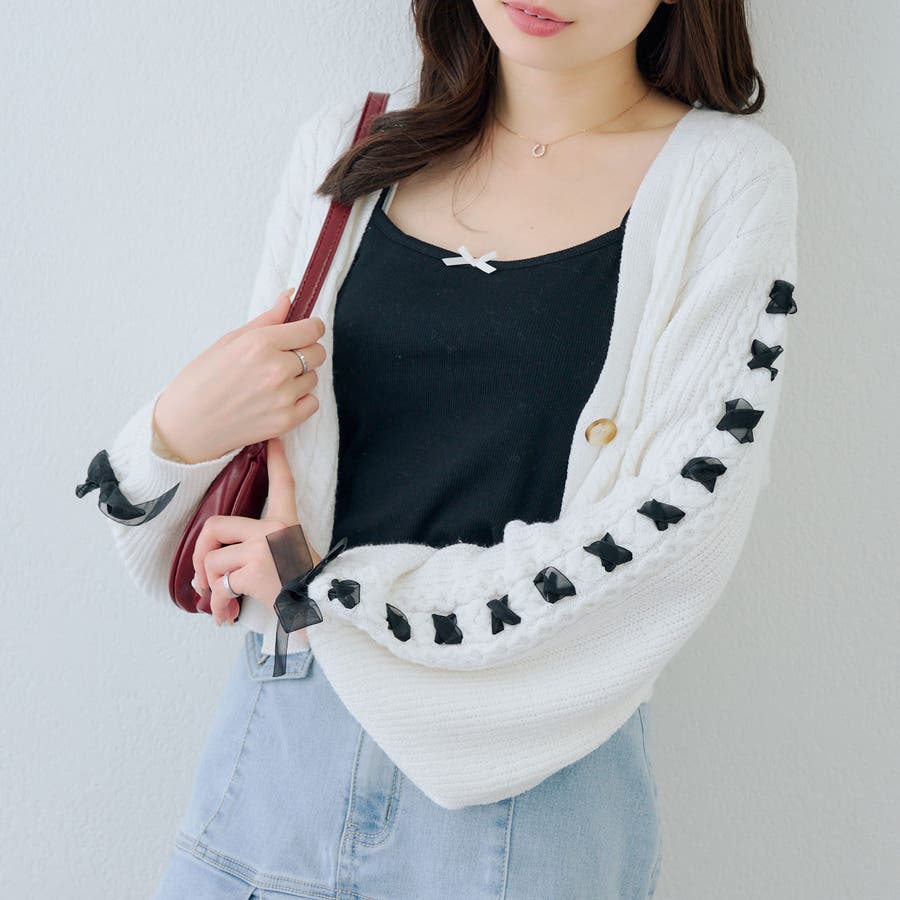 RMAF Remindmeandforever olivedesolive niceclaup 春 春服 春物 韓国 韓国系 韓国風 韓国ファッション 10代 20代 30代 大人 人気 大人かわいい 大人カジュアル トレンド 新作 プチプラ トップス カーディガン カーデ レースアップ レースアップカーディガン リボン 羽織り ショート丈カーディガン 0861050220