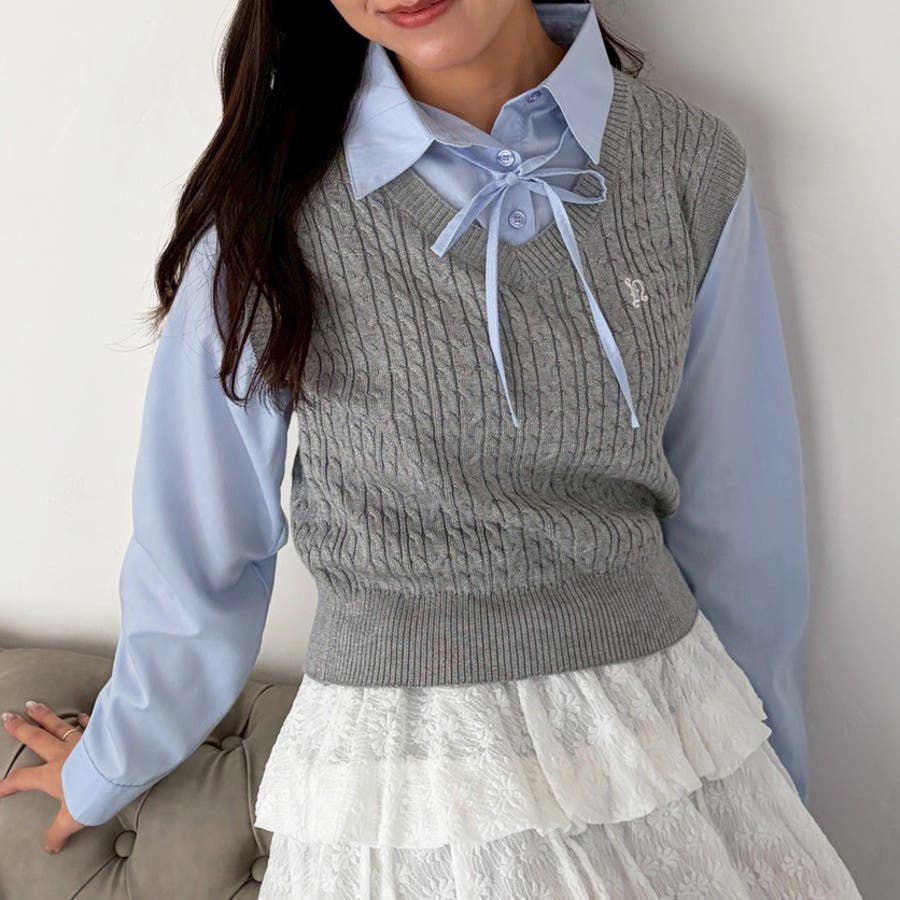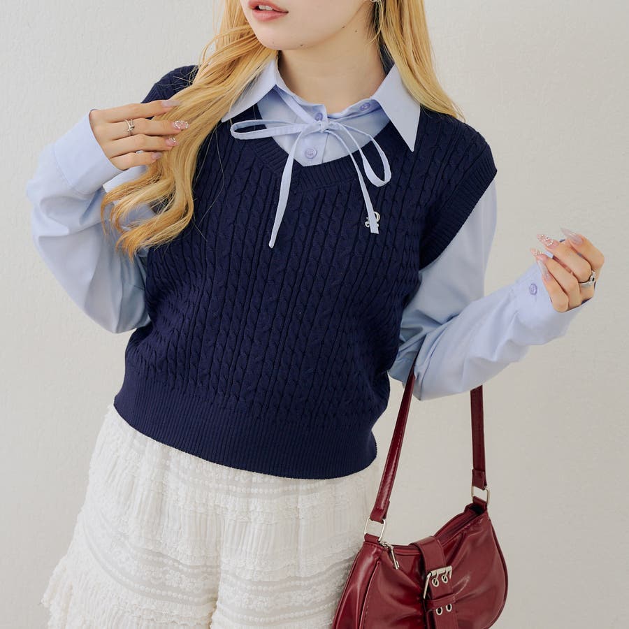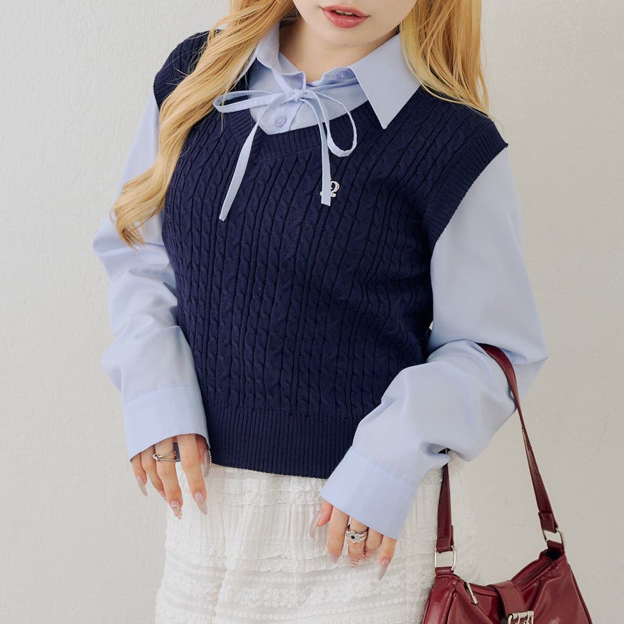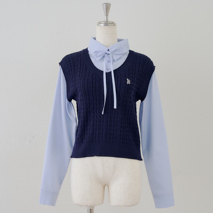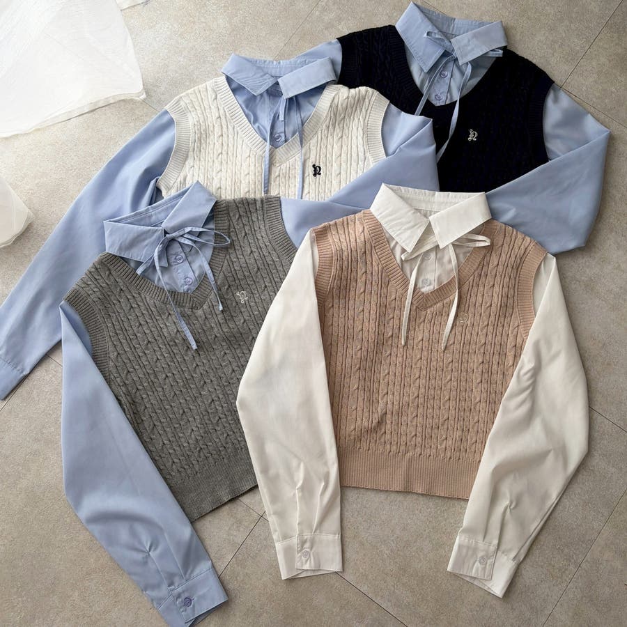 RMAF Remindmeandforever olivedesolive niceclaup 春 春服 春物 夏 夏服 夏物 韓国 韓国系 韓国風 韓国ファッション 10代 20代 30代 大人 人気 大人かわいい 大人カジュアル トレンド 新作 プチプラ トップス 長袖 ドッキング ニット シャツ リボン 0861050260