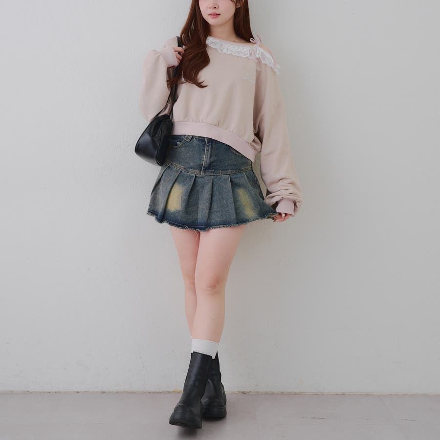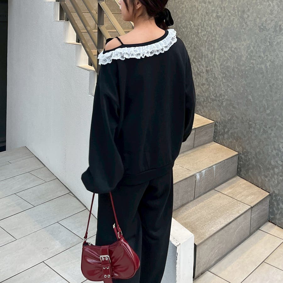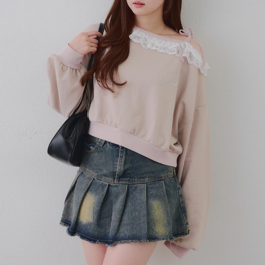 ・デコルテラインがきれいに見えるワンショルのデザインが、ストリートにもガーリーにも合わせるボトムスで印象が変わります。