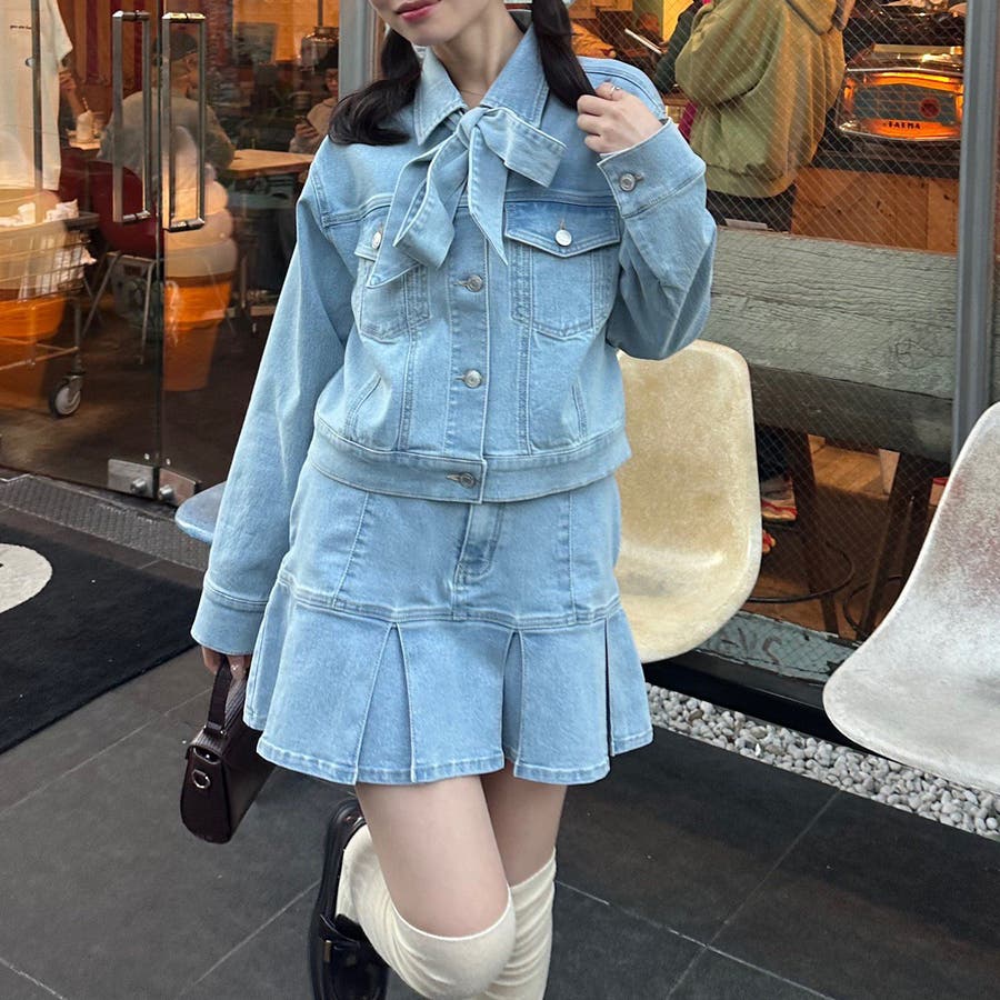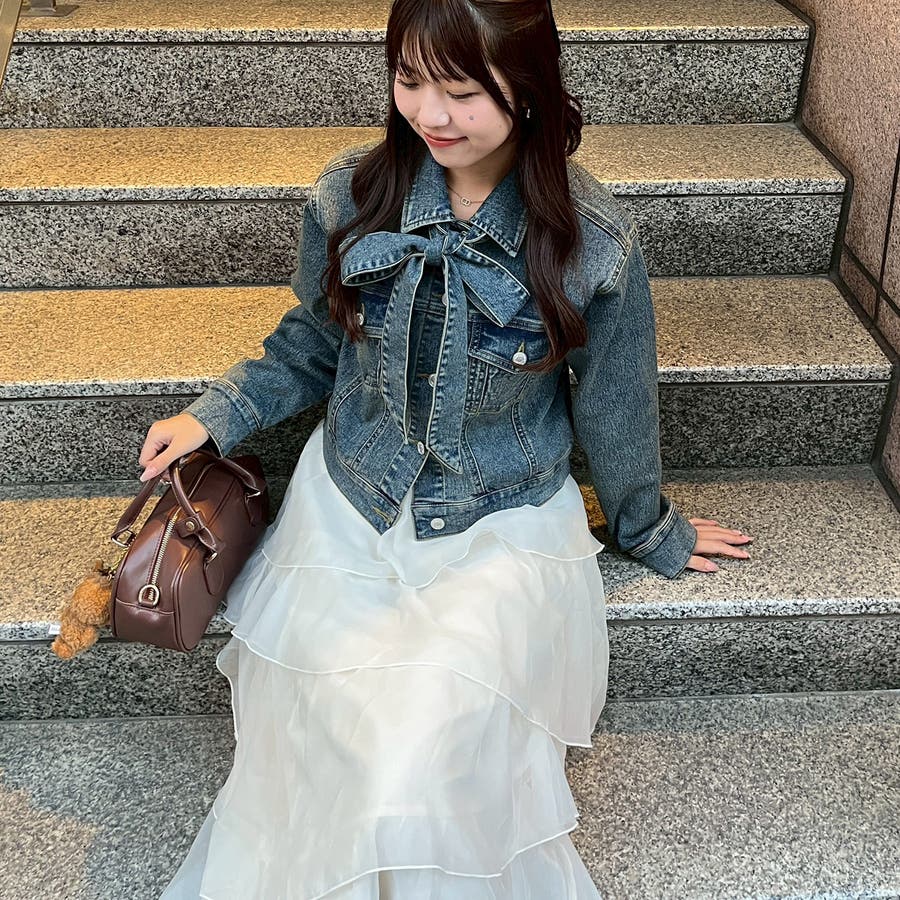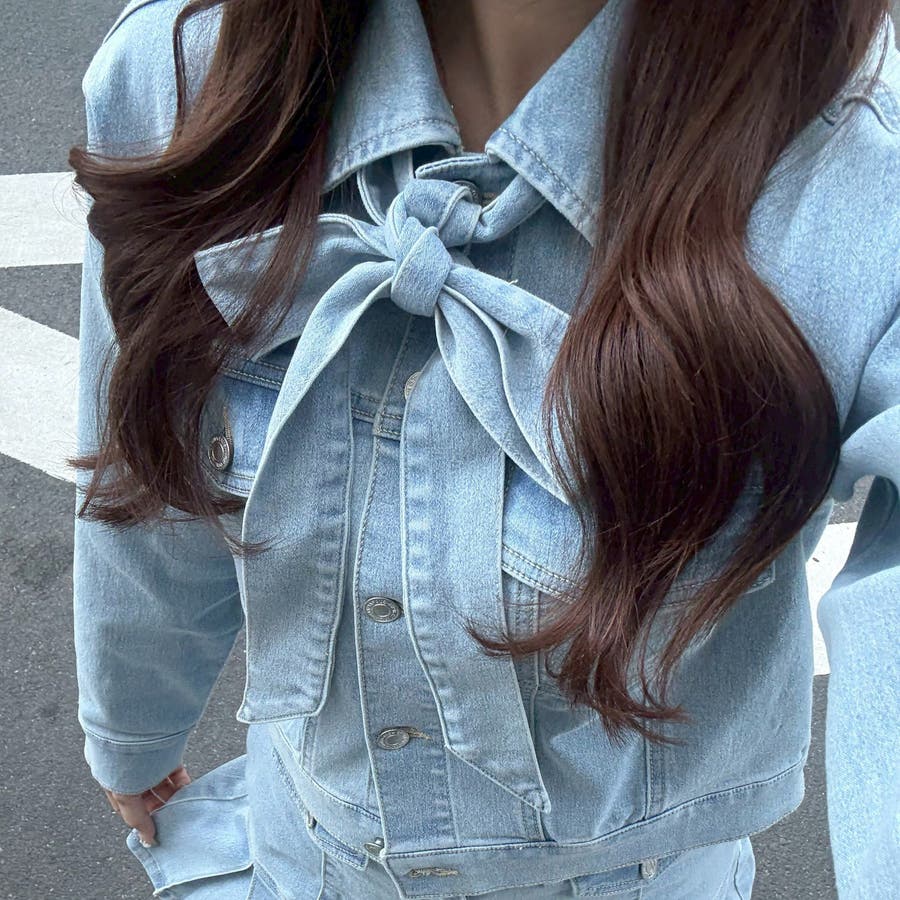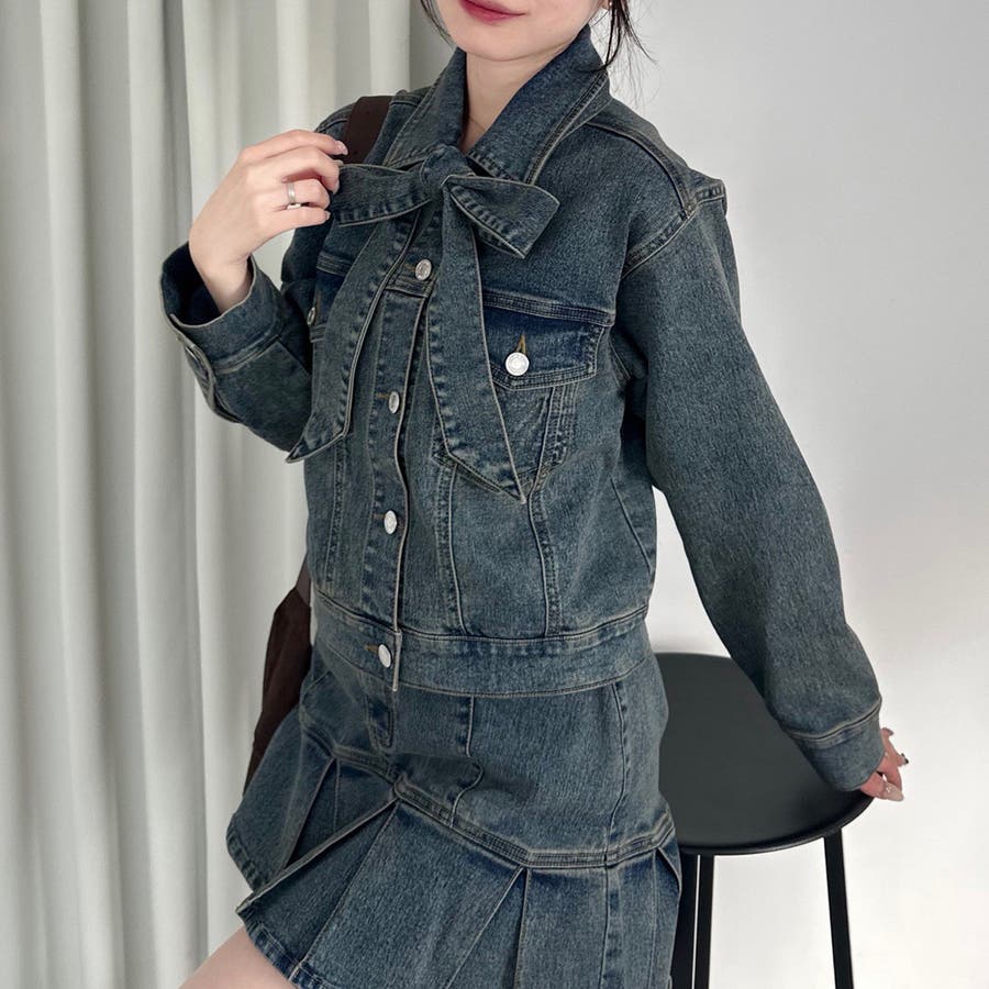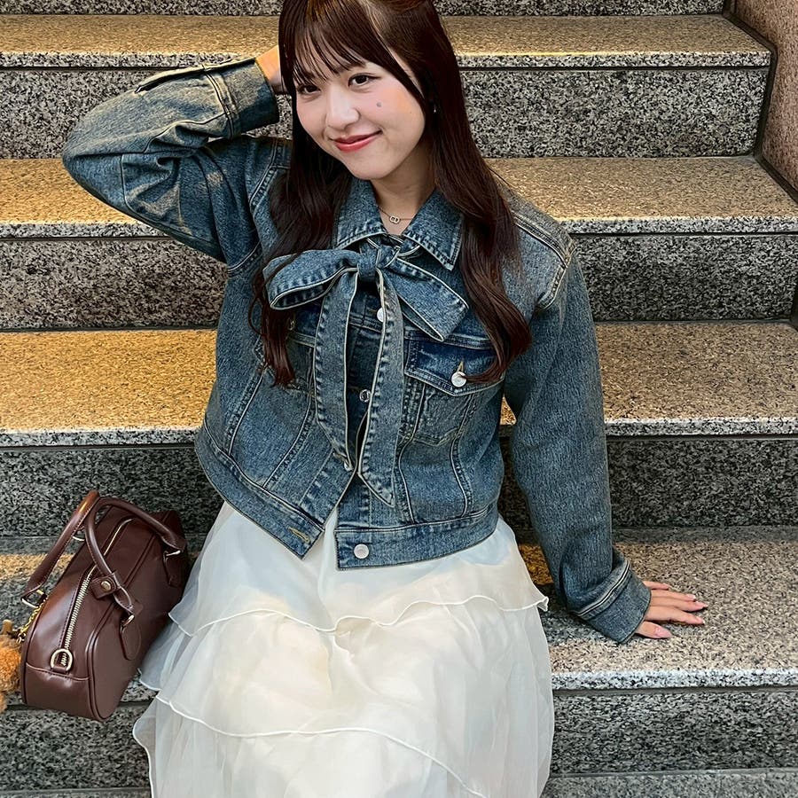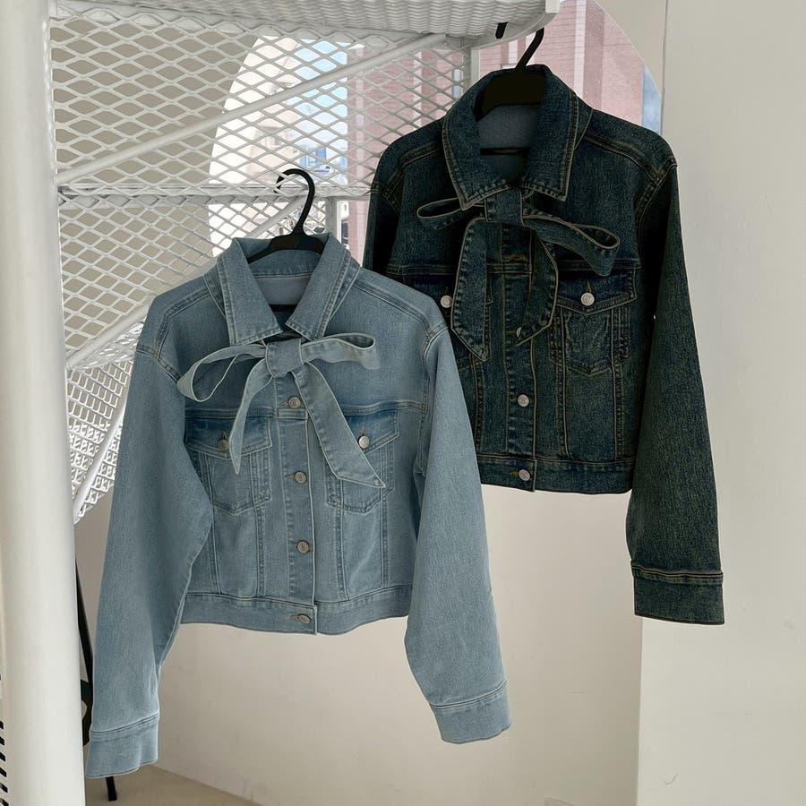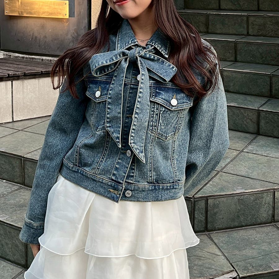 RMAF Remindmeandforever olivedesolive niceclaup 秋 秋服 秋物 冬 冬服 冬物 春 春服 春物 韓国 韓国系 韓国風 韓国ファッション 10代 20代 30代 大人 人気 大人かわいい 大人カジュアル トレンド 新作 プチプラ アウター 羽織り デニムジャケット ジャケット デニム Gジャン リボン ボウタイジャケット 春アウター 軽アウター 0861070020