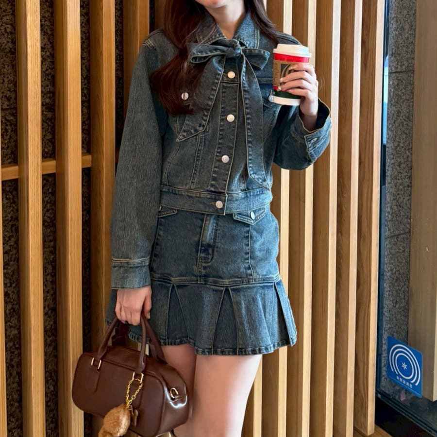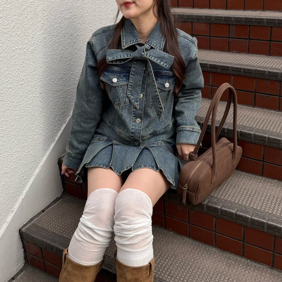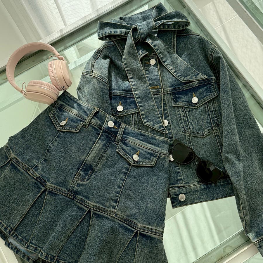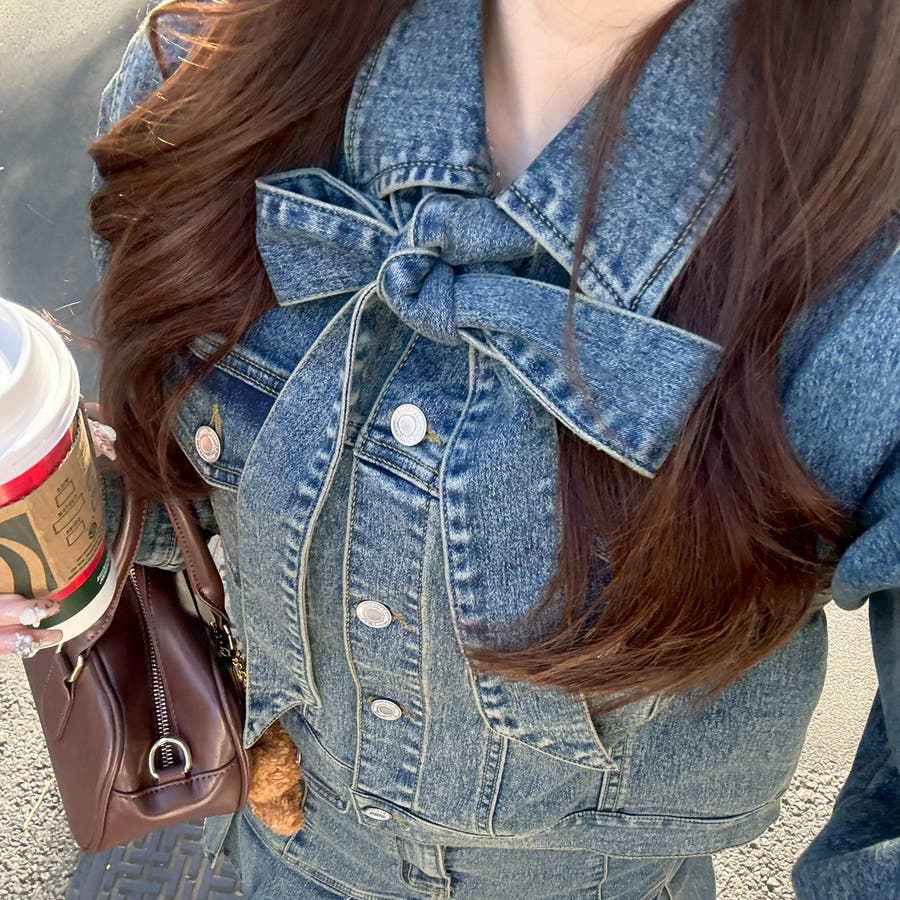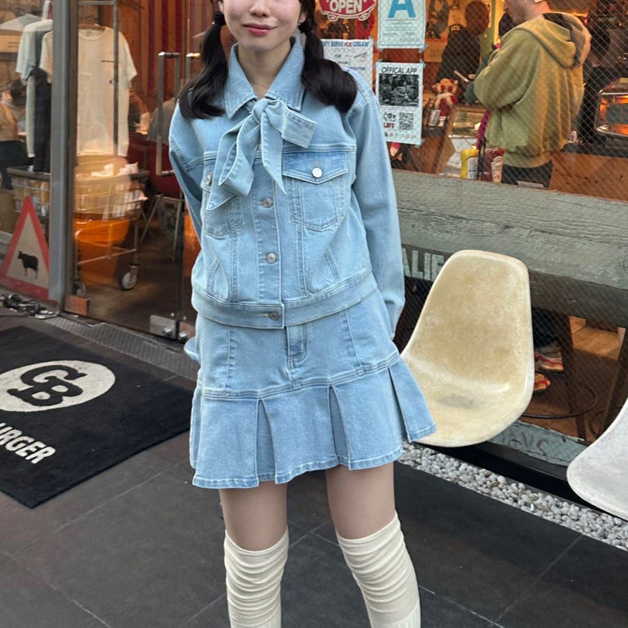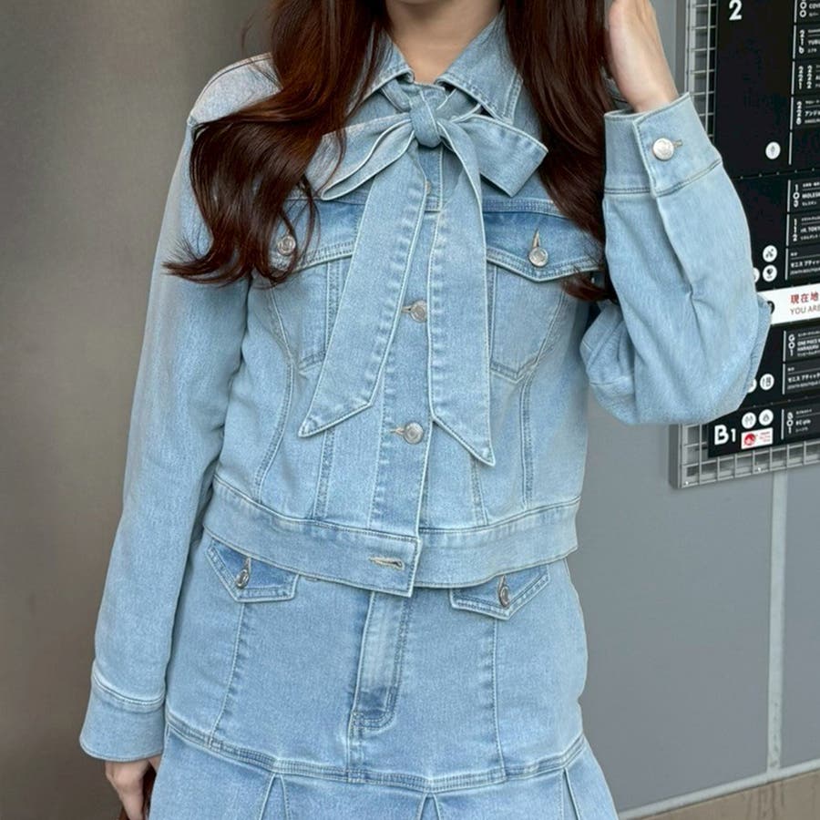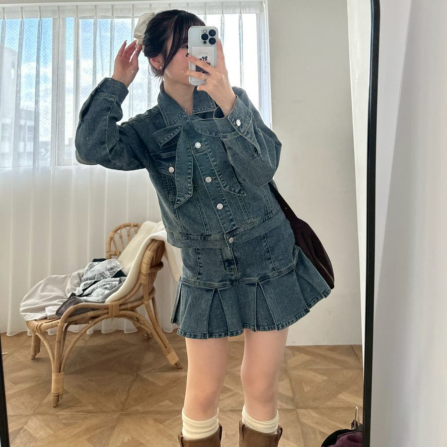 RMAF Remindmeandforever olivedesolive niceclaup 秋 秋服 秋物 冬 冬服 冬物 春 春服 春物 韓国 韓国系 韓国風 韓国ファッション 10代 20代 30代 大人 人気 大人かわいい 大人カジュアル トレンド 新作 プチプラ アウター 羽織り デニムジャケット ジャケット デニム Gジャン リボン ボウタイジャケット 春アウター 軽アウター 0861070020
