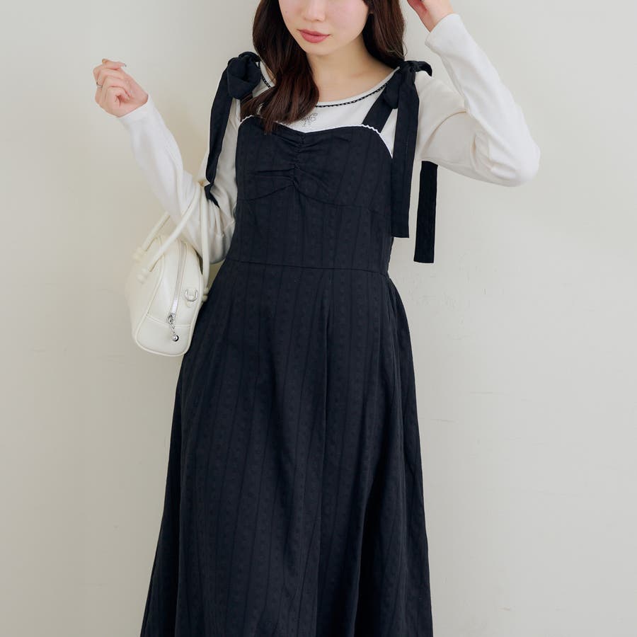 ・肩リボンデザインがフェミニンなロングワンピース